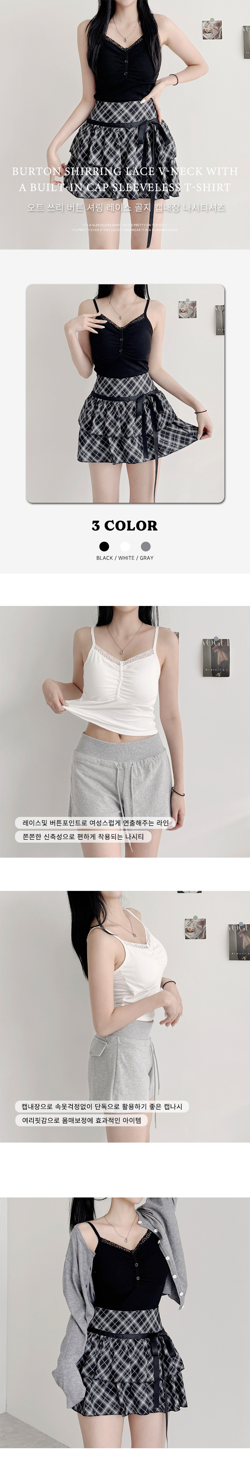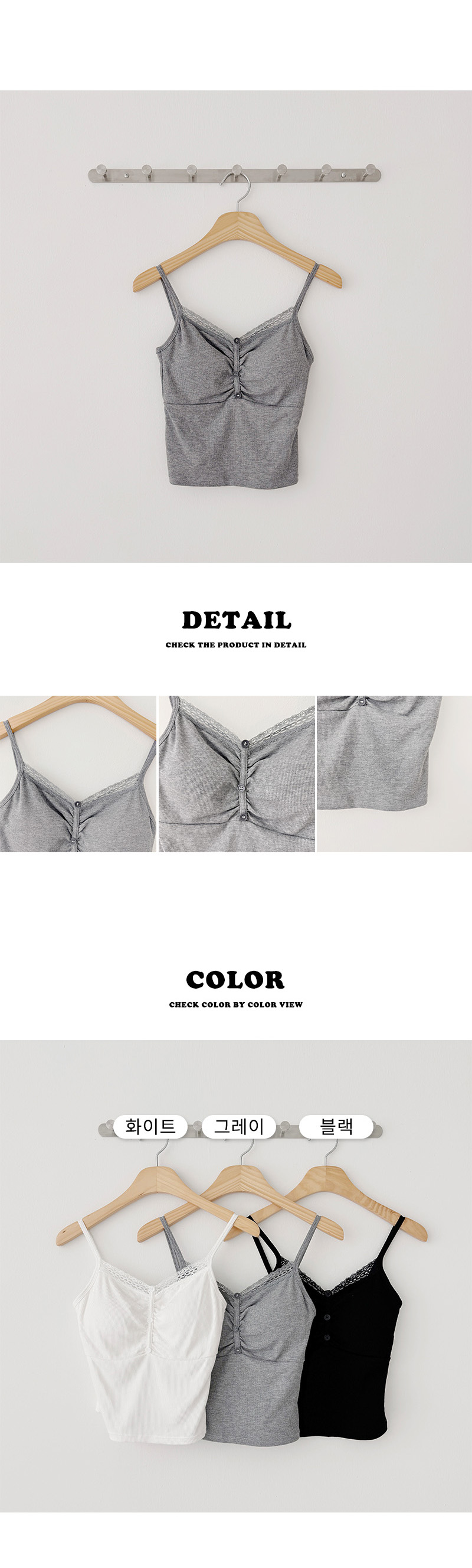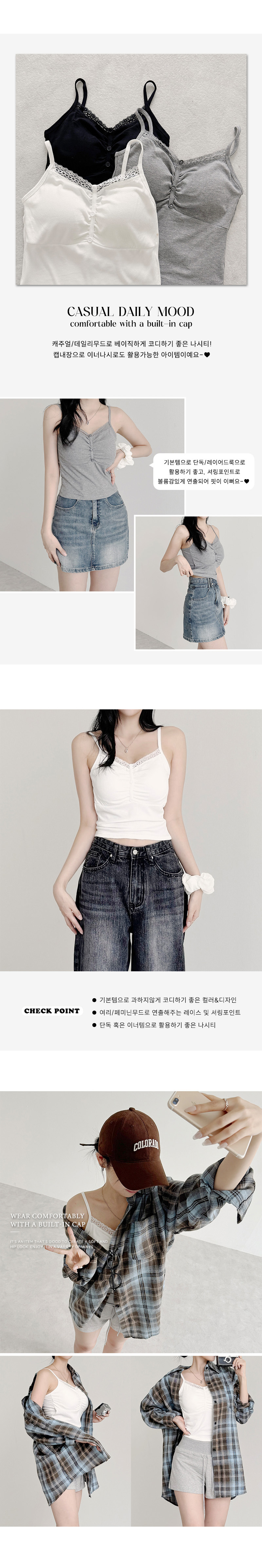 [カップ付き]ボタンレースリブノースリーブ