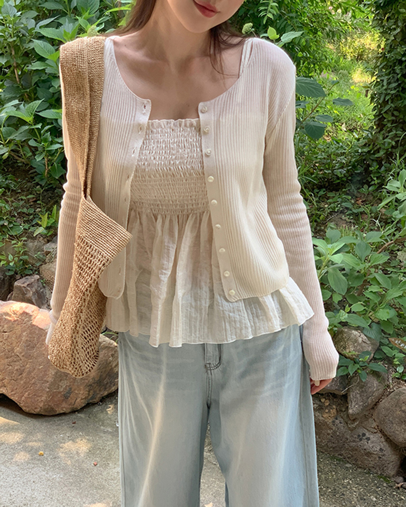 [original]リブクロップドニットカーディガン