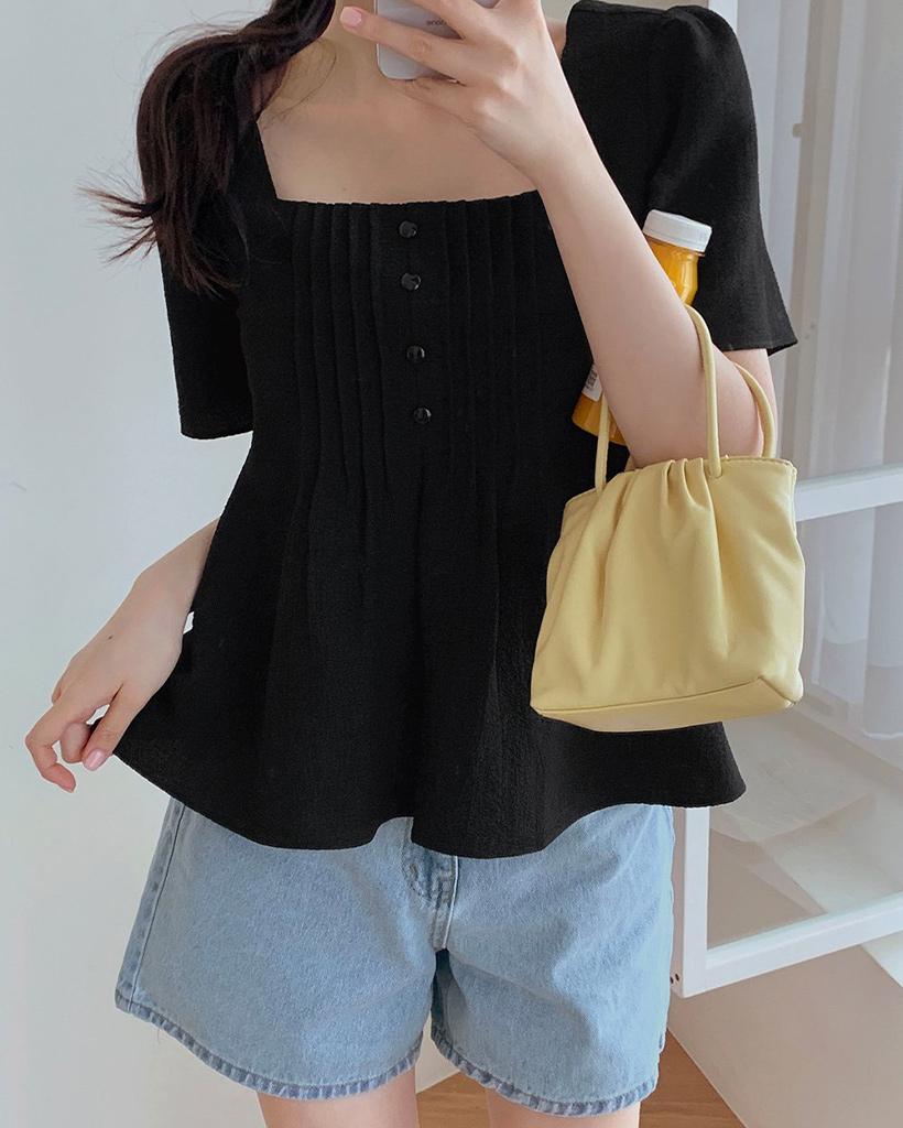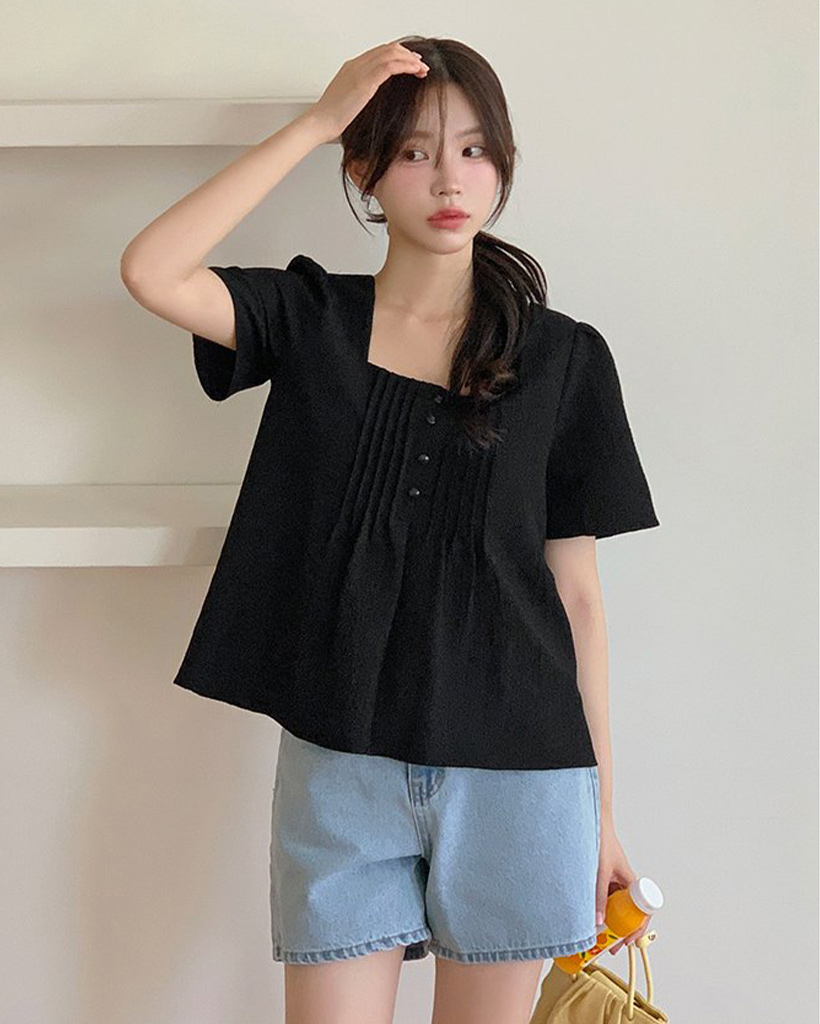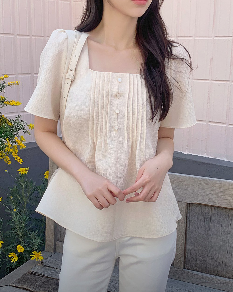히피 스퀘어넥 핀턱 링클 반팔 블라우스를 소개해드려요:)
