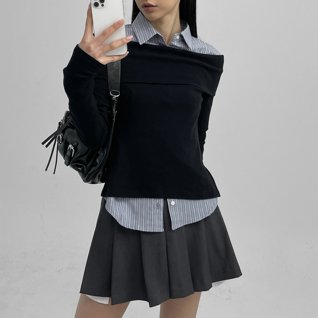 [BLACKUP] [original] モデリンオフショルダー長袖Tシャツ