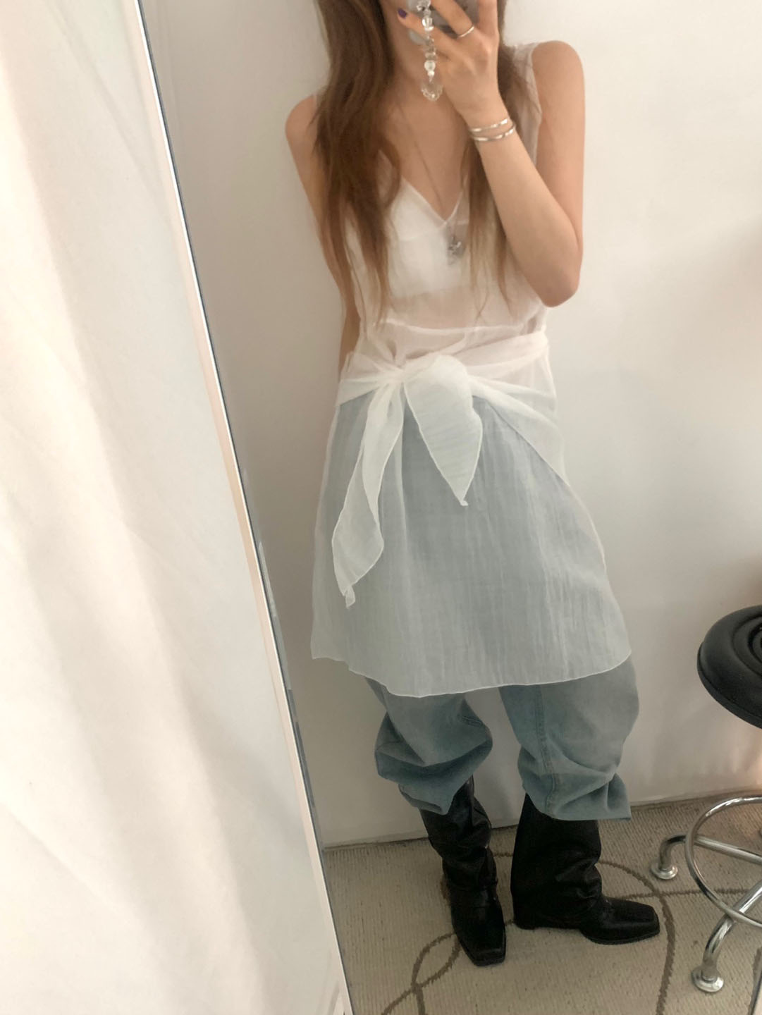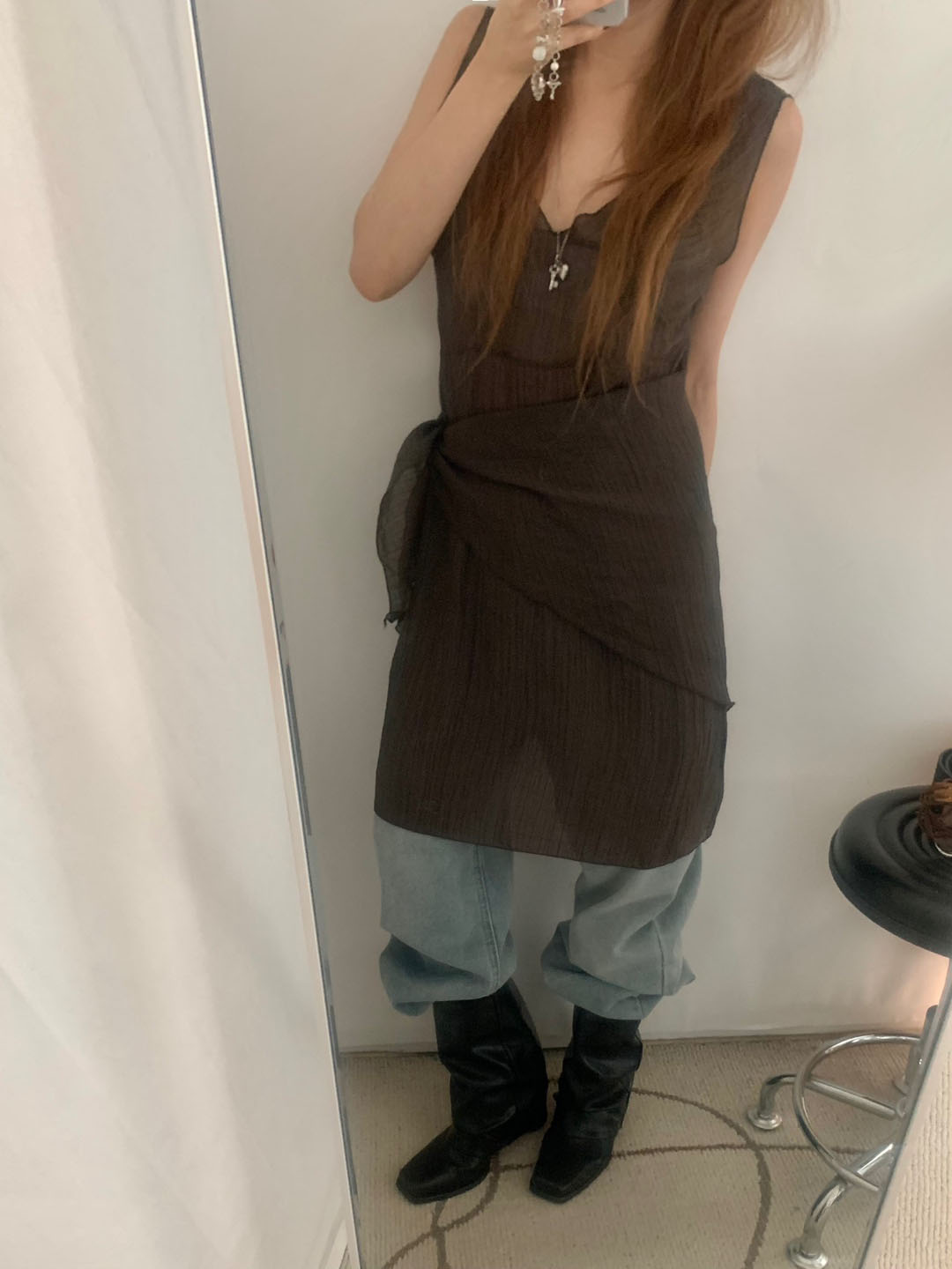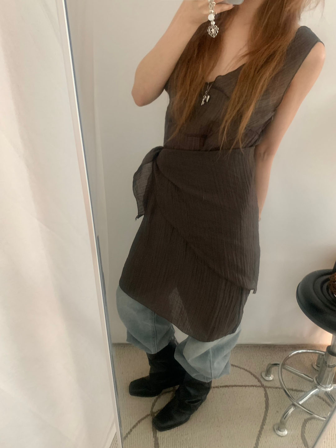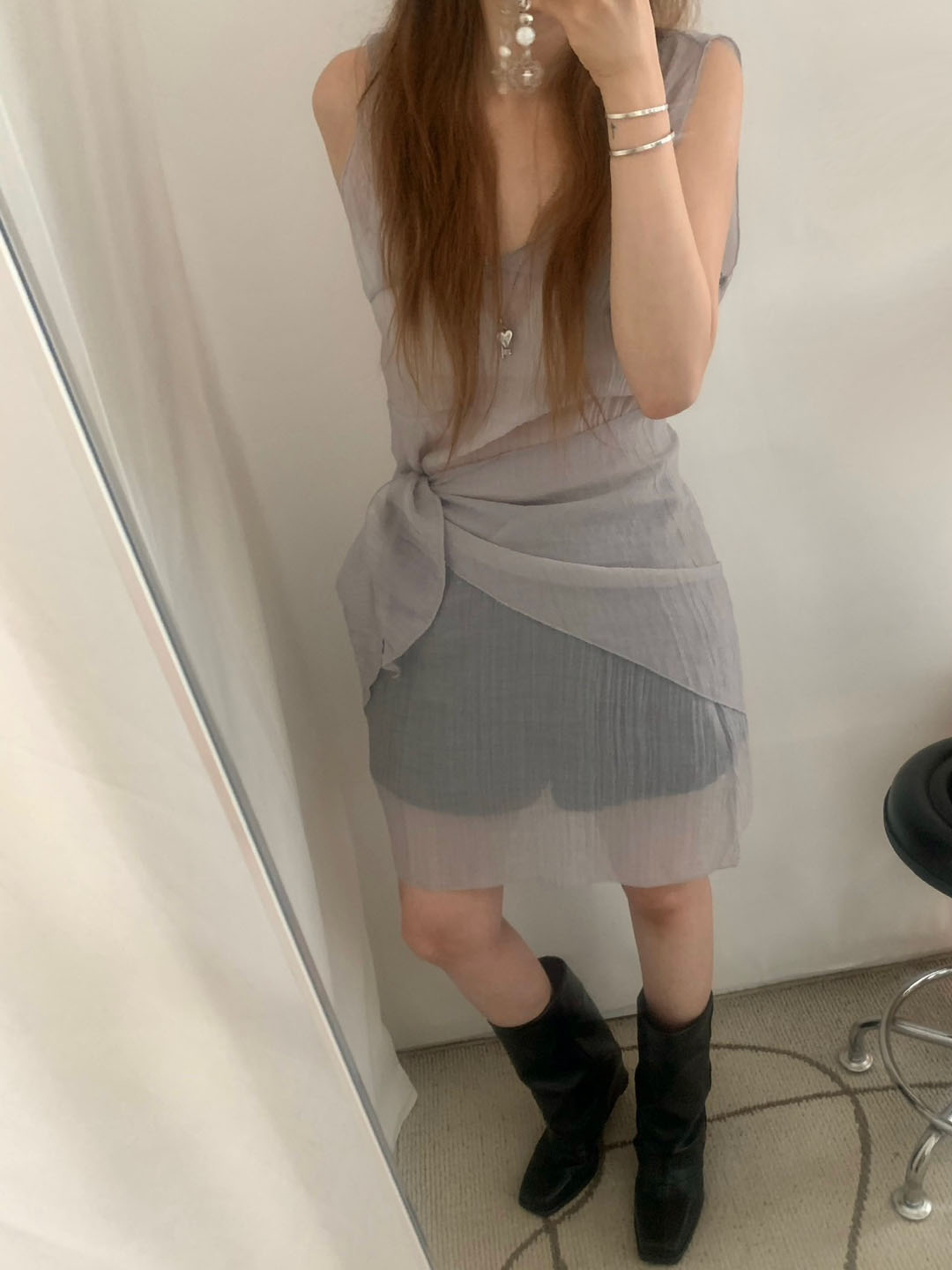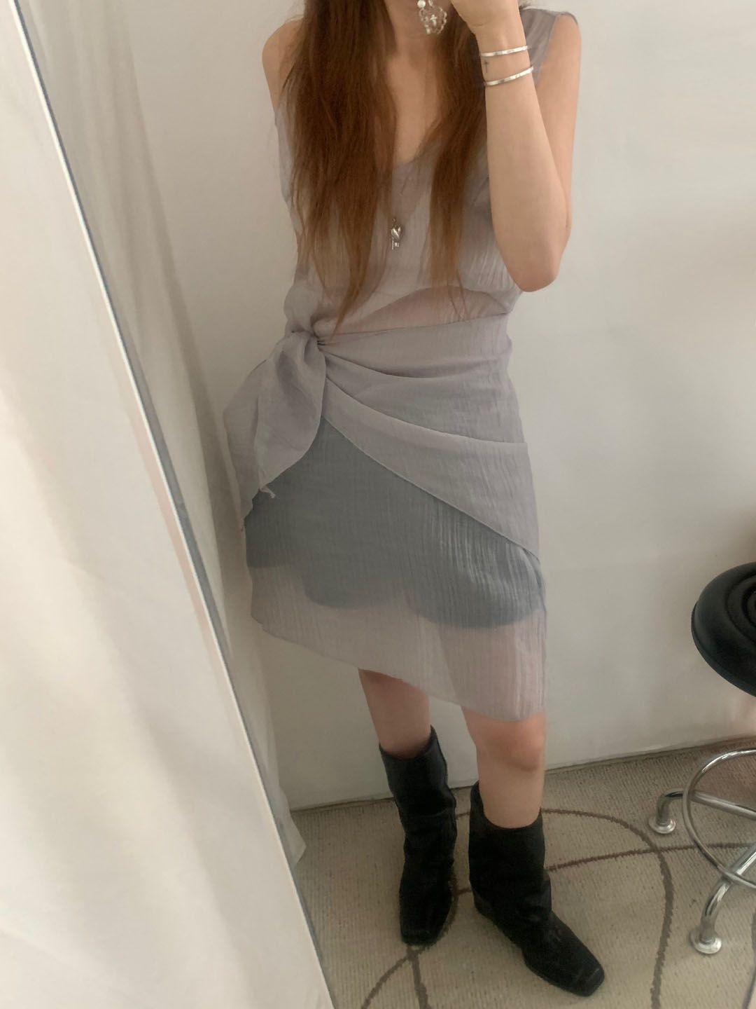[セットアップ]シースルーキャミワンピース+ラップスカート