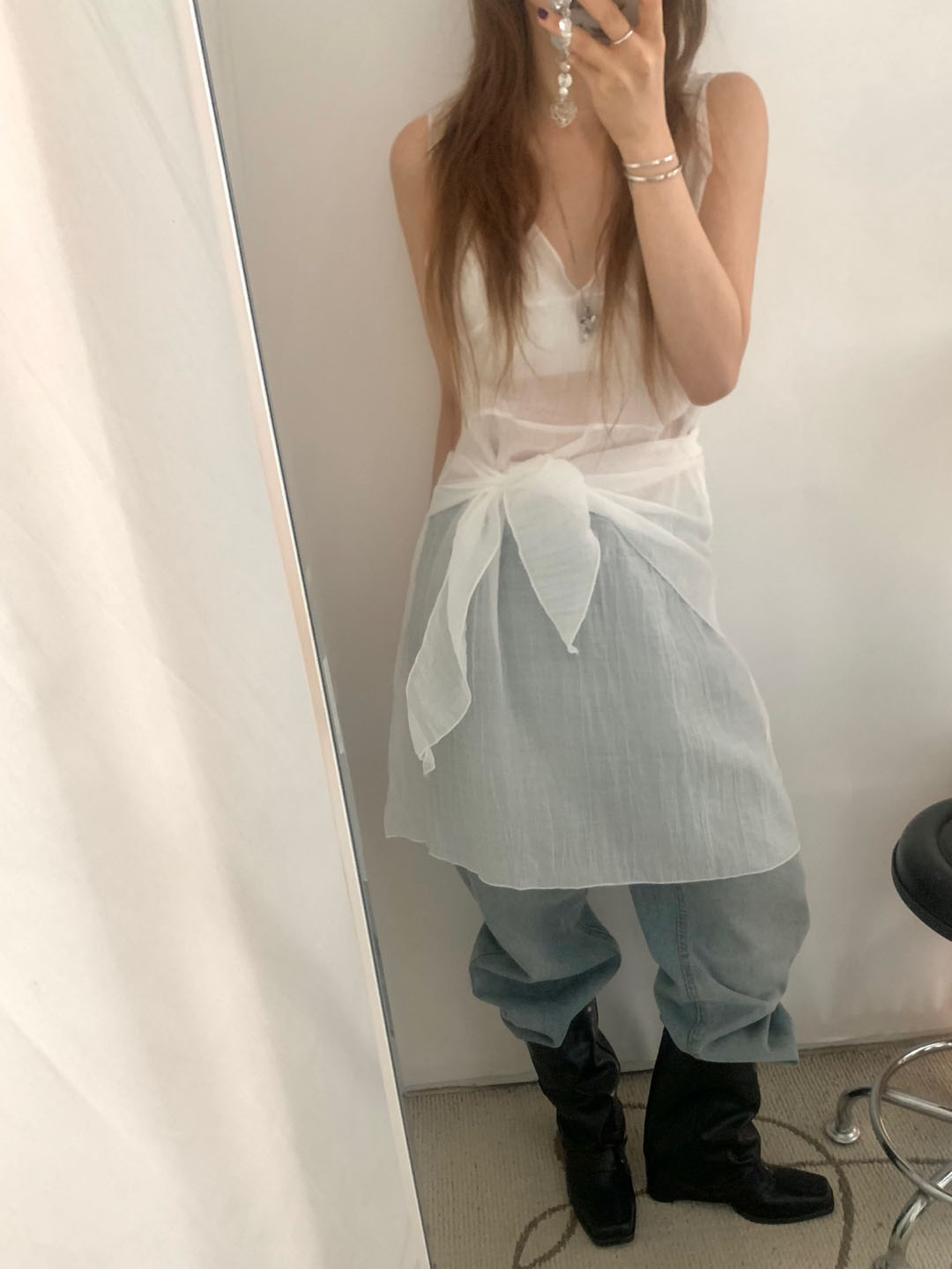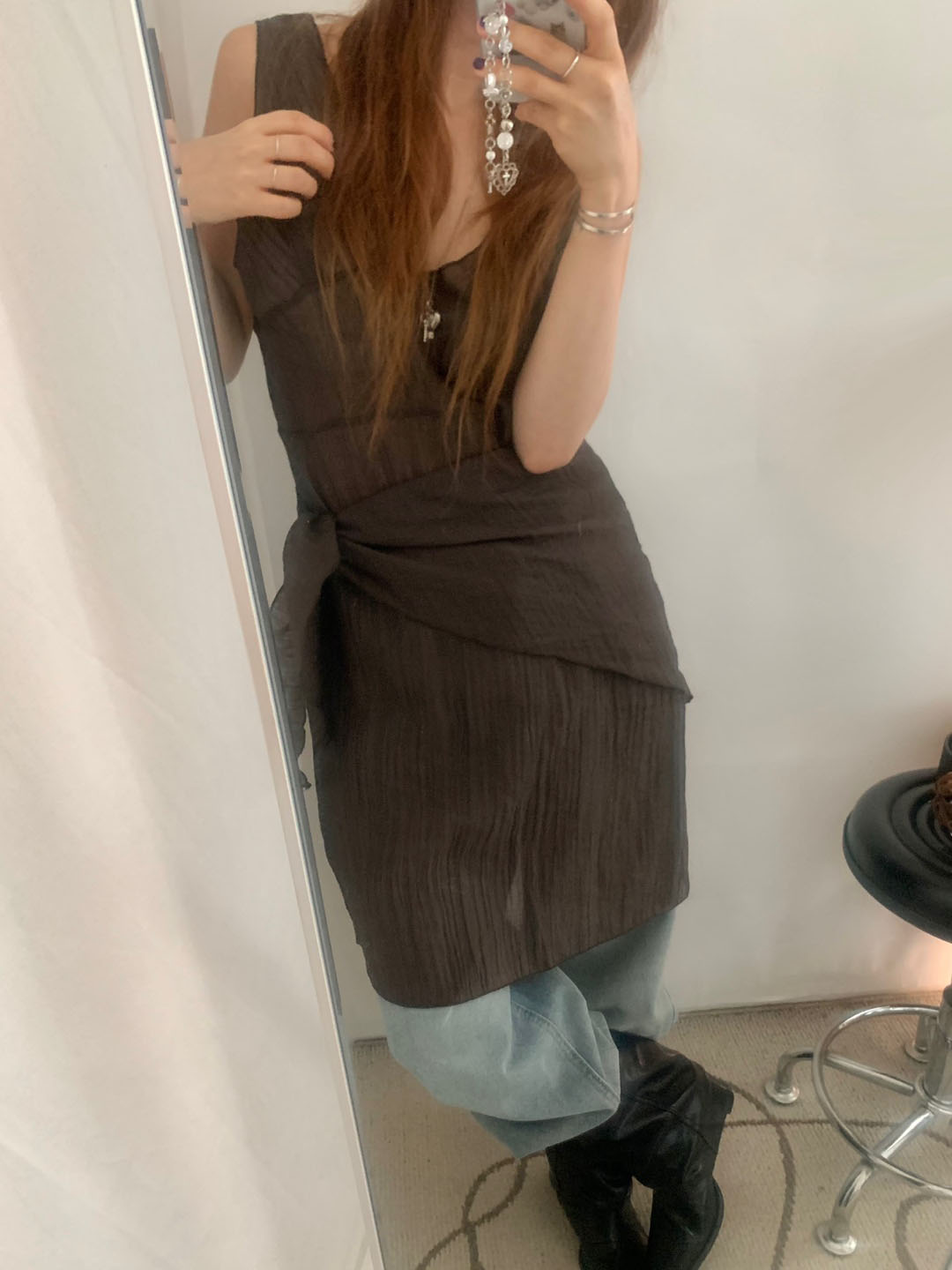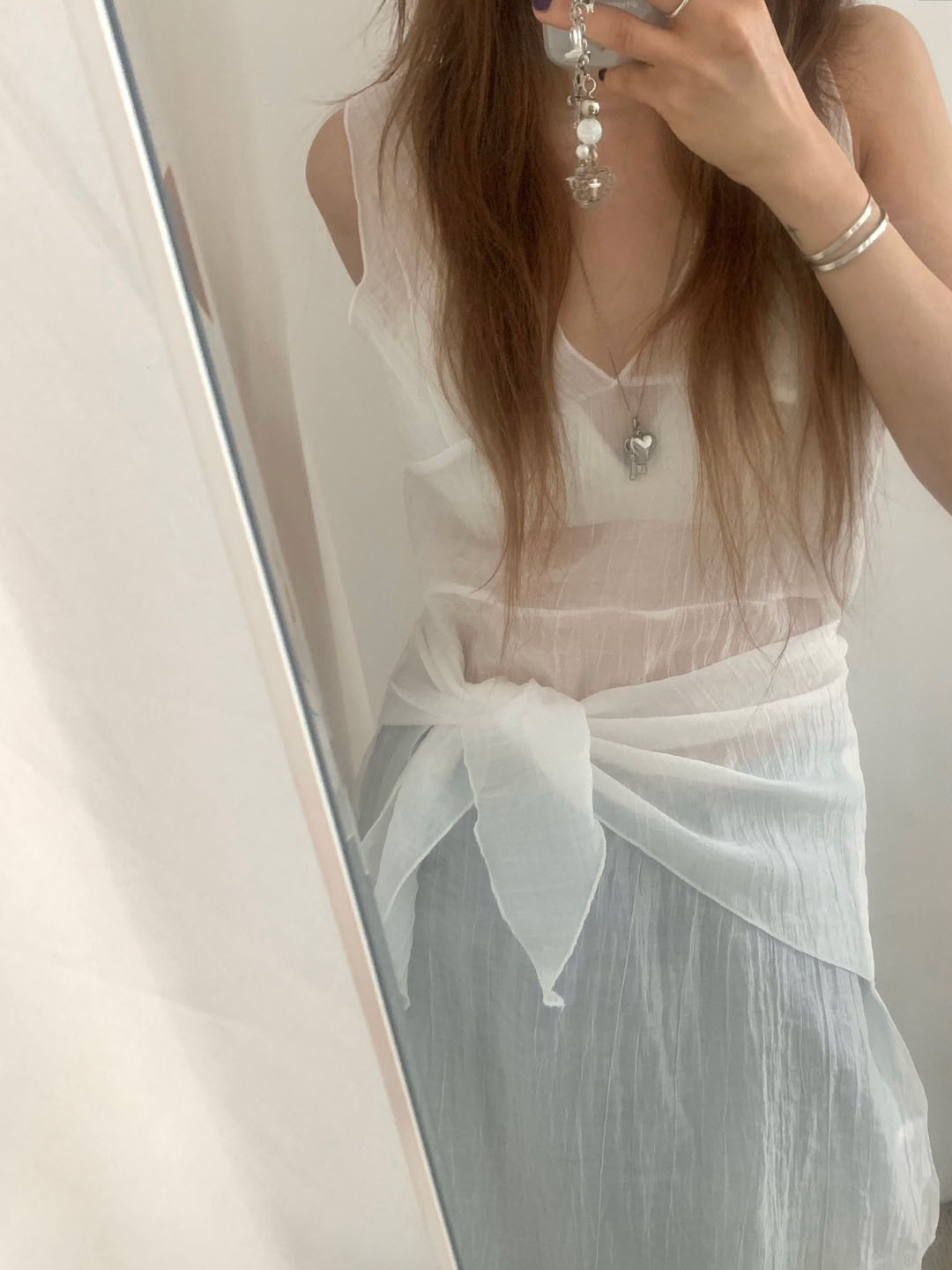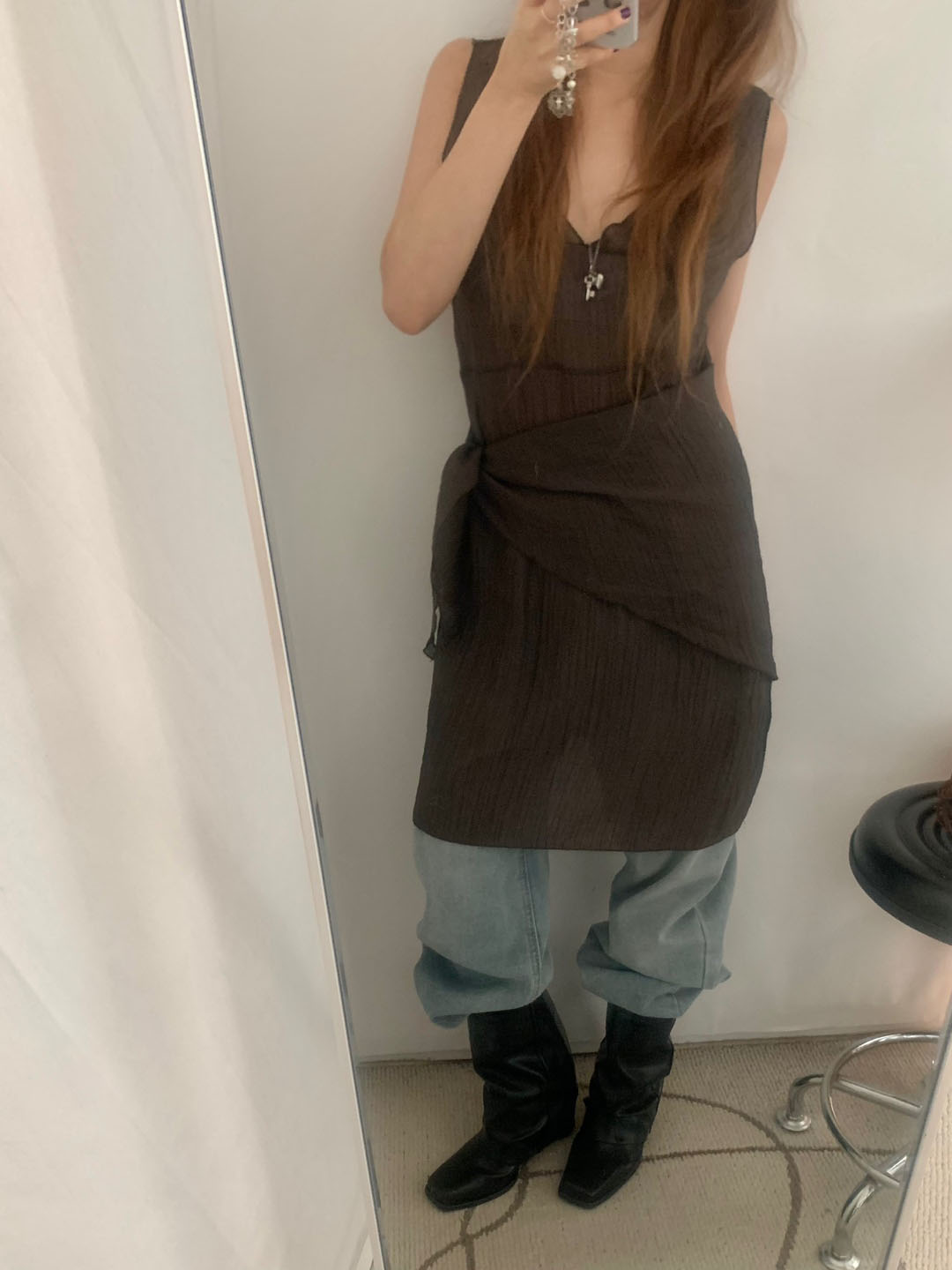 [セットアップ]シースルーキャミワンピース+ラップスカート