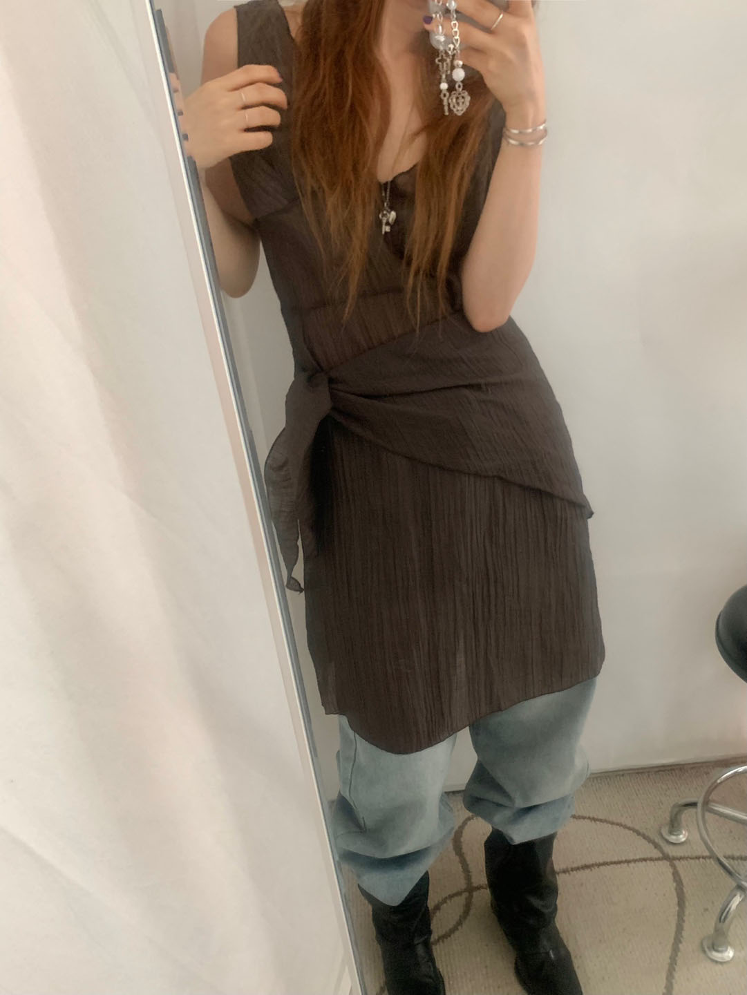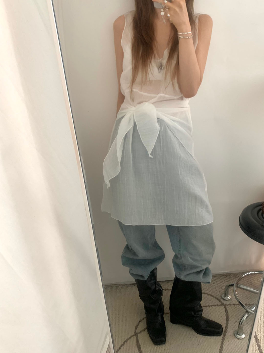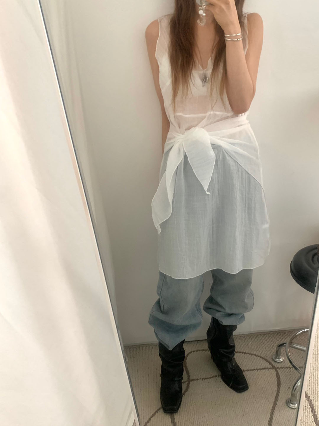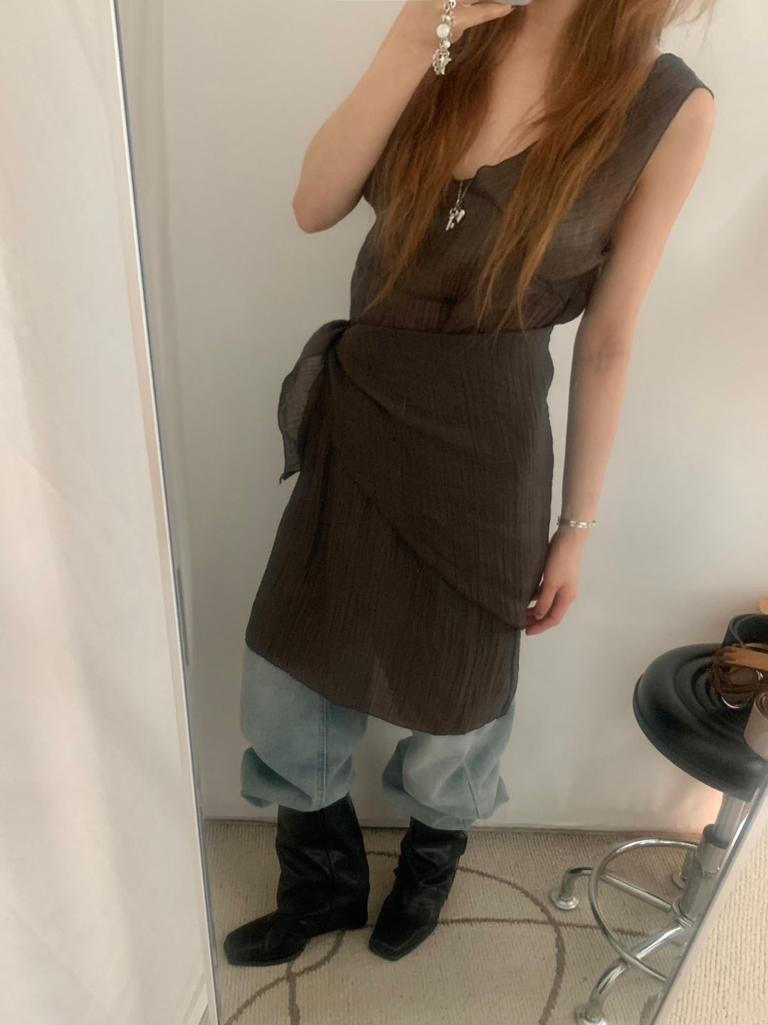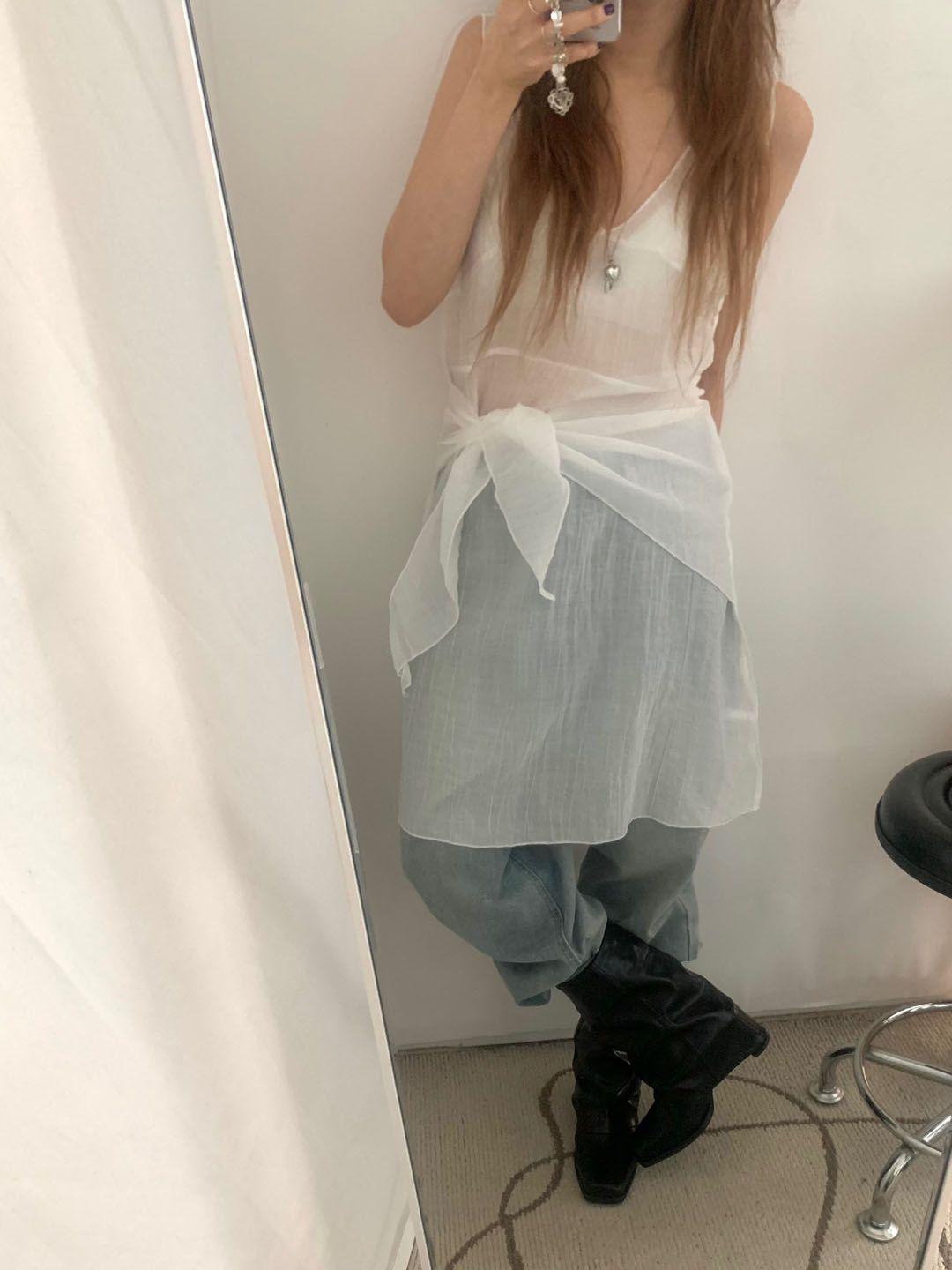 [セットアップ]シースルーキャミワンピース+ラップスカート