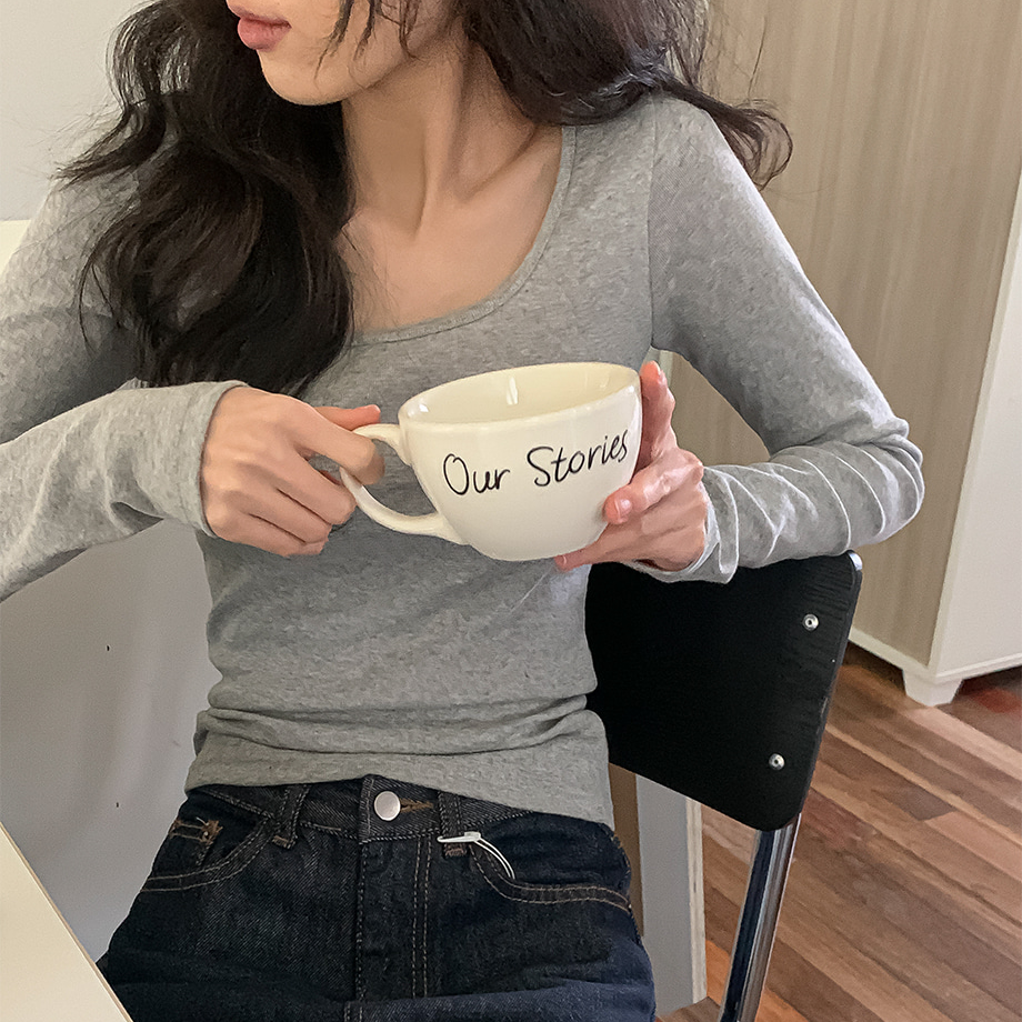 スリムスパンUネックベーシック長袖Tシャツ
