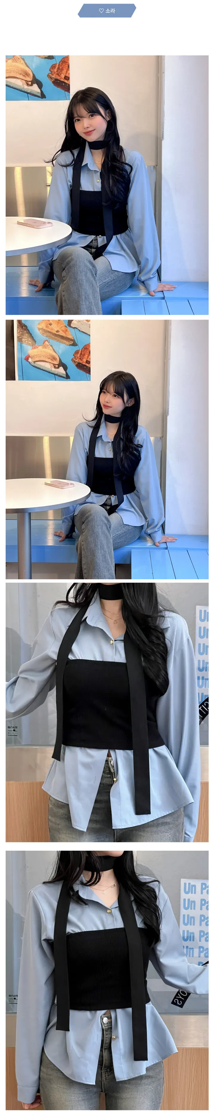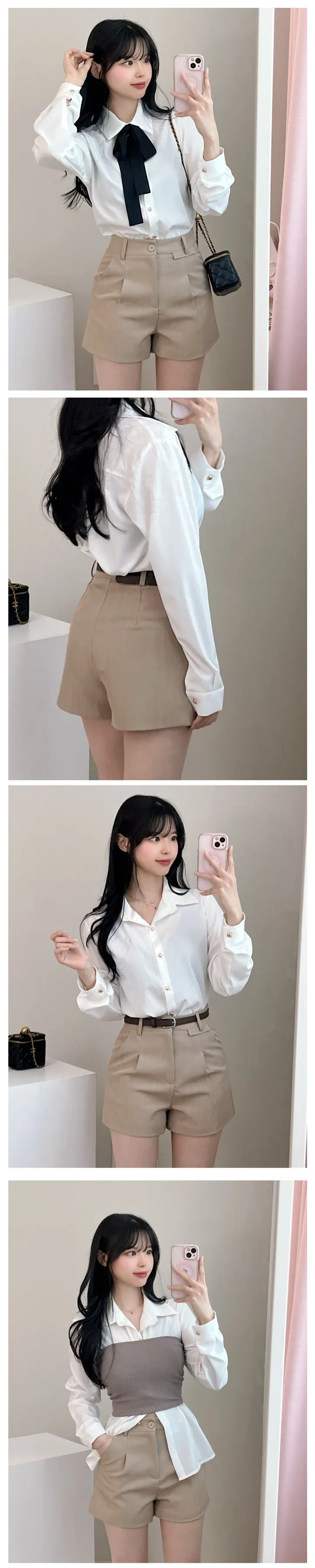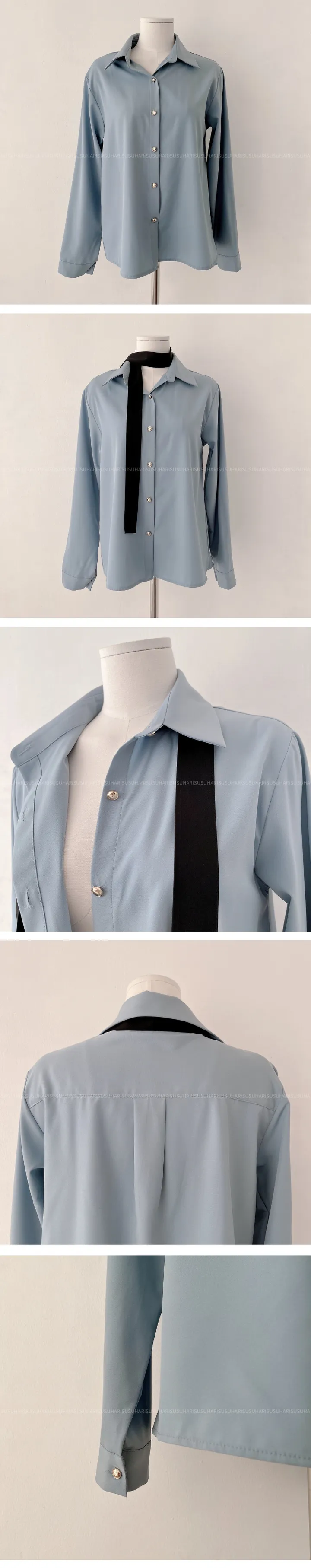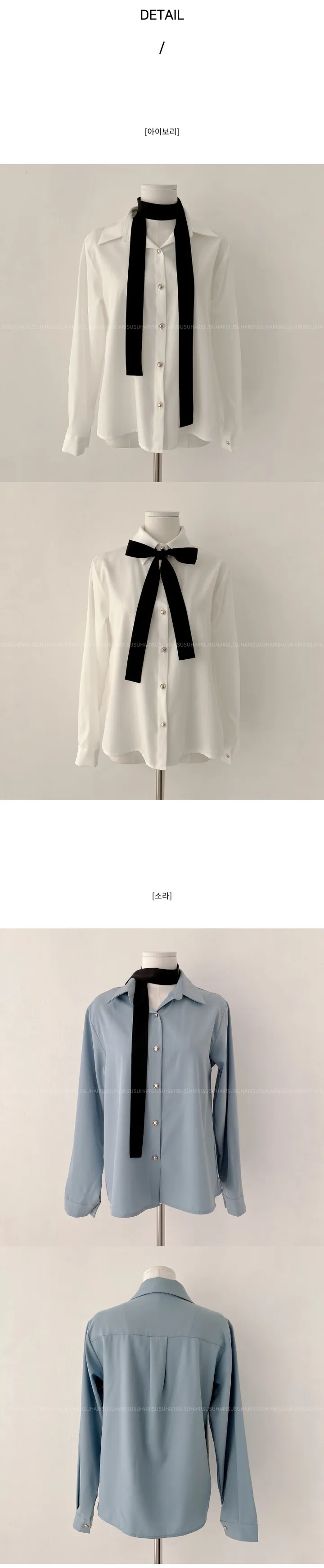 リボンタイ長袖カラーブラウスシャツ