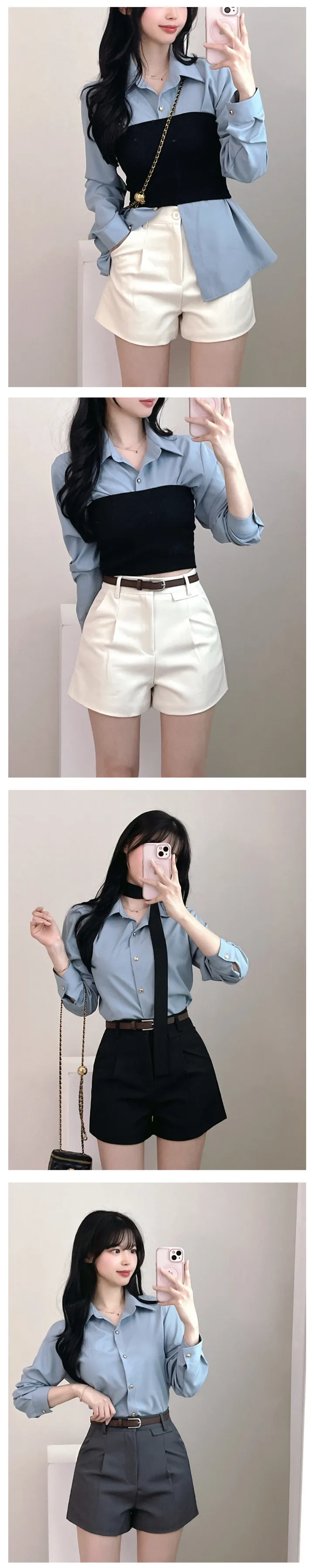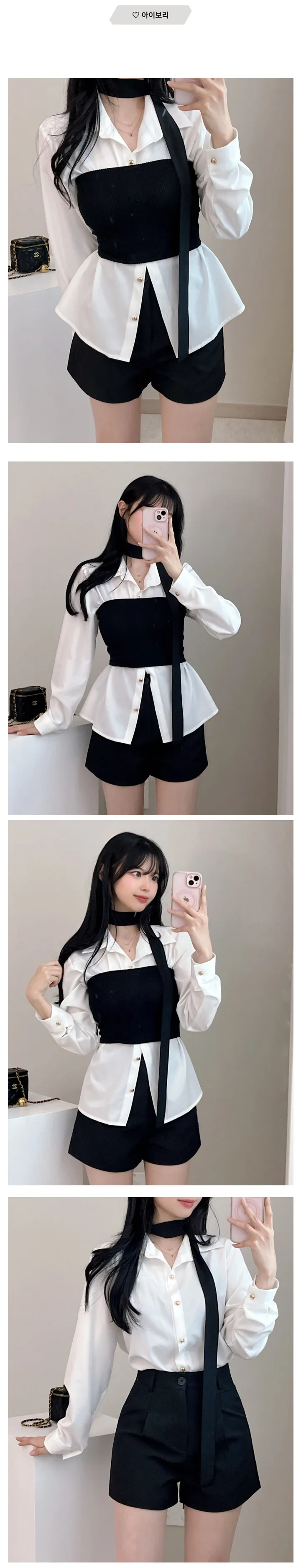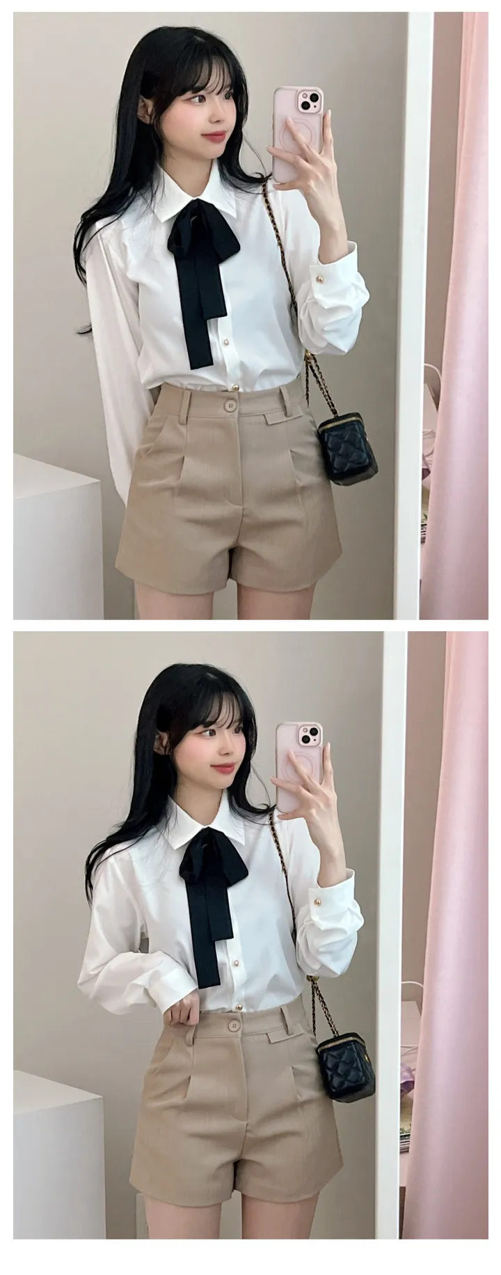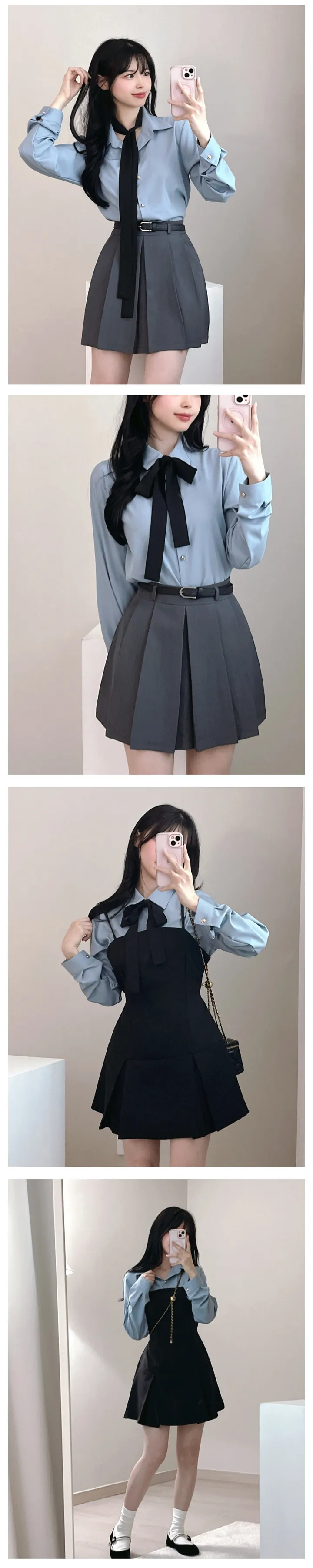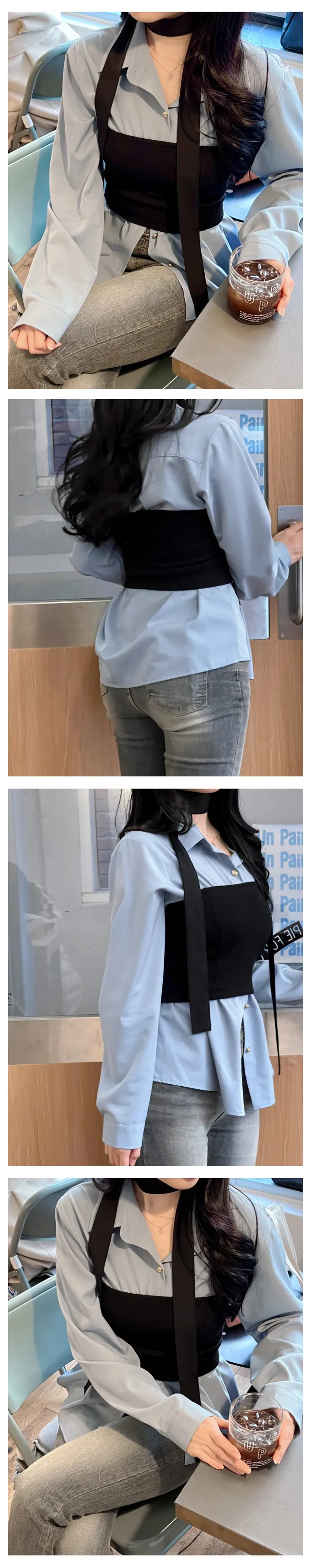 リボンタイ長袖カラーブラウスシャツ