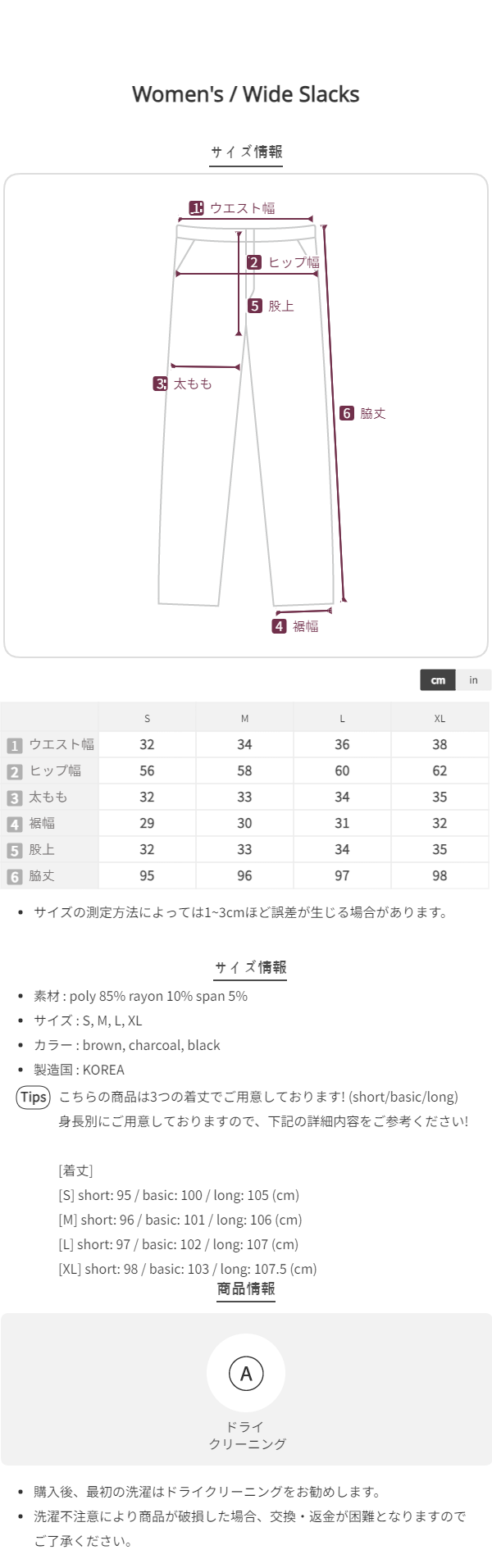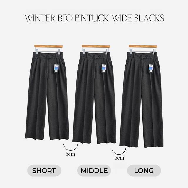 [short/mid/long}[選べる着丈] 冬用タック入りワイドスラックス