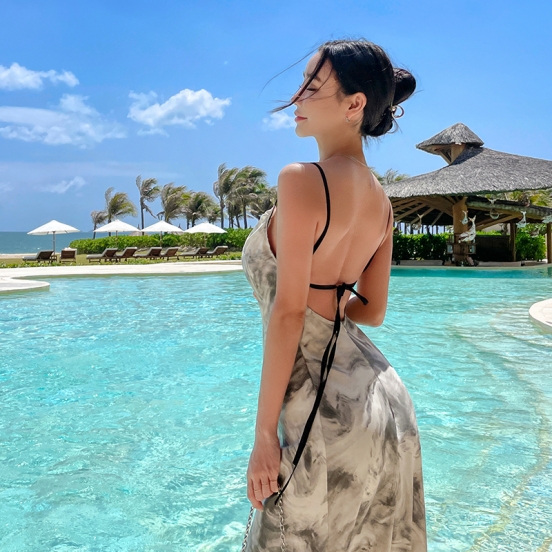 バックレスビーチワンピース