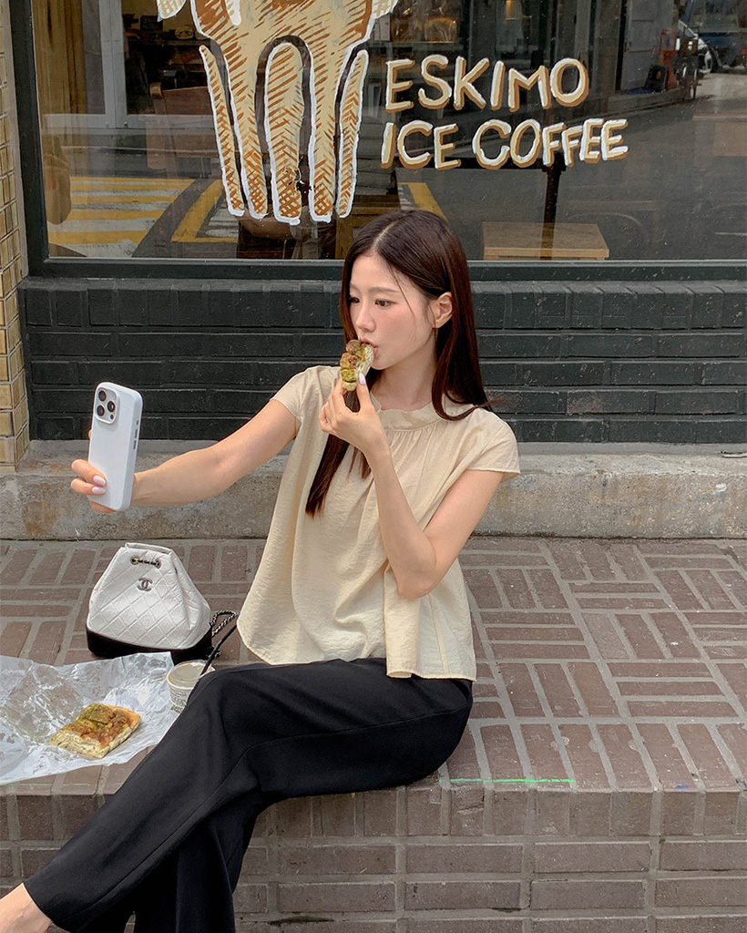 リボン フレンチスリーブ ブラウス シャツ トップス