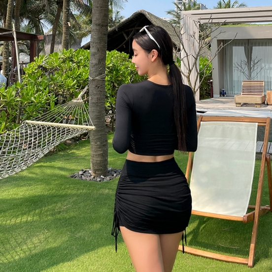 [ショーツ一体型]シャーリングスカート水着