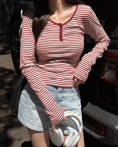 ボーダーボタンTシャツ