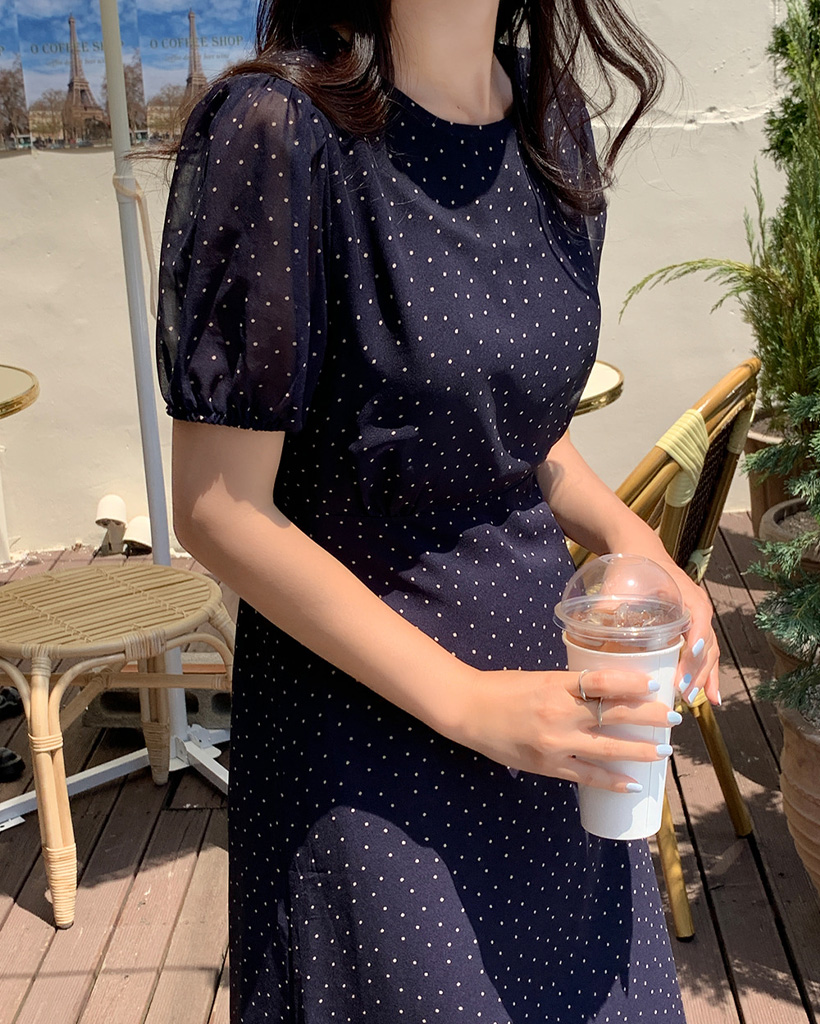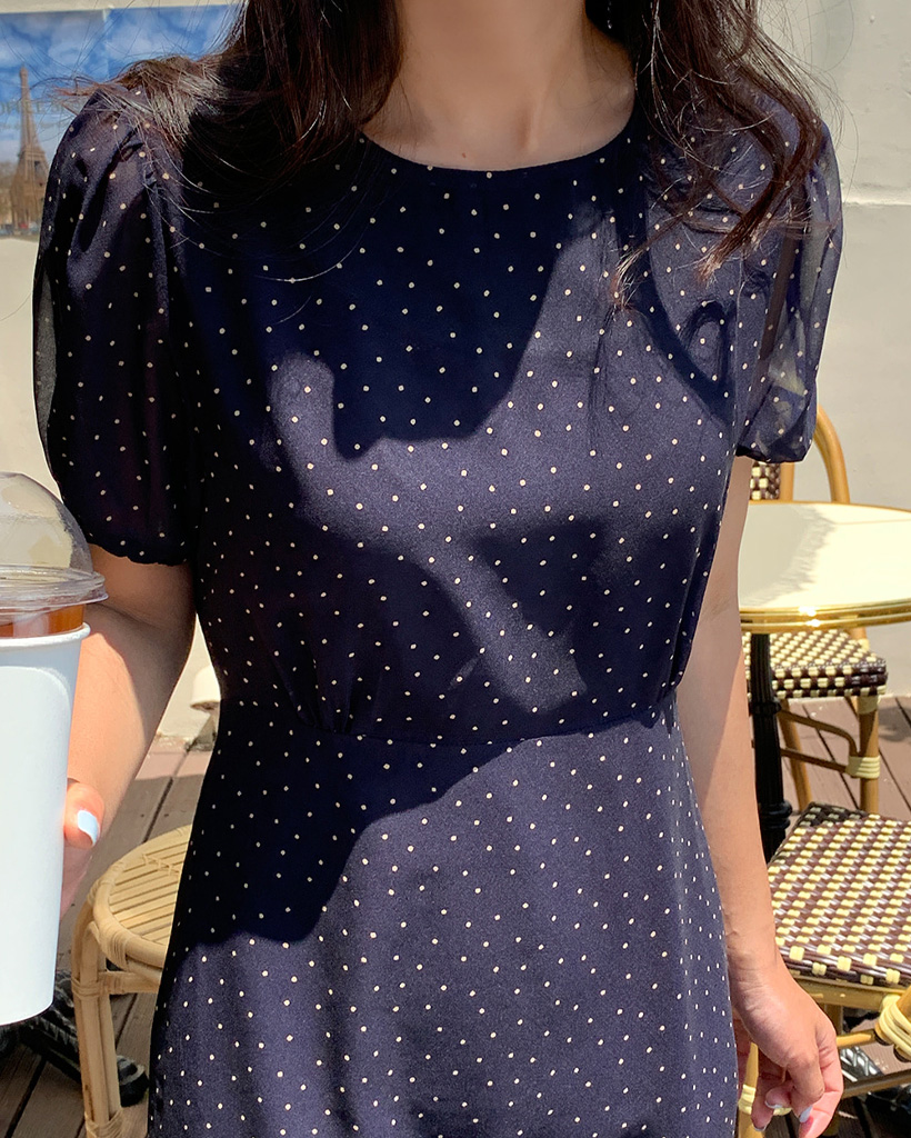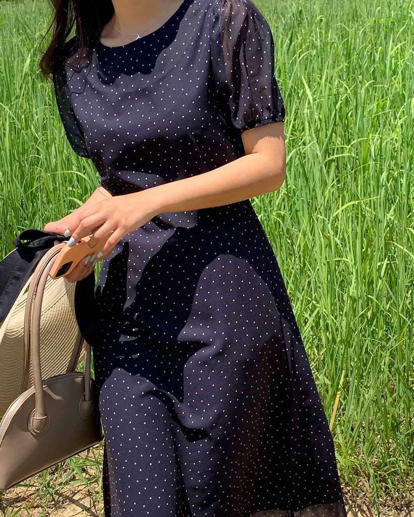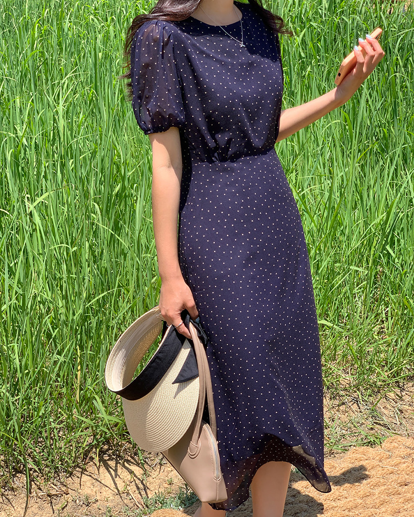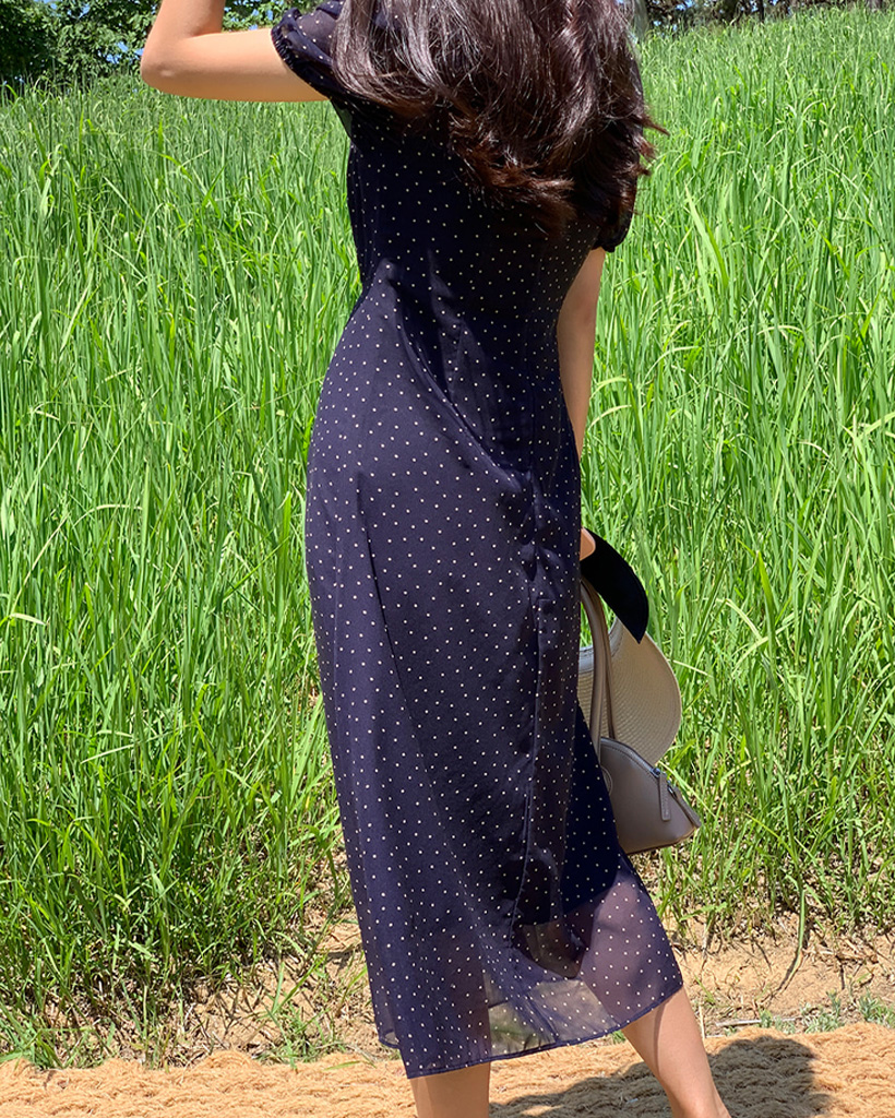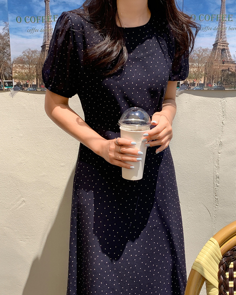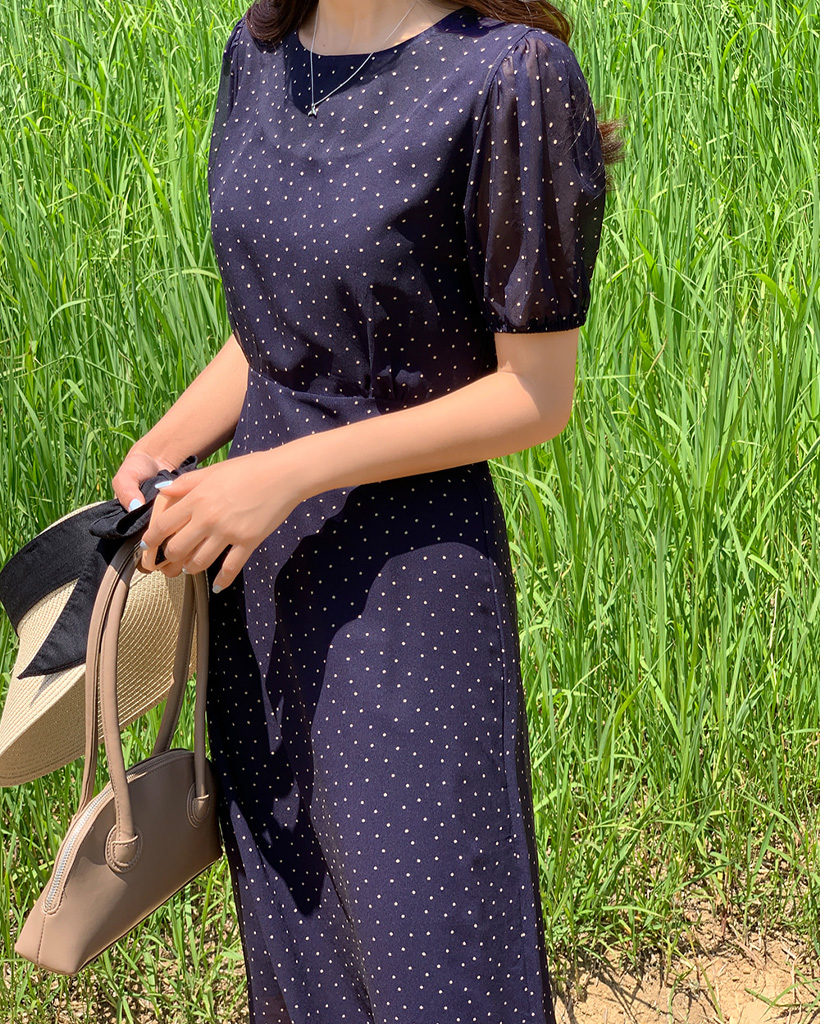 【オケージョン】[original/S-XL]ドット半袖ロングワンピース