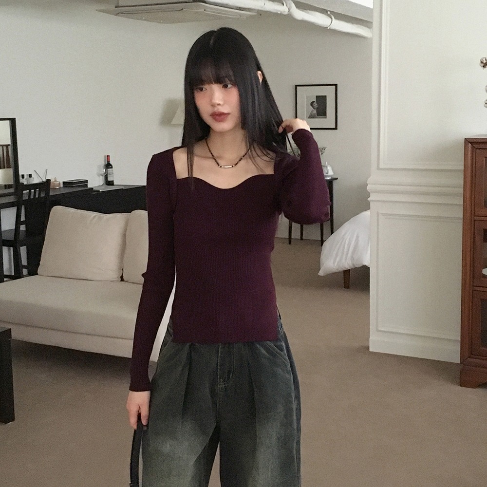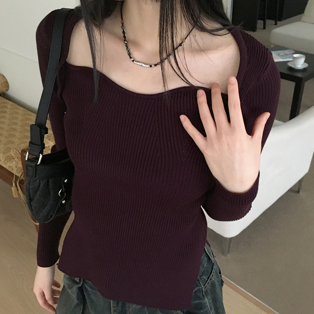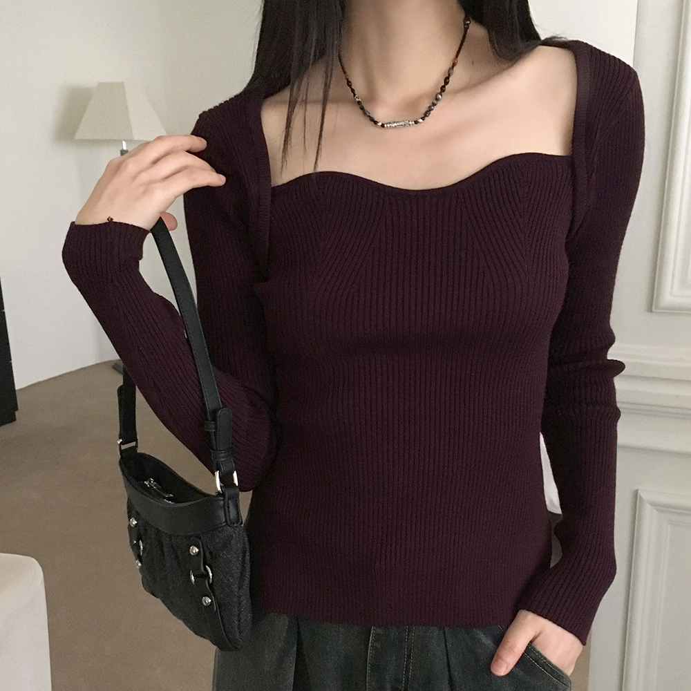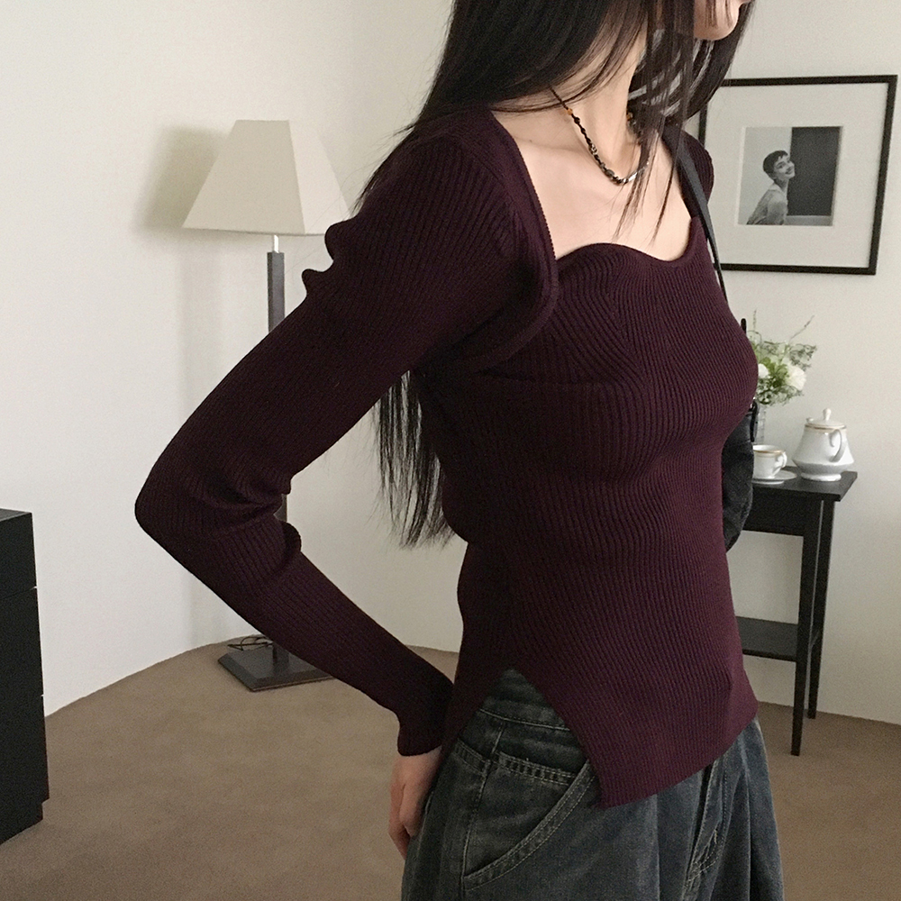ボレロスリットリブウェーブスクエアネック長袖ニット