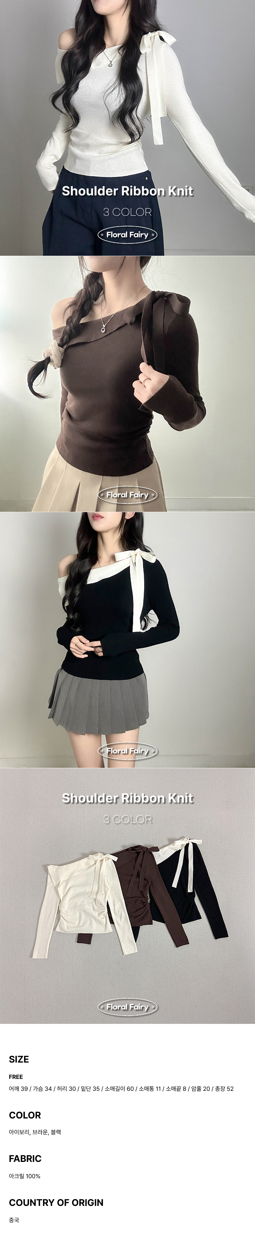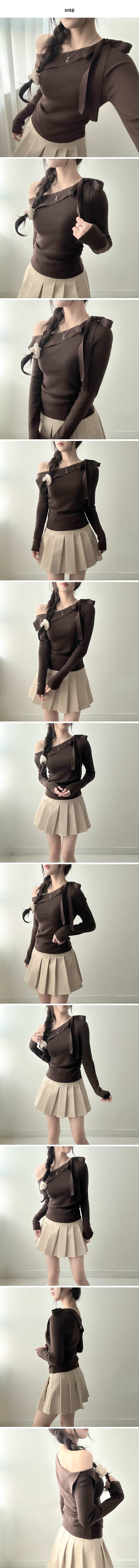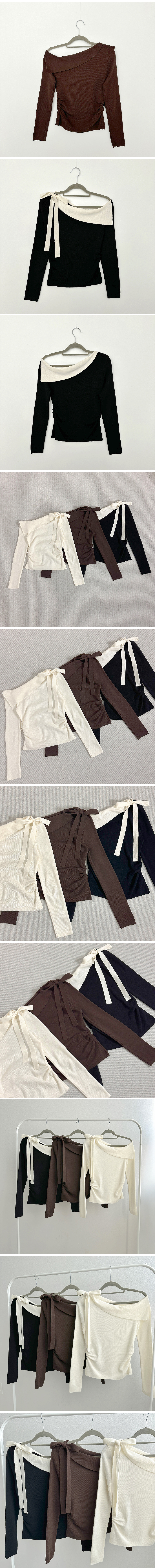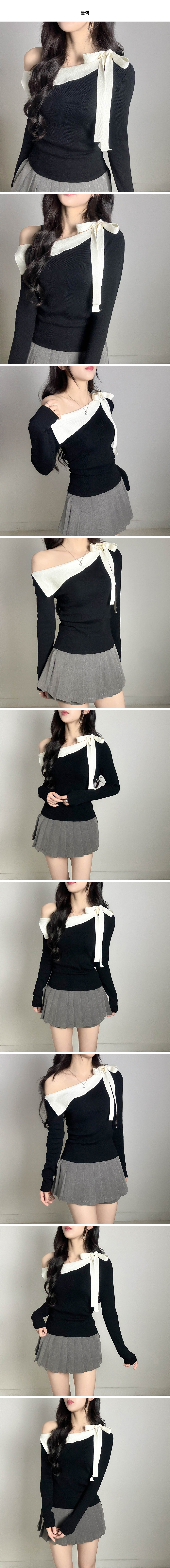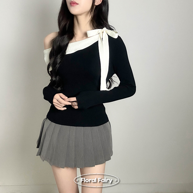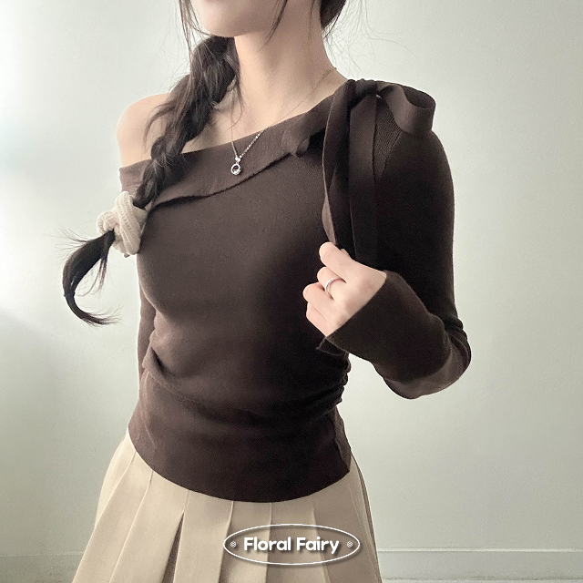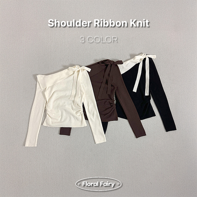 リボンオフショルニット