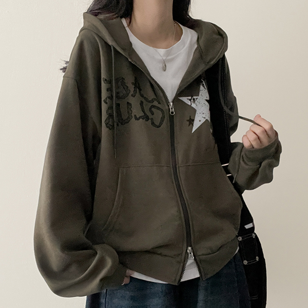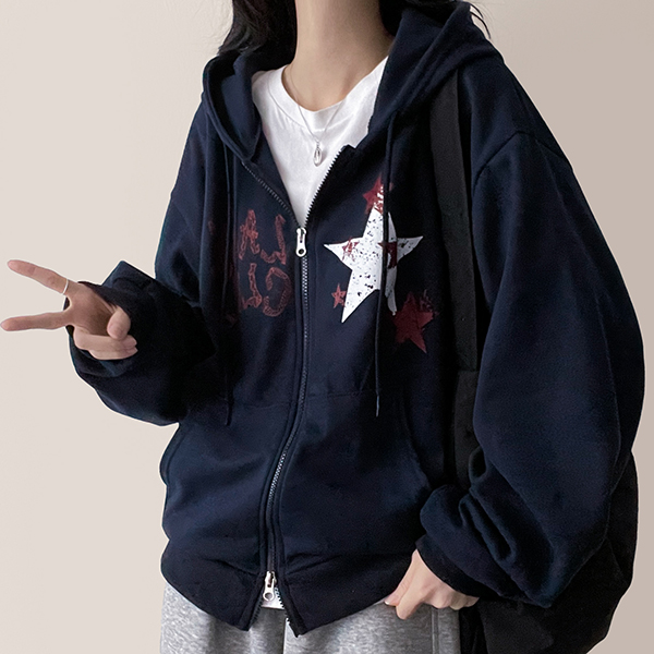 (3color)プリントオーバーサイズジップアップパーカー