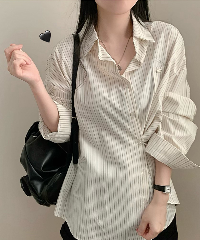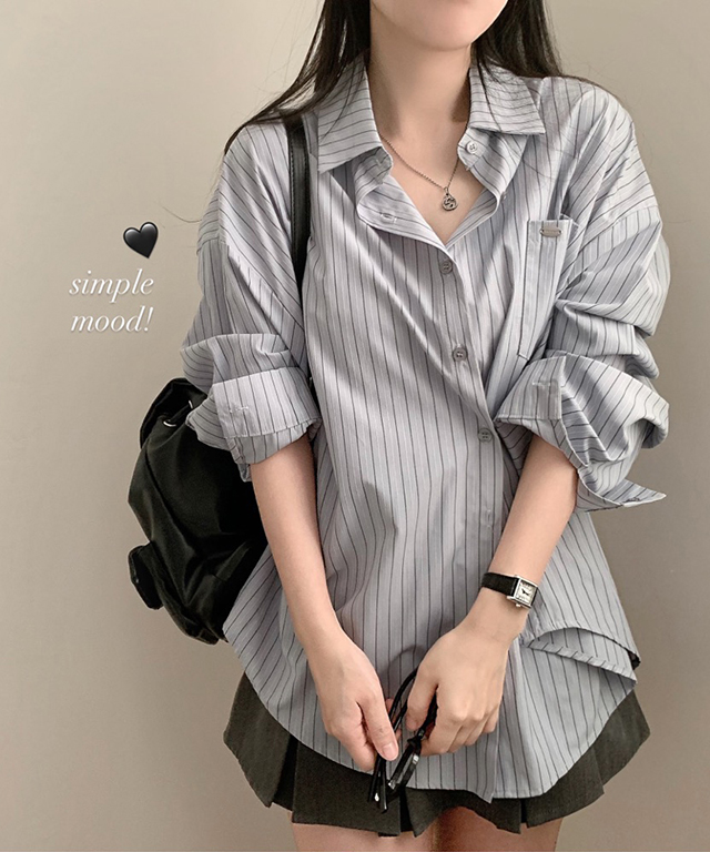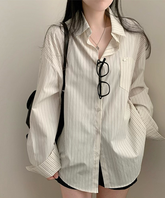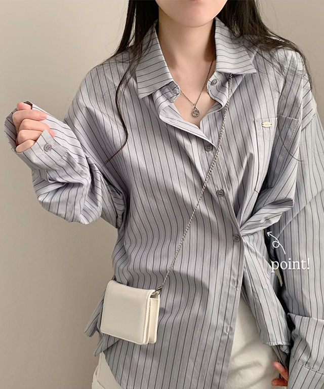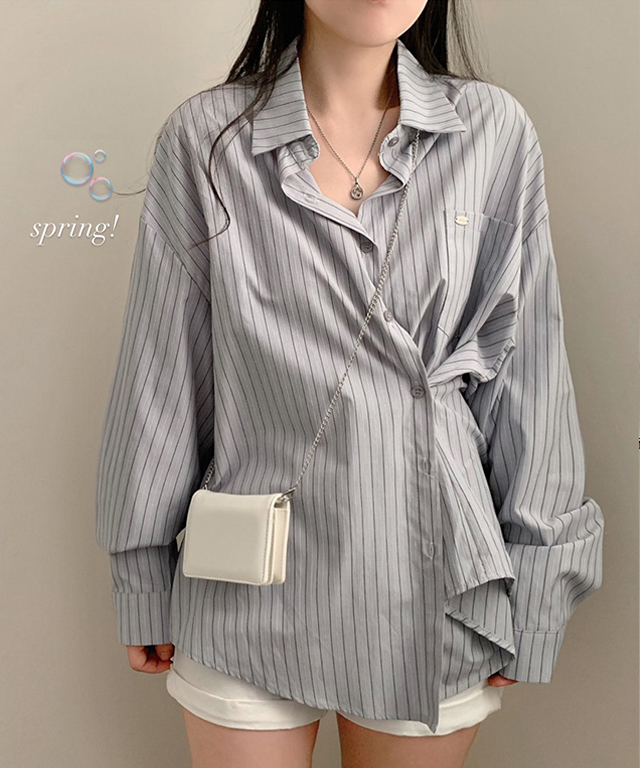 (2color)ストライプ ボーダーオーバーサイズシャツ