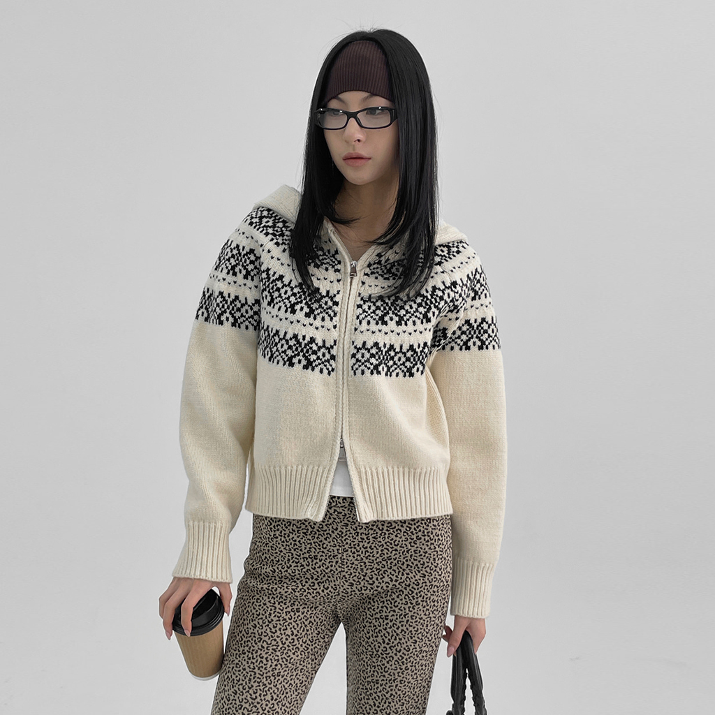コンビー ノルディック ツーウェイ ニット フードジップアップ (ウール 30%)