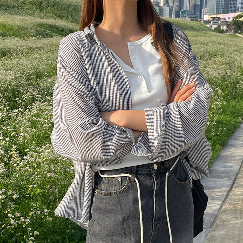 [3color]シースルーサマーオーバーサイズチェックシャツ