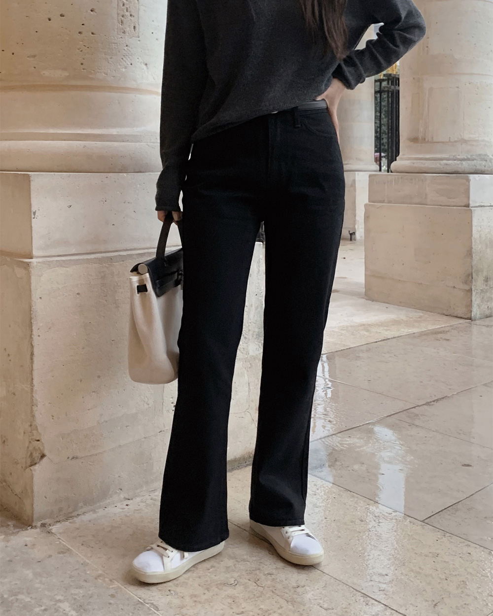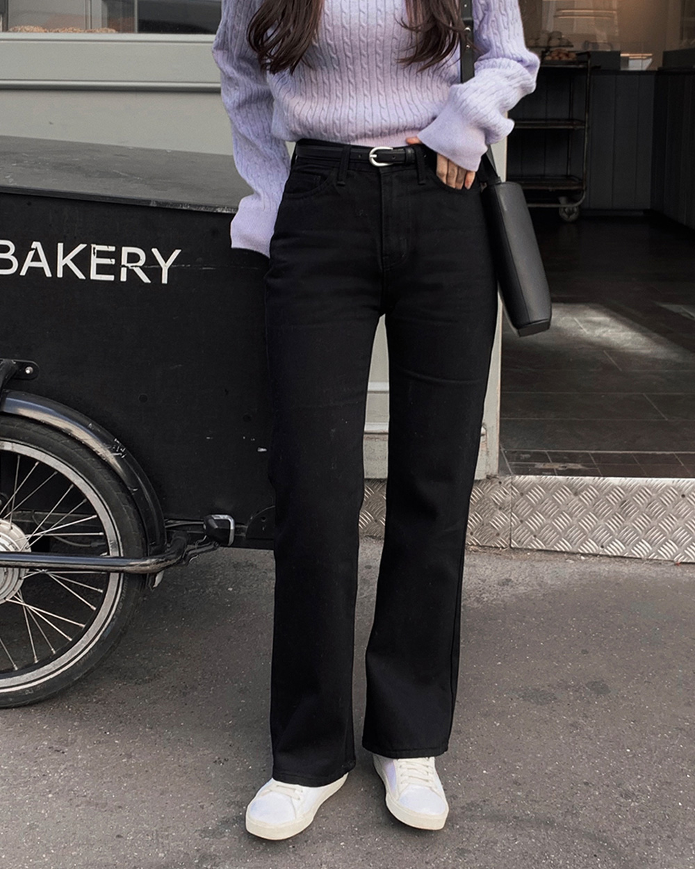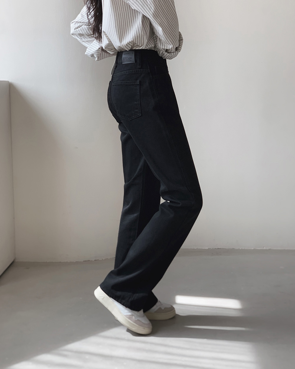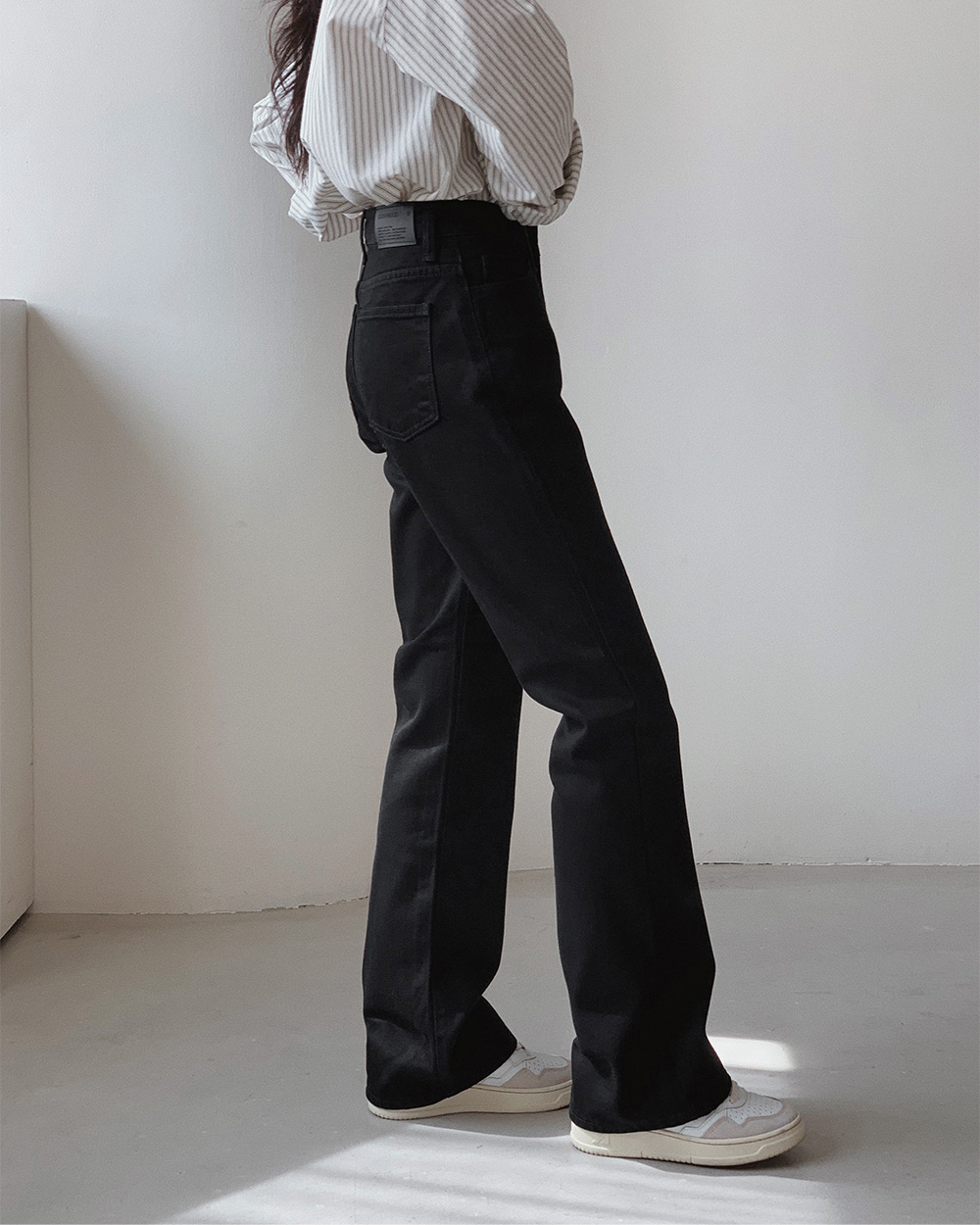 (basic/long) プレミアムセミブーツカットブラックデニムパンツ-4size