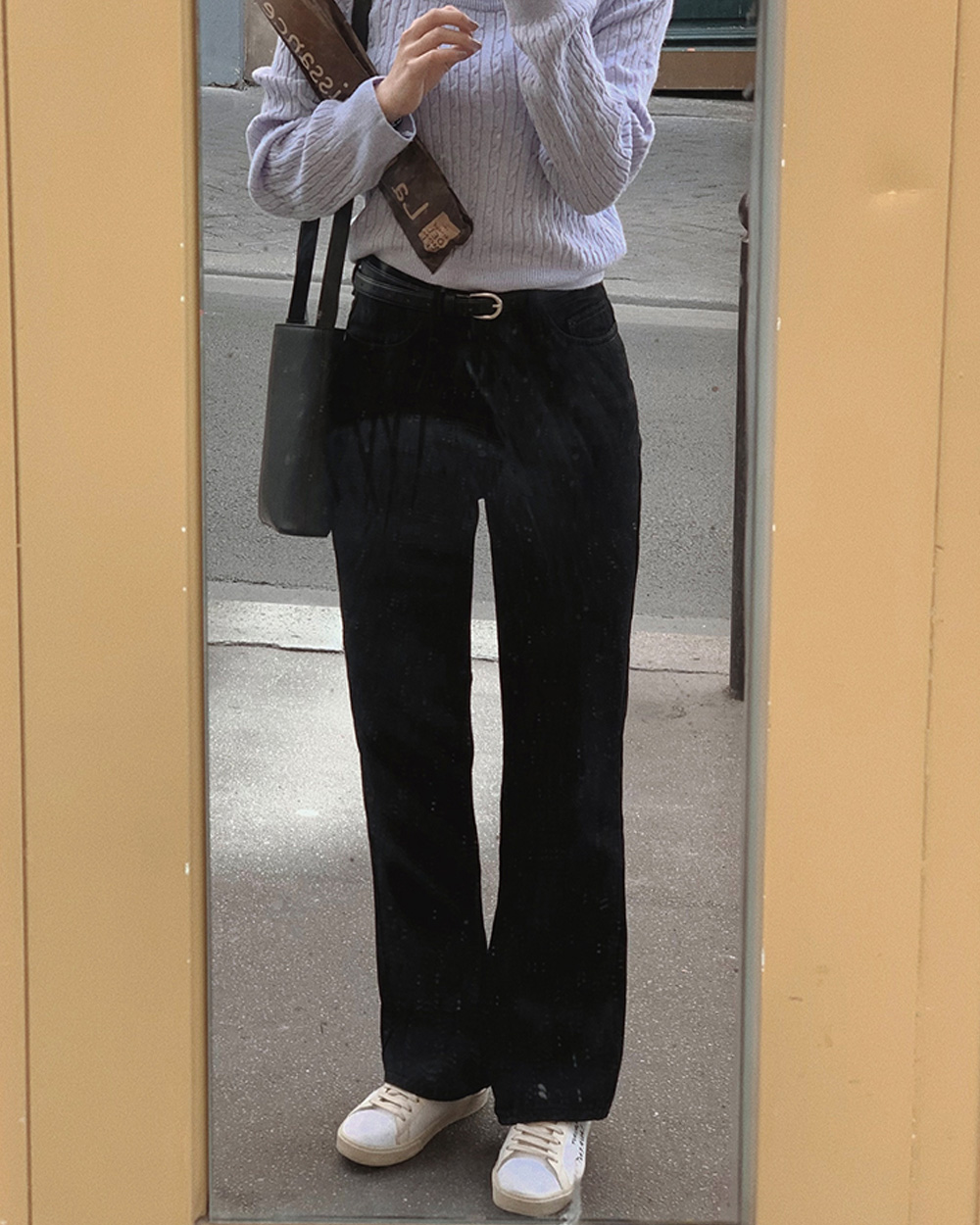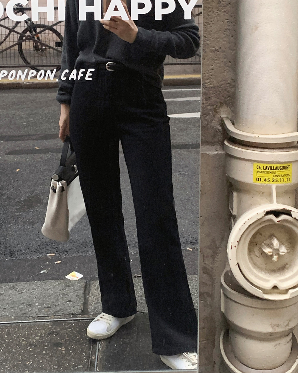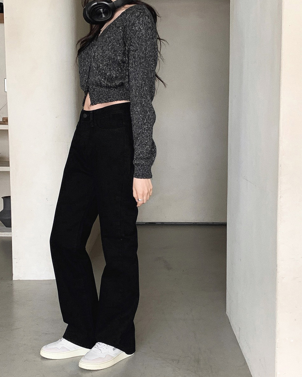 (basic/long) プレミアムセミブーツカットブラックデニムパンツ-4size
