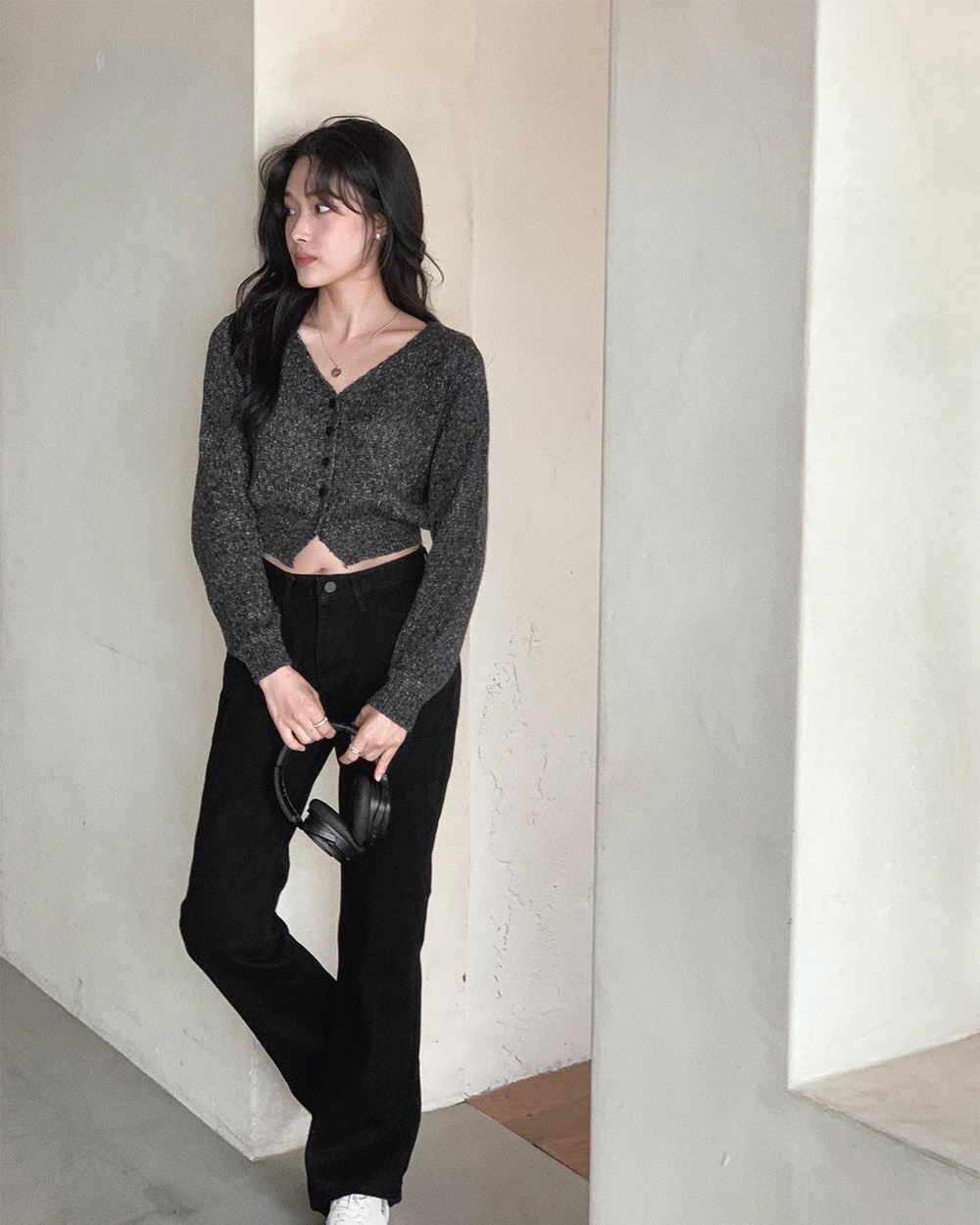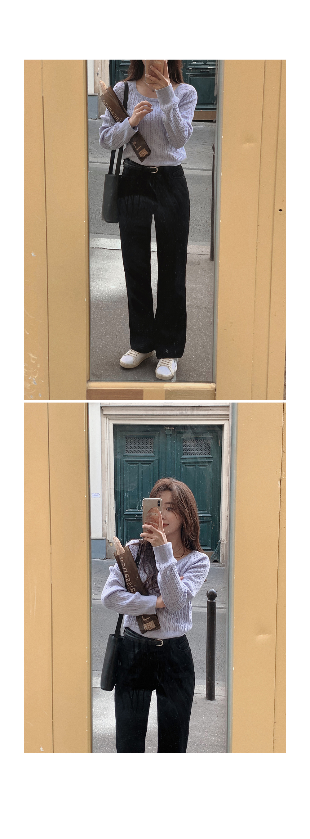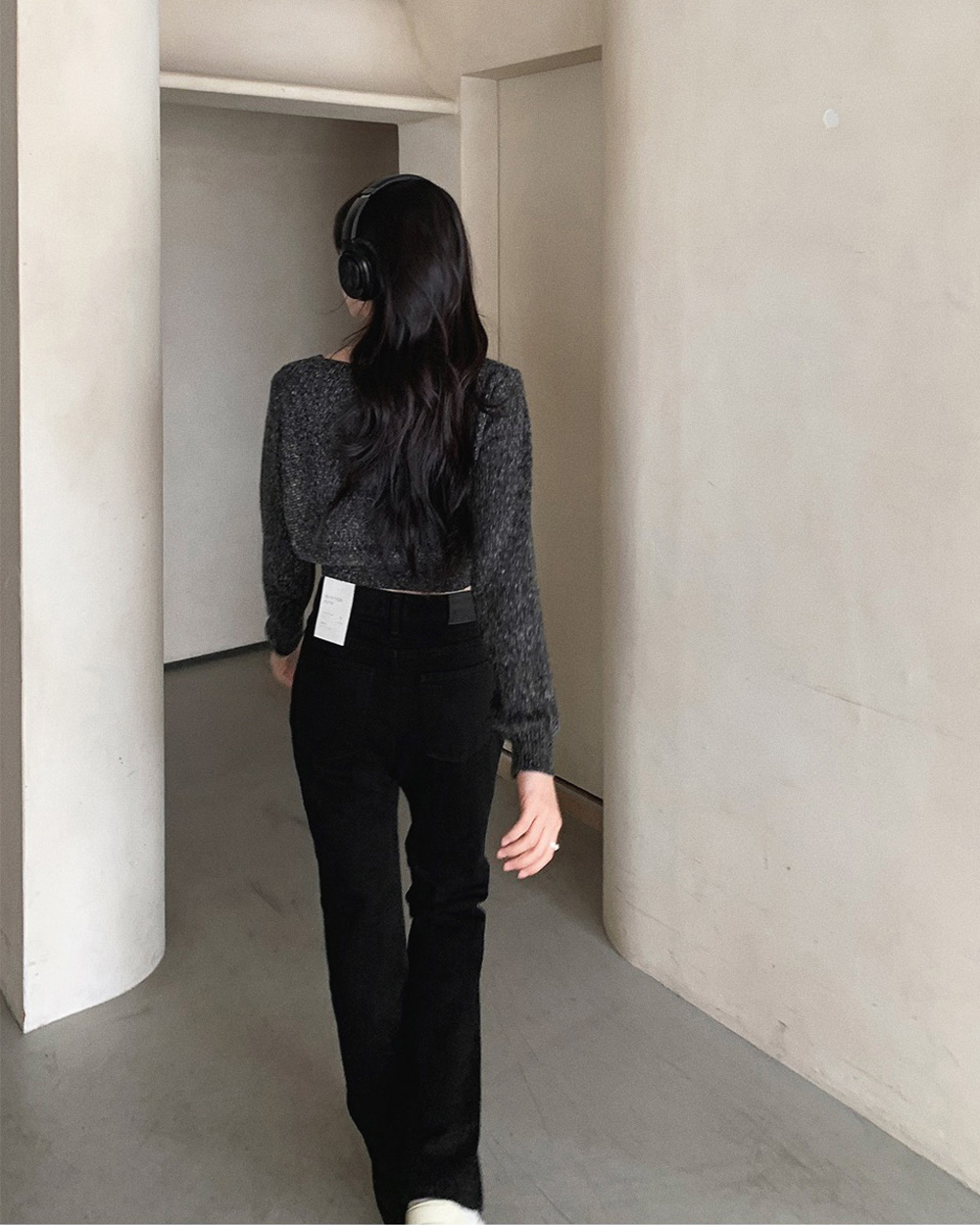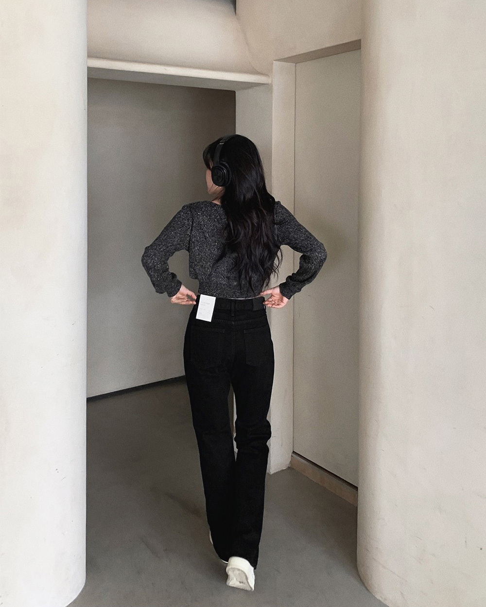 (basic/long) プレミアムセミブーツカットブラックデニムパンツ-4size