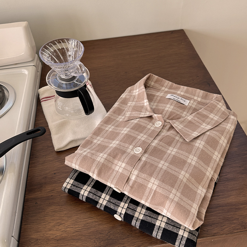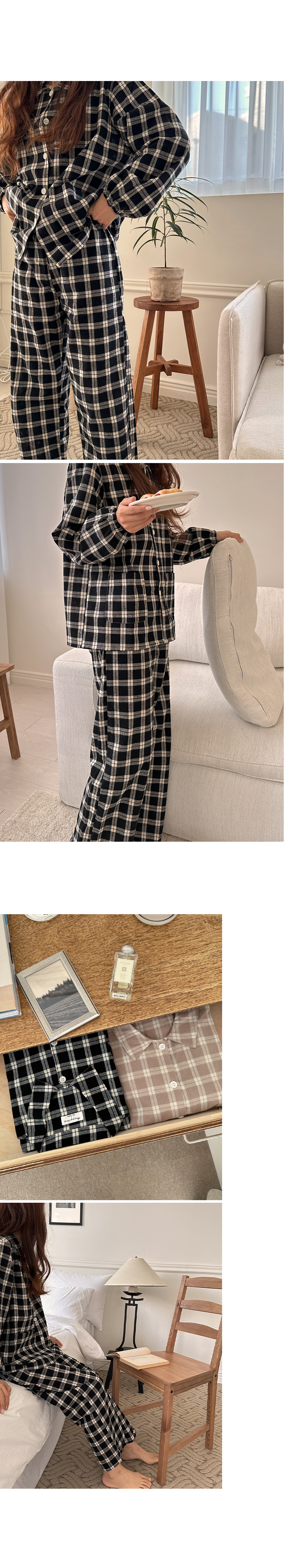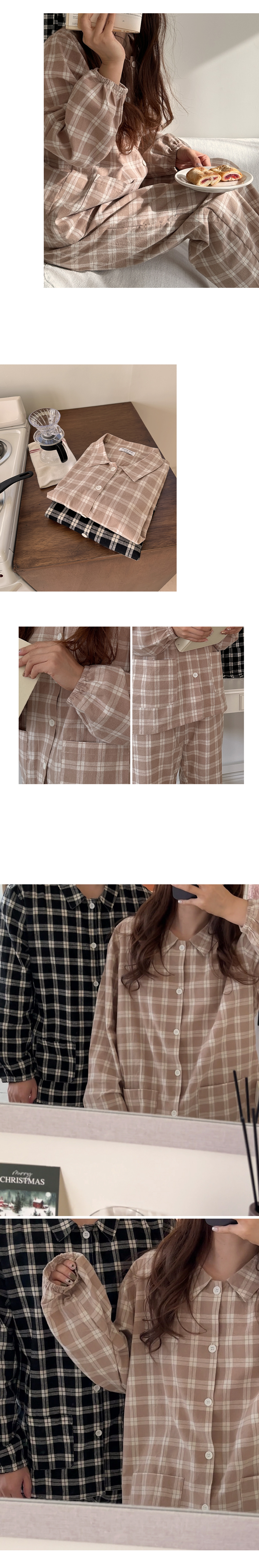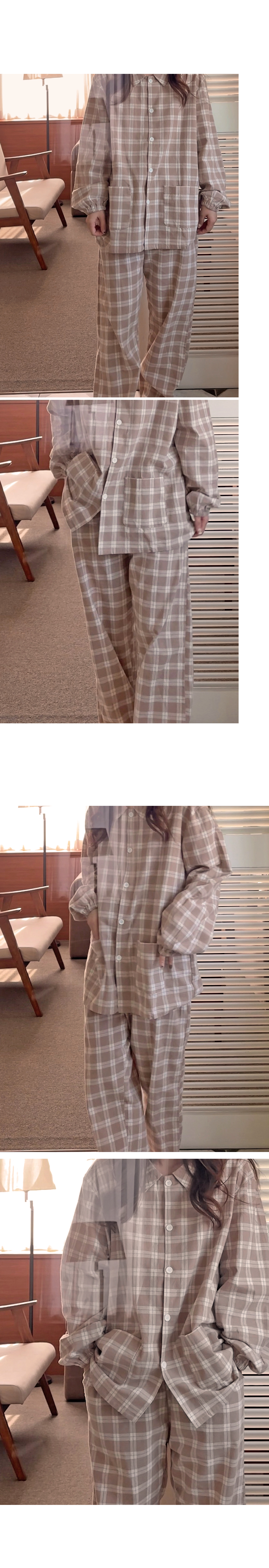 [2color]ピーチ起毛チェック長袖パジャマセット