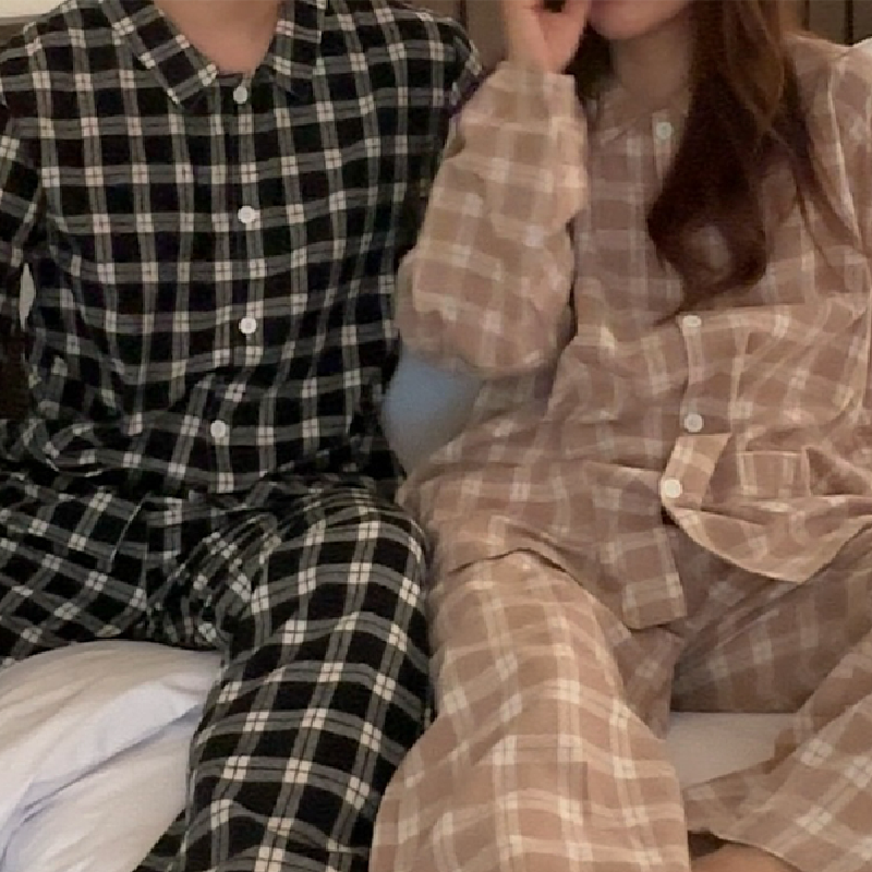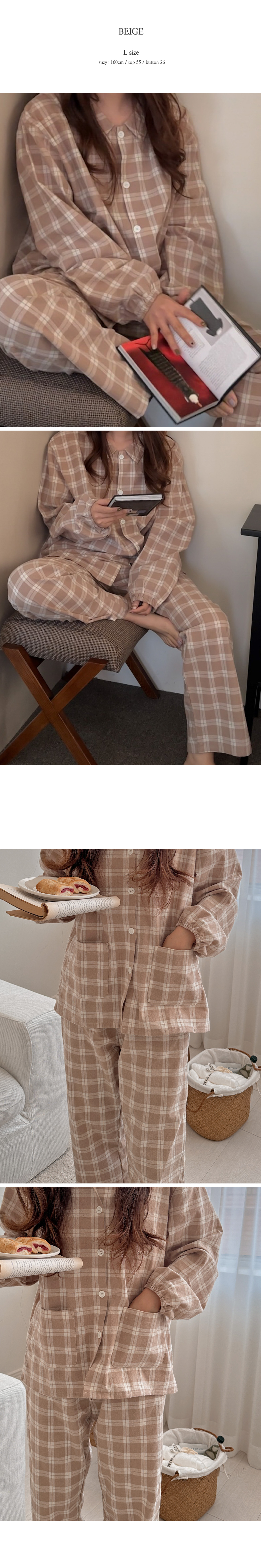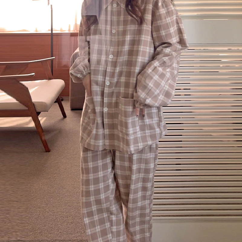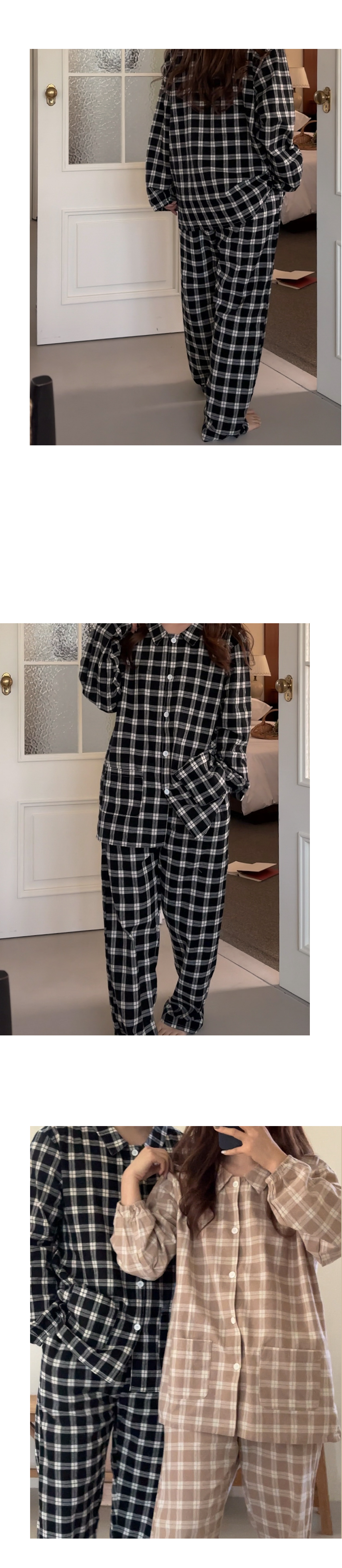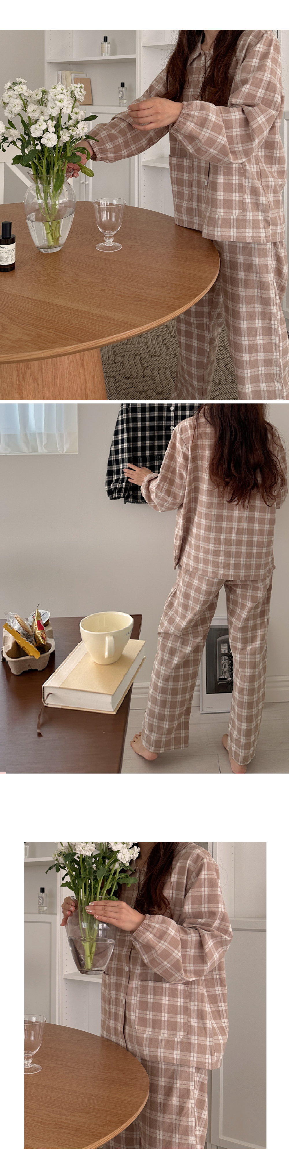 [2color]ピーチ起毛チェック長袖パジャマセット