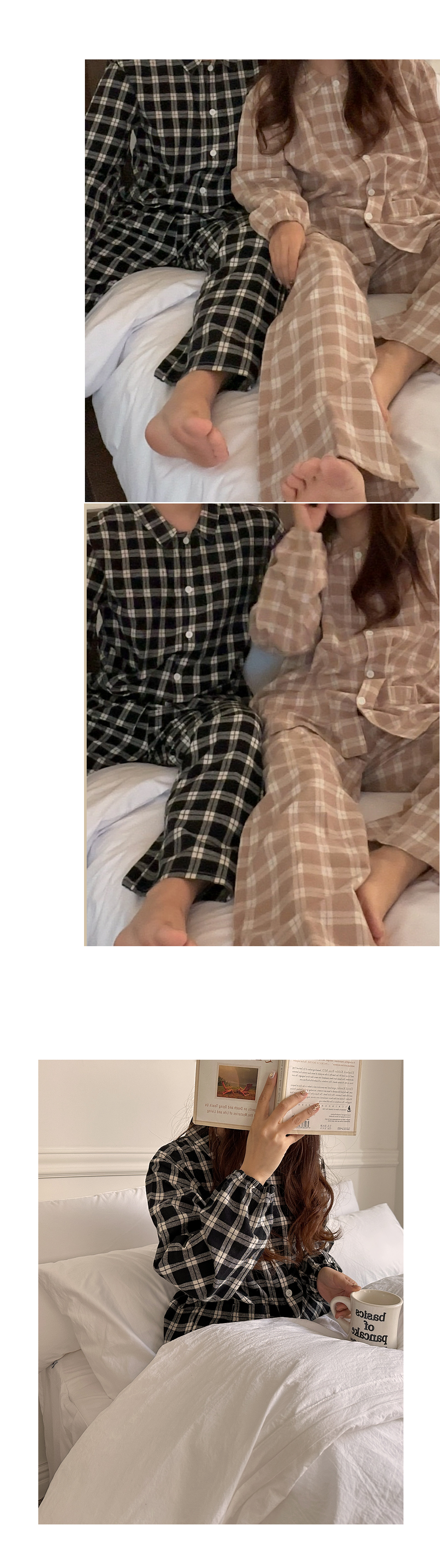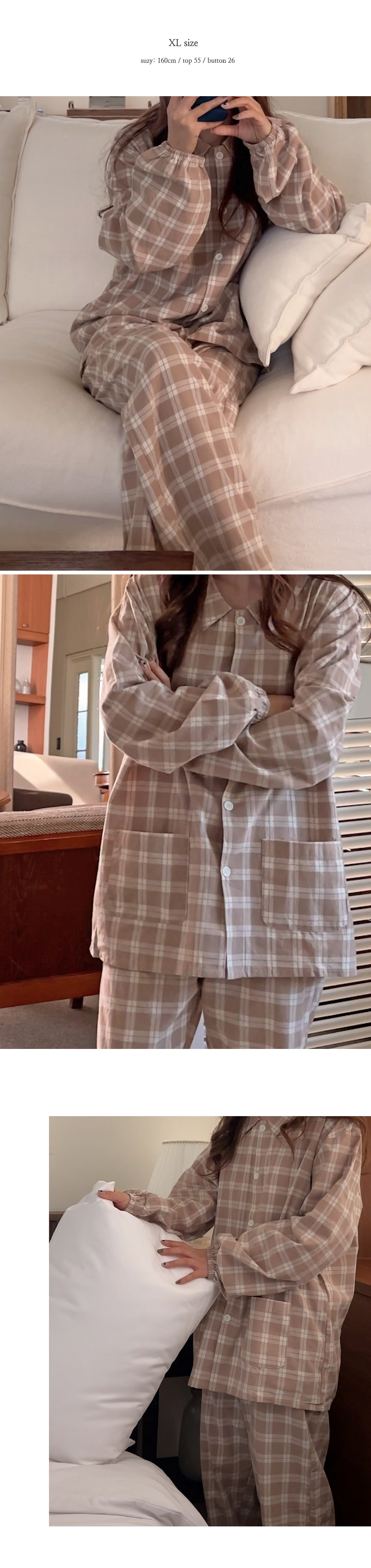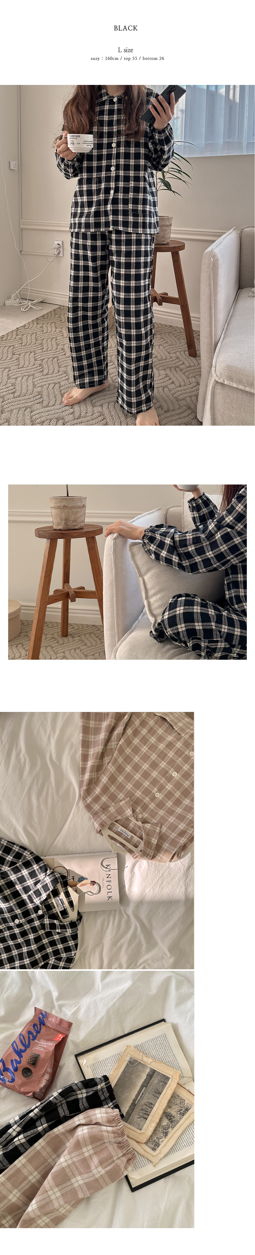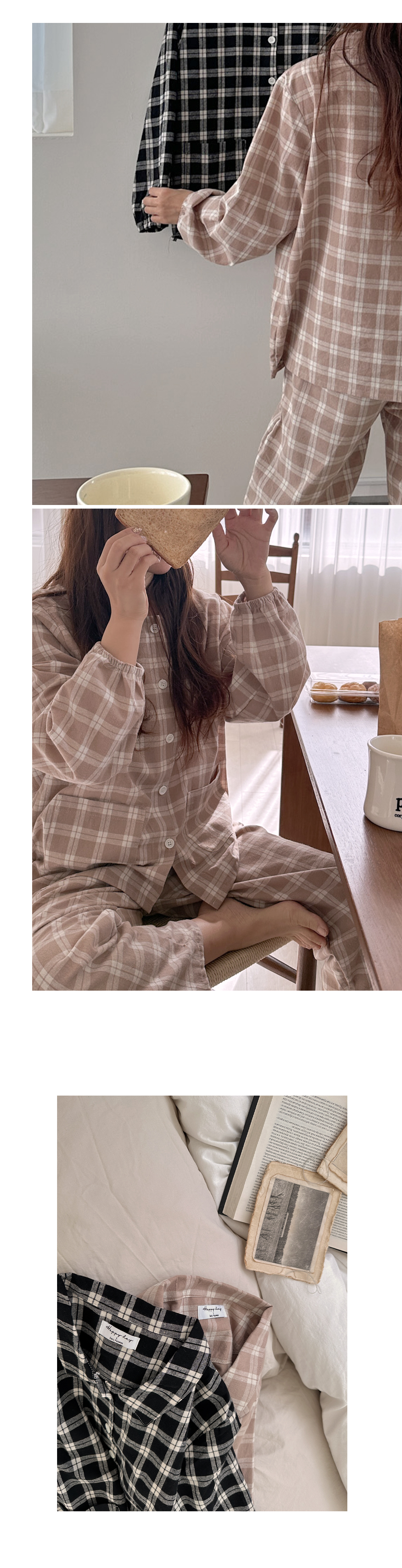 [2color]ピーチ起毛チェック長袖パジャマセット
