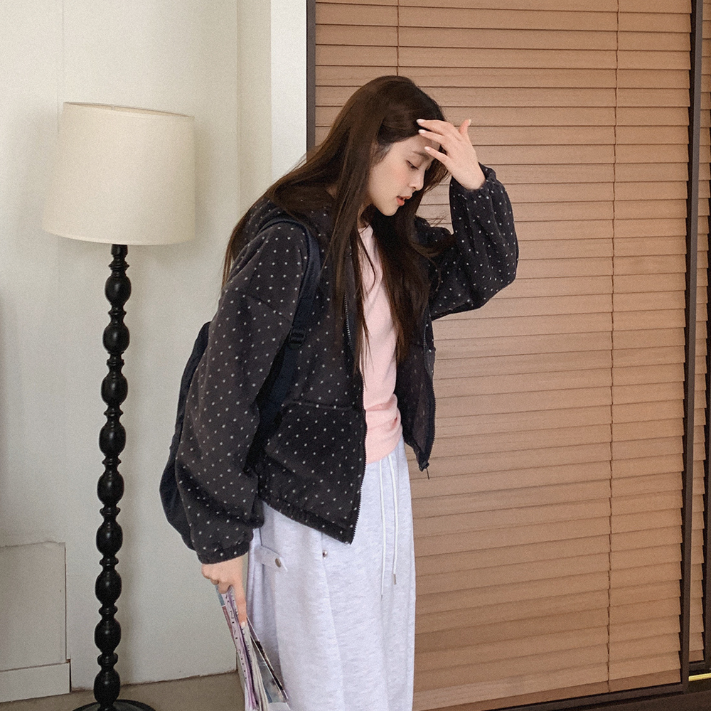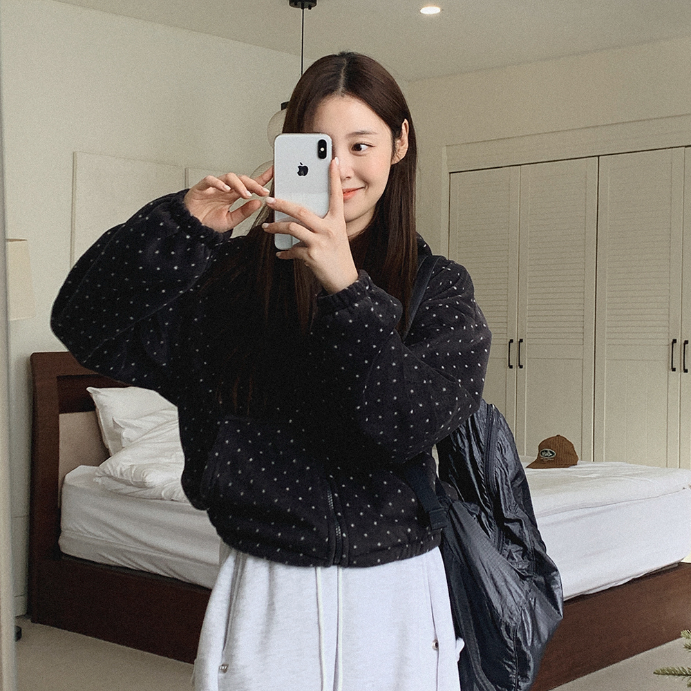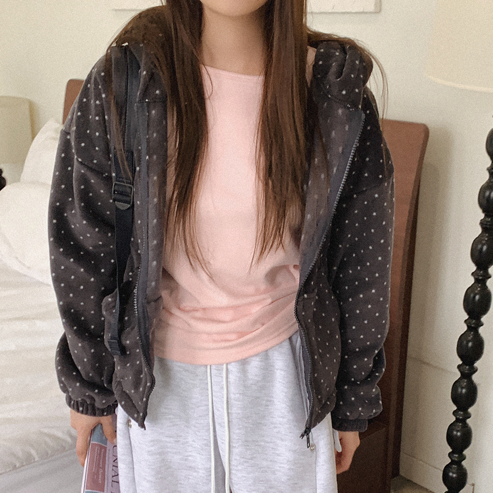 ドット柄 フリース パーカー