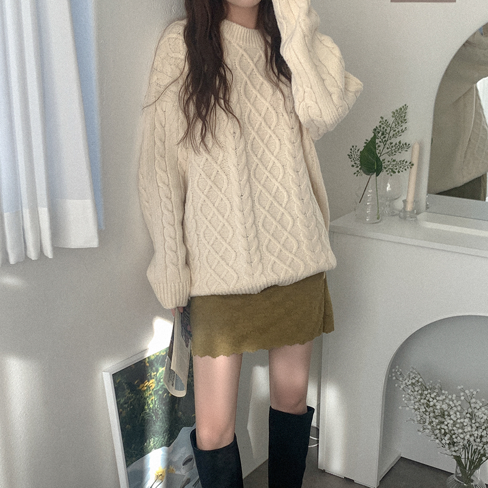 ケーブルルーズフィットニット