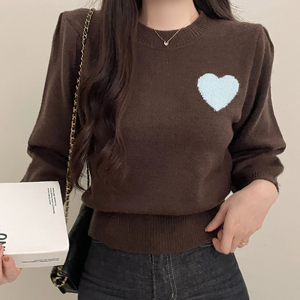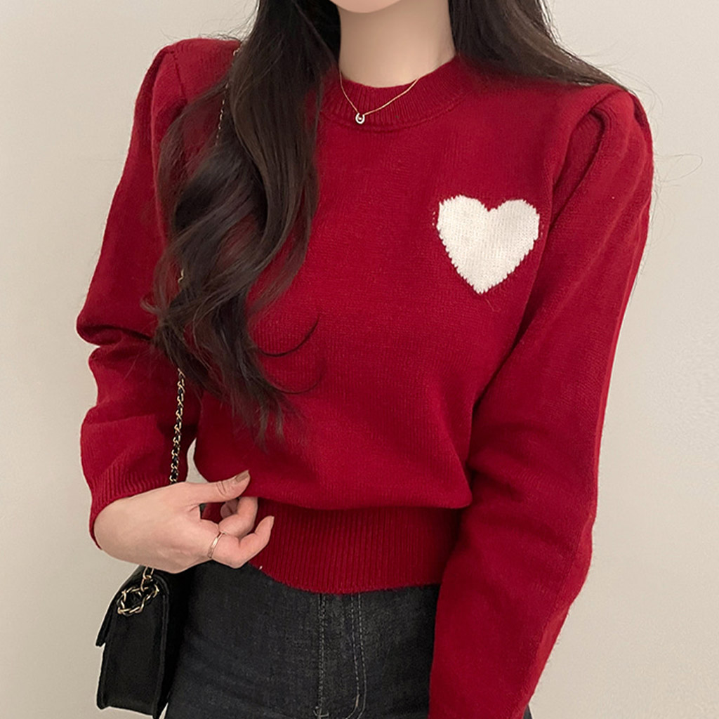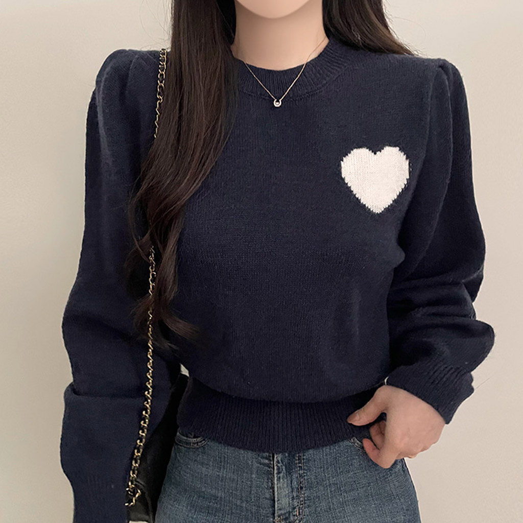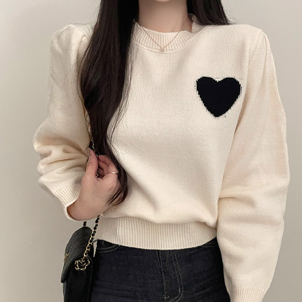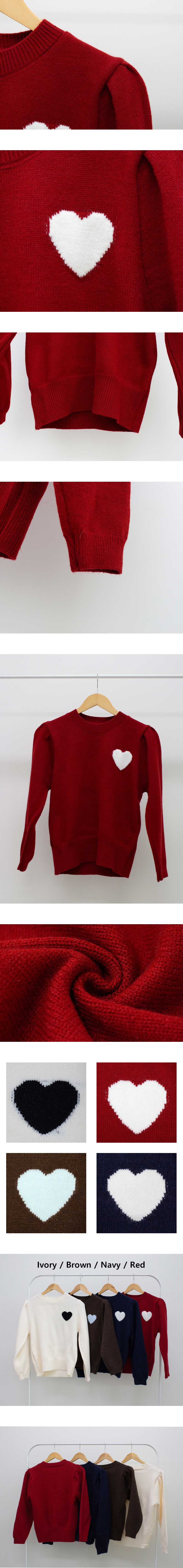 ハートステッチパフクロップドラウンドネックニット4color