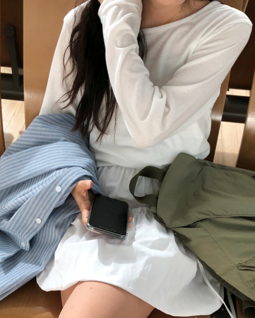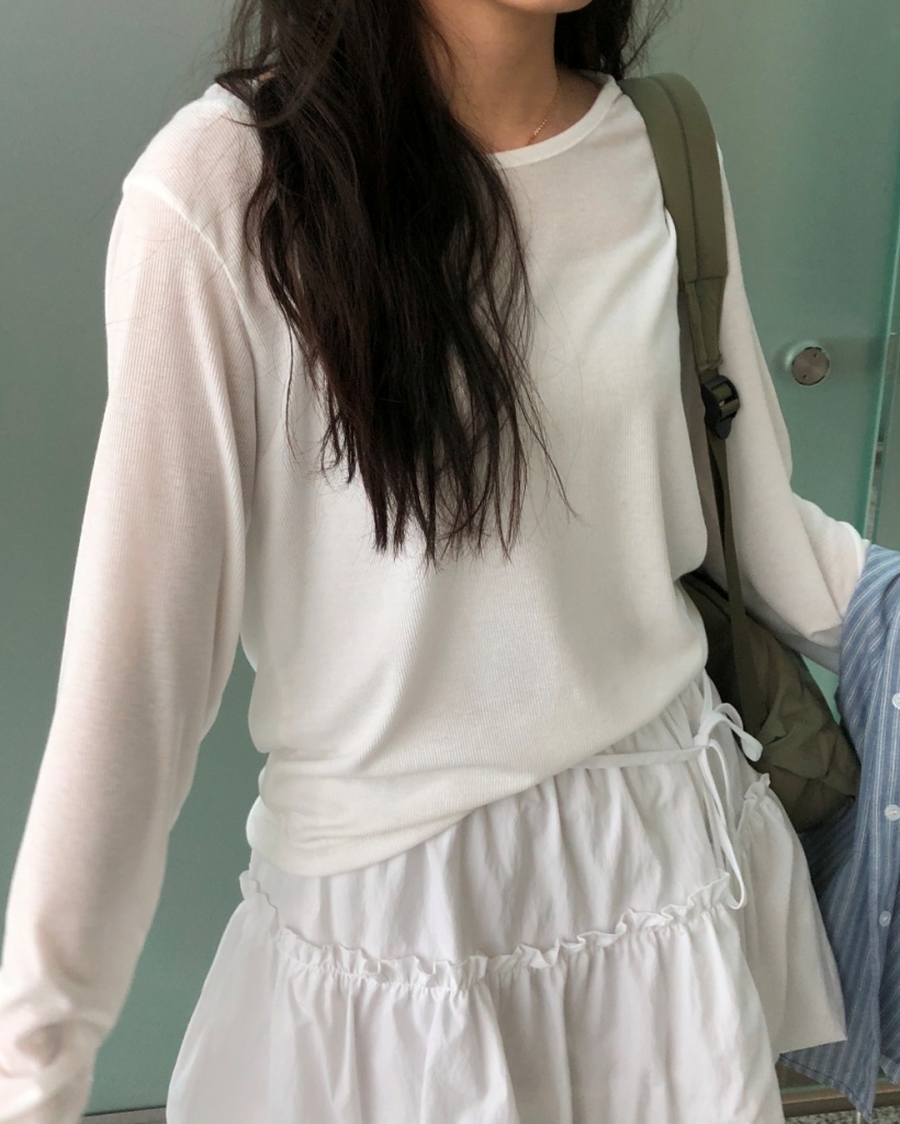 ラウンドネックルーズフィットリブレイヤード長袖Tシャツ7color