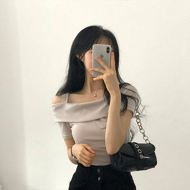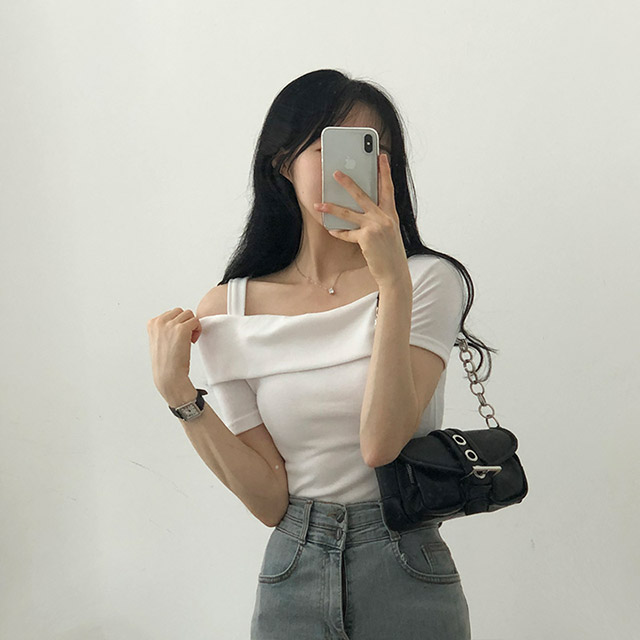 アシンメトリーワンオフショルニット