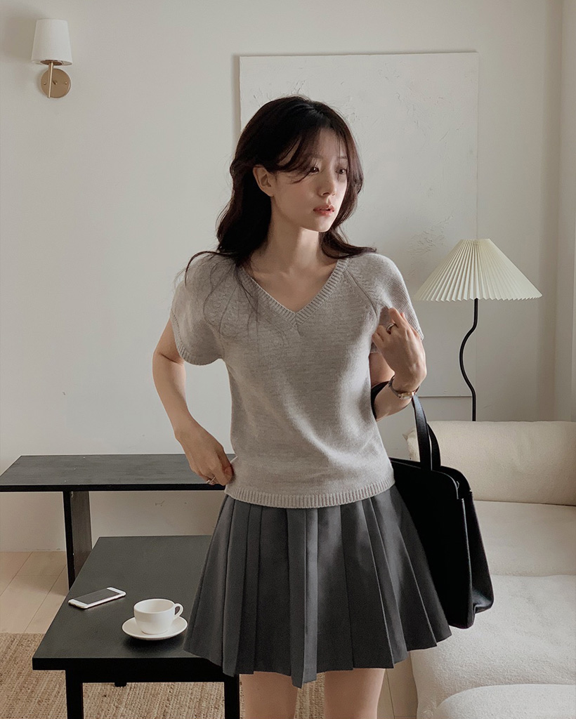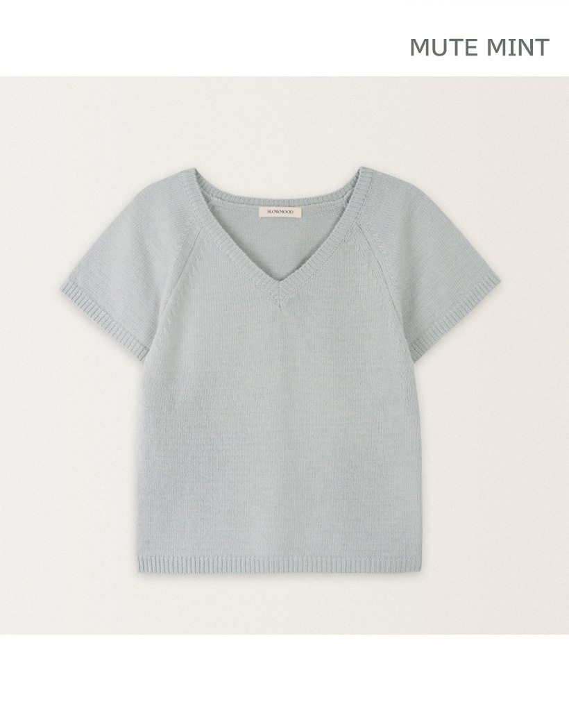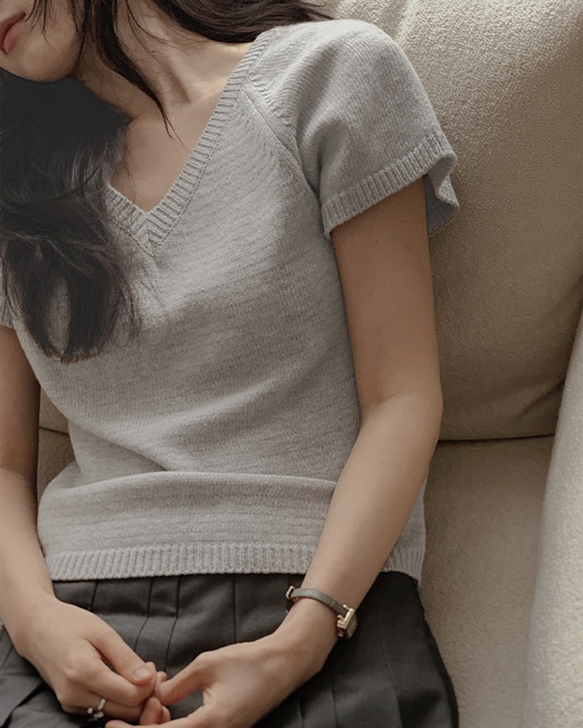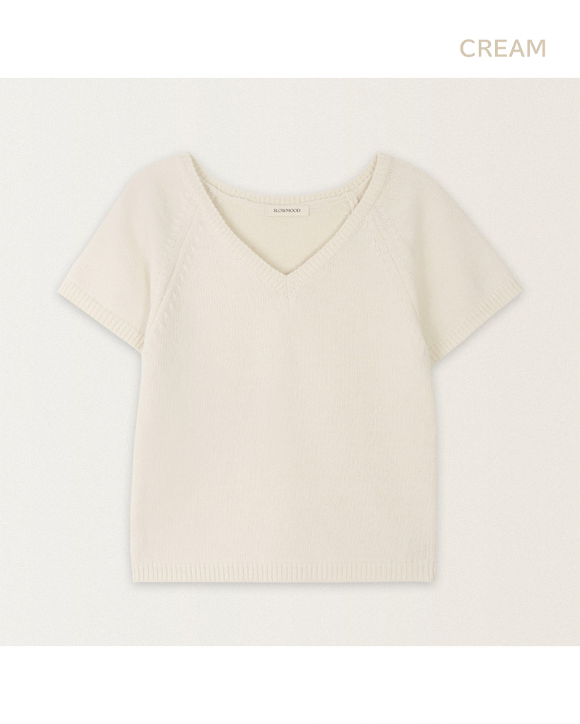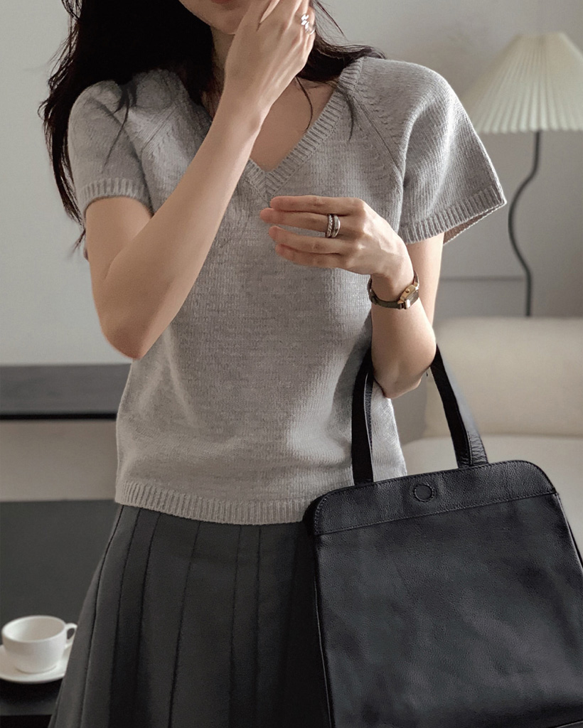 [] 華奢見えVネックラグラン半袖ニットトップス