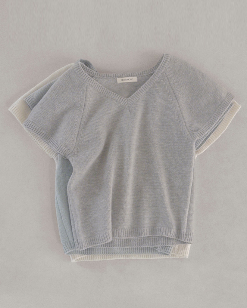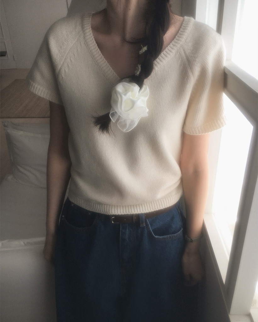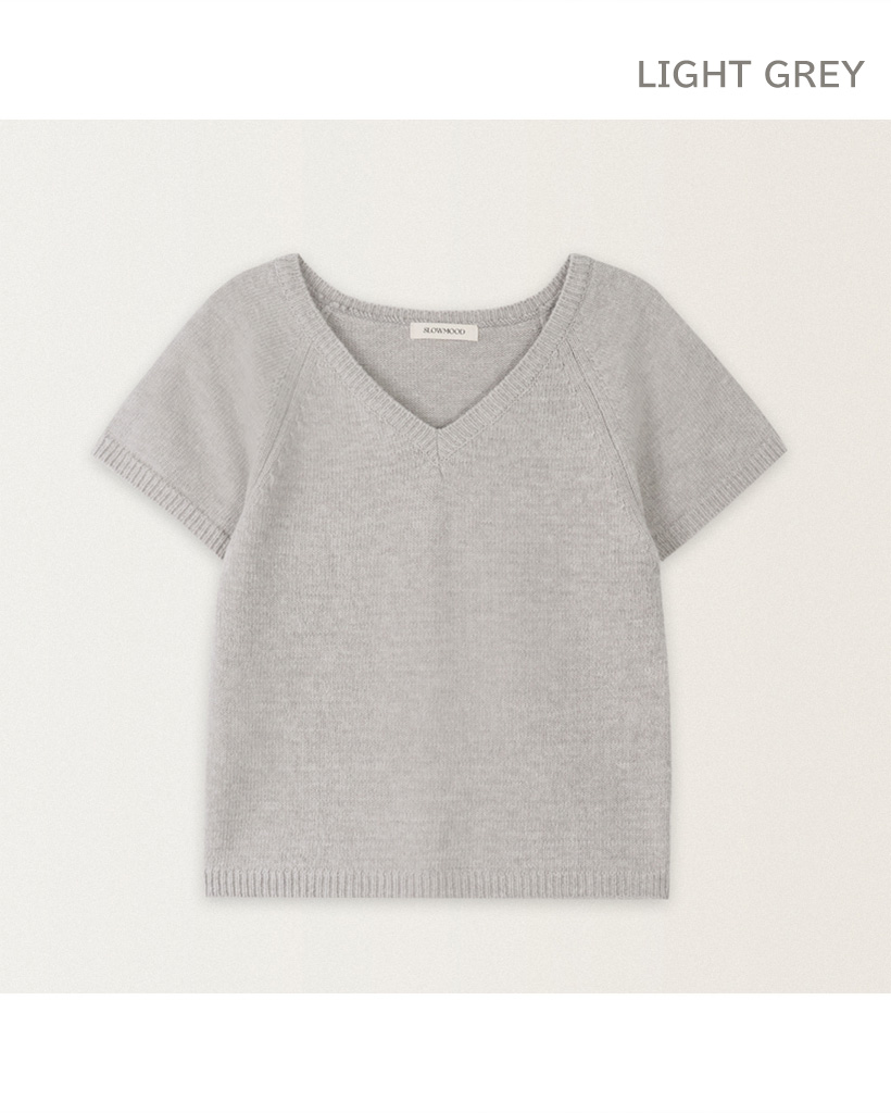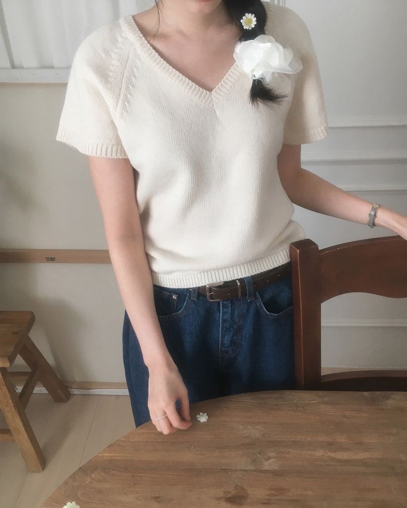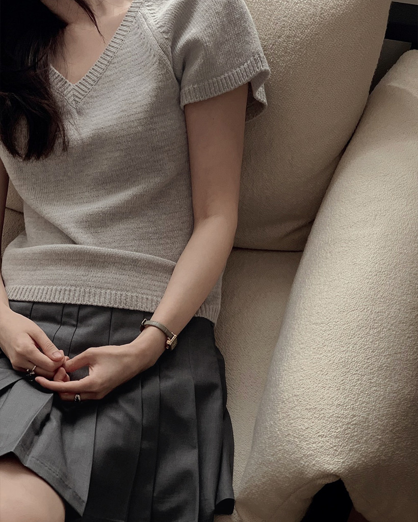 [] 華奢見えVネックラグラン半袖ニットトップス