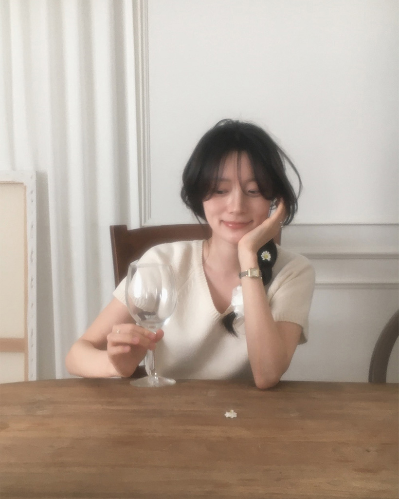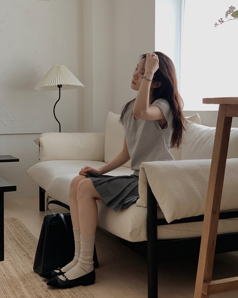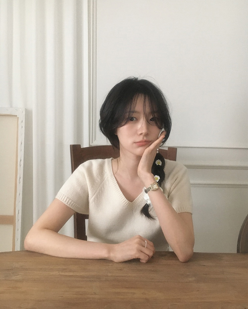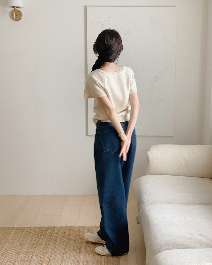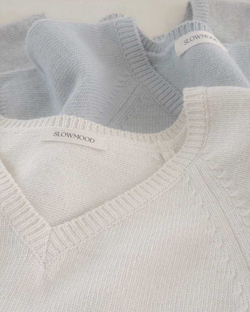[] 華奢見えVネックラグラン半袖ニットトップス