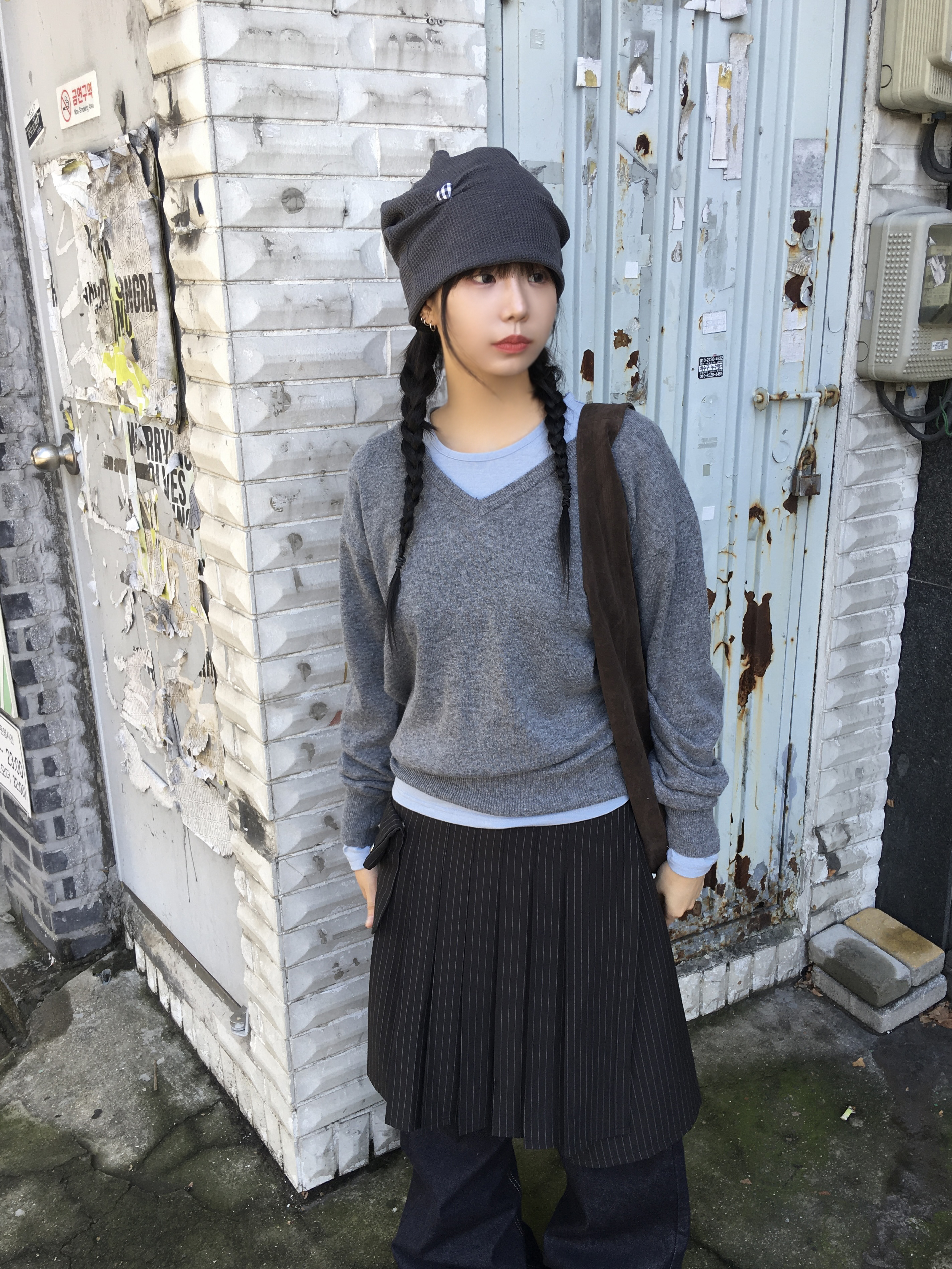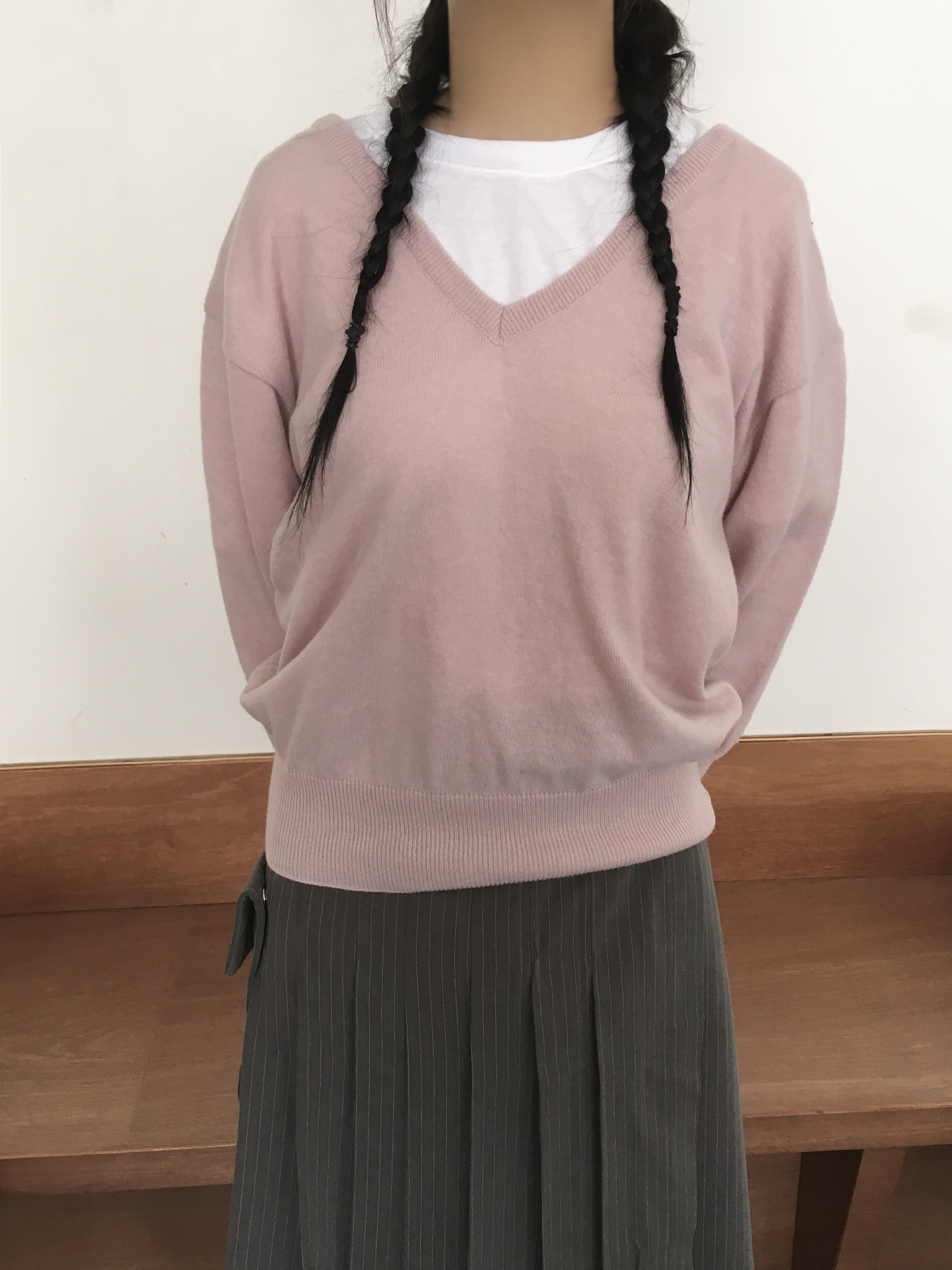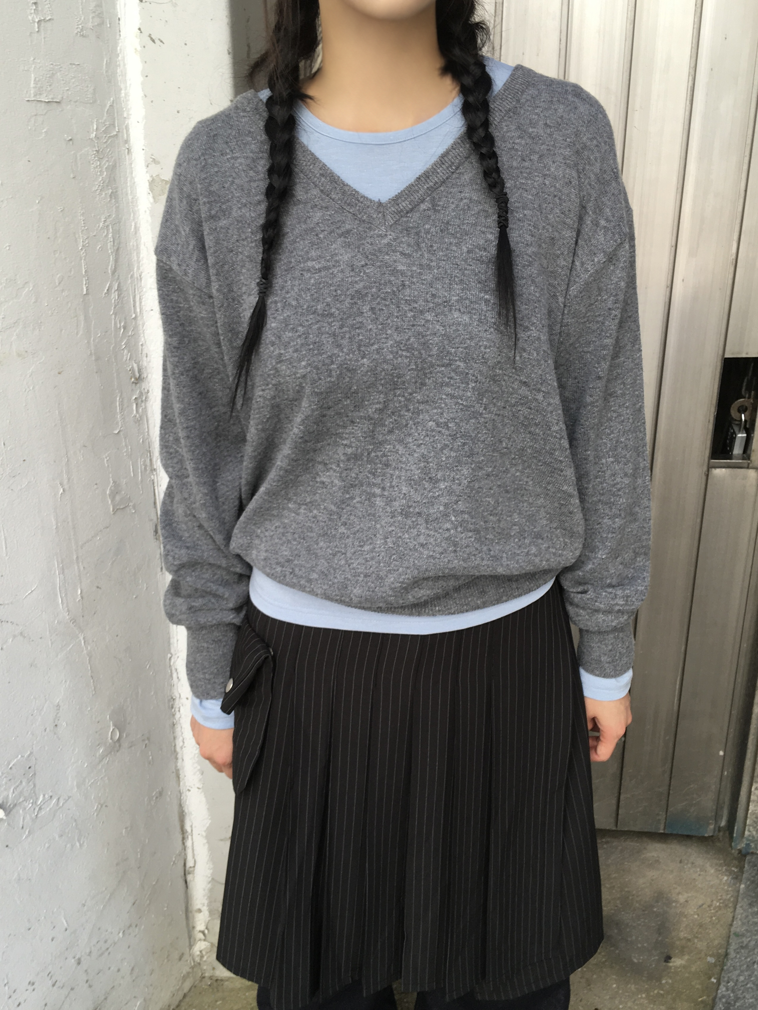 (4color)Vネックウールニット