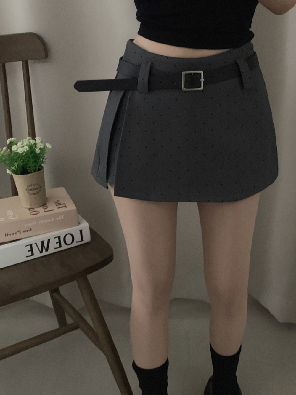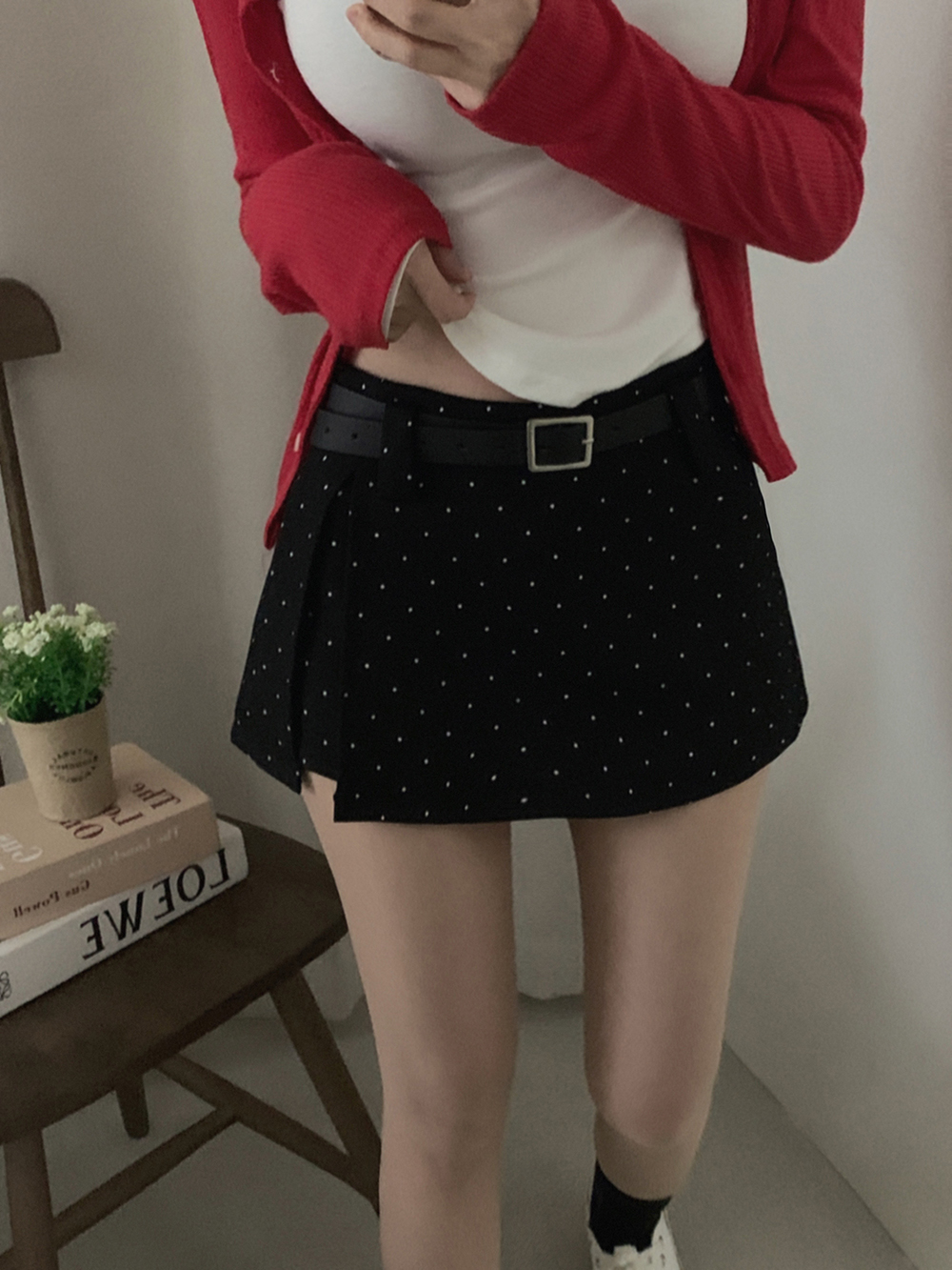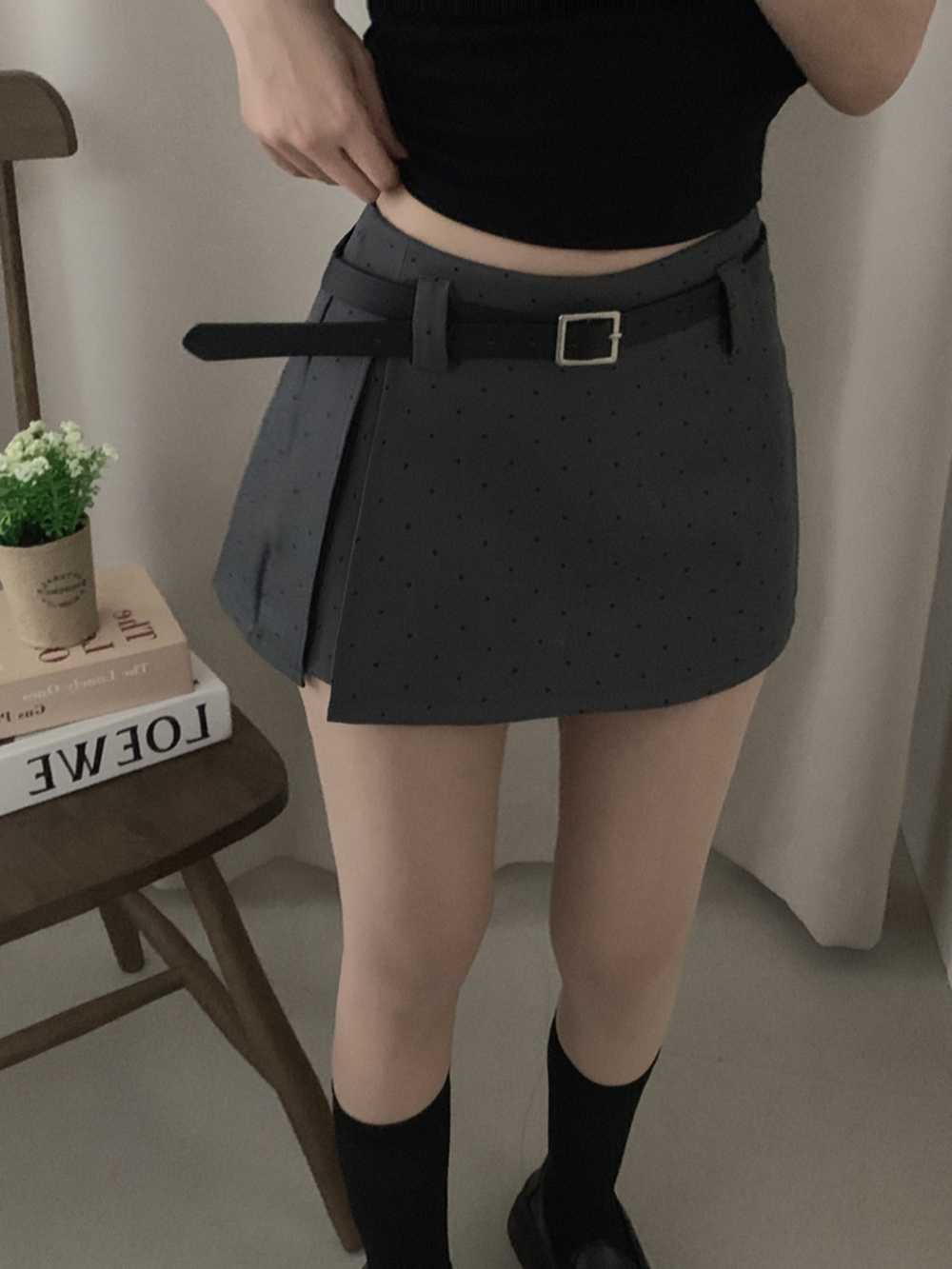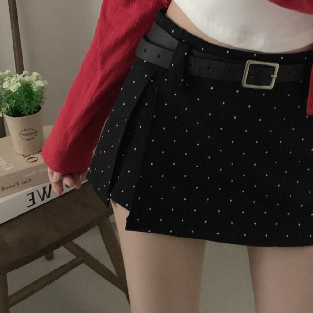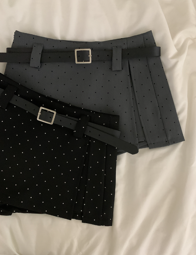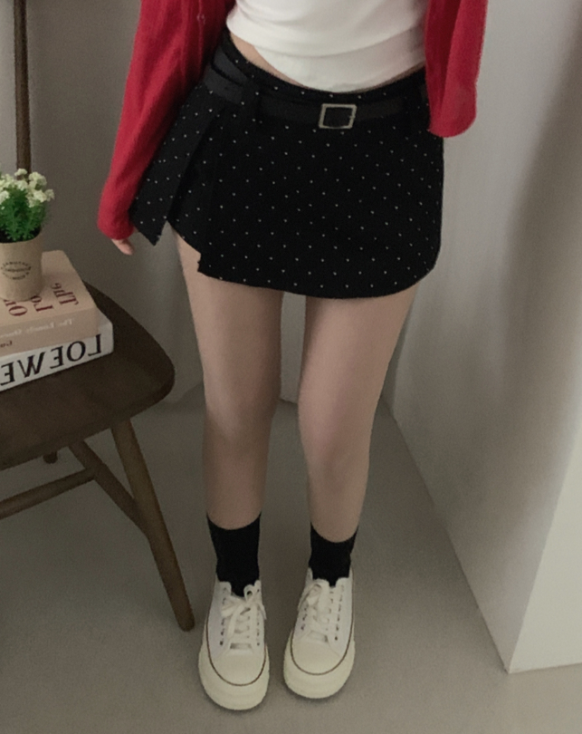 (set)[ベルト]ドットポイントミニスカート