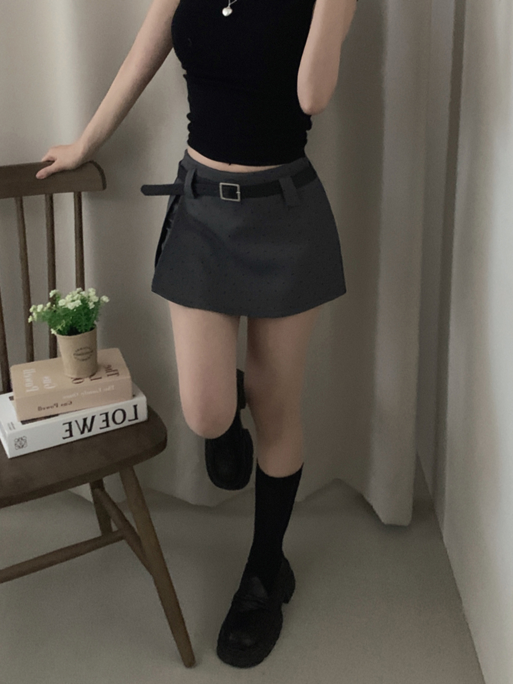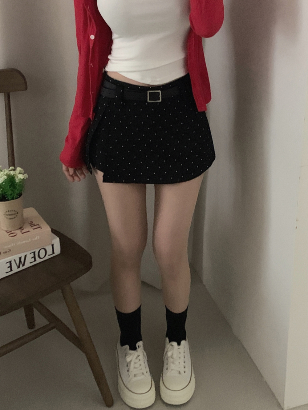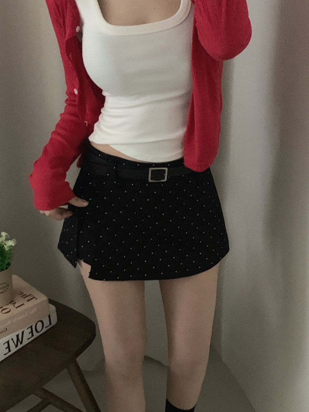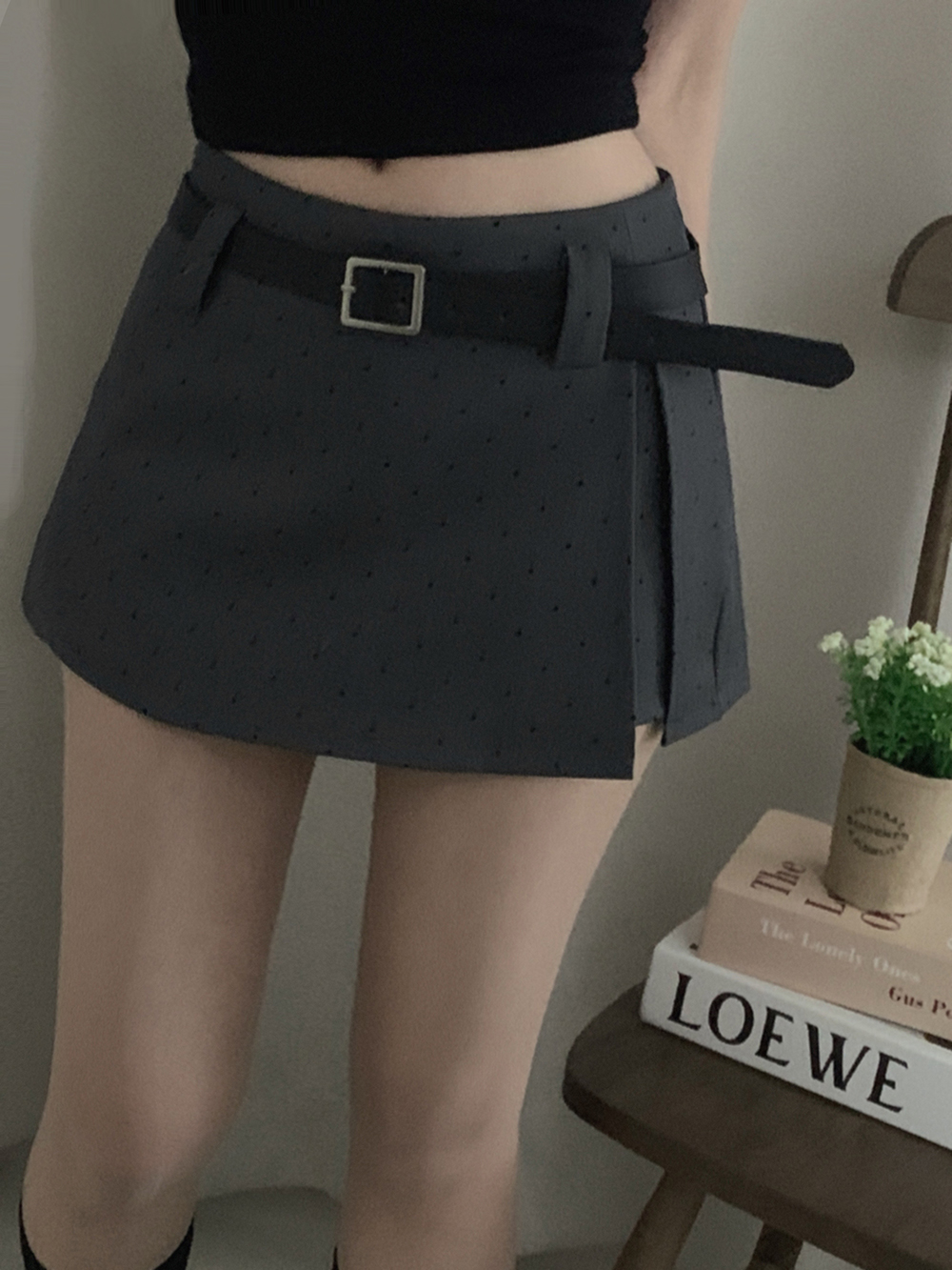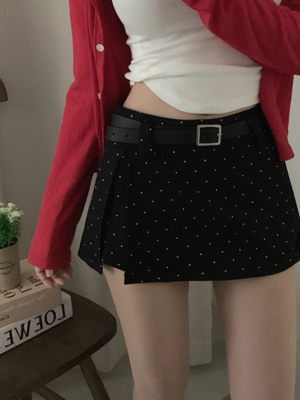 (set)[ベルト]ドットポイントミニスカート