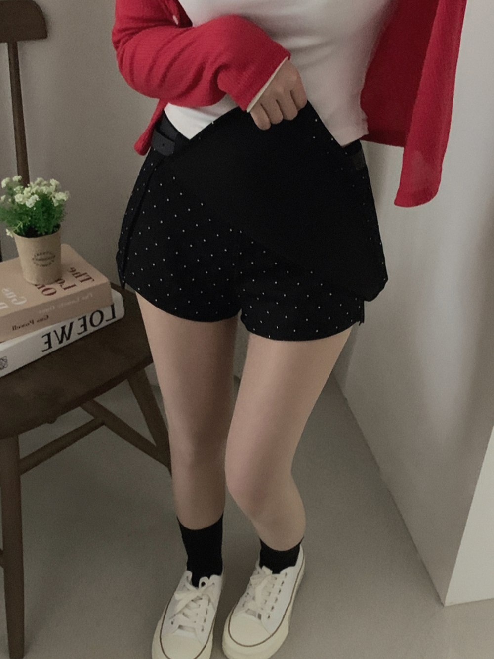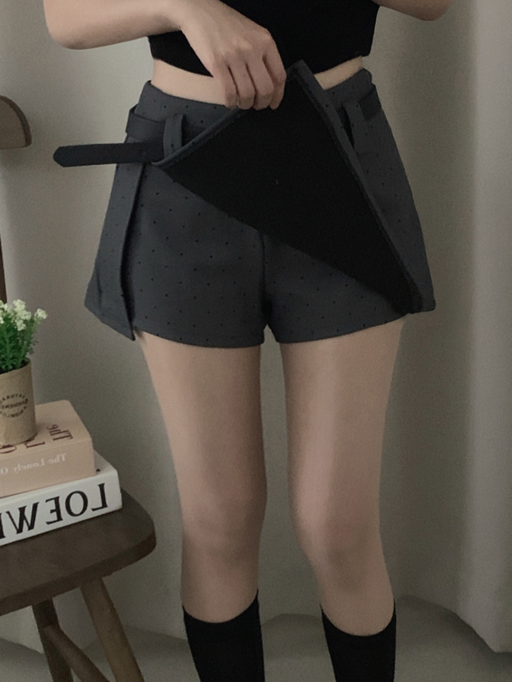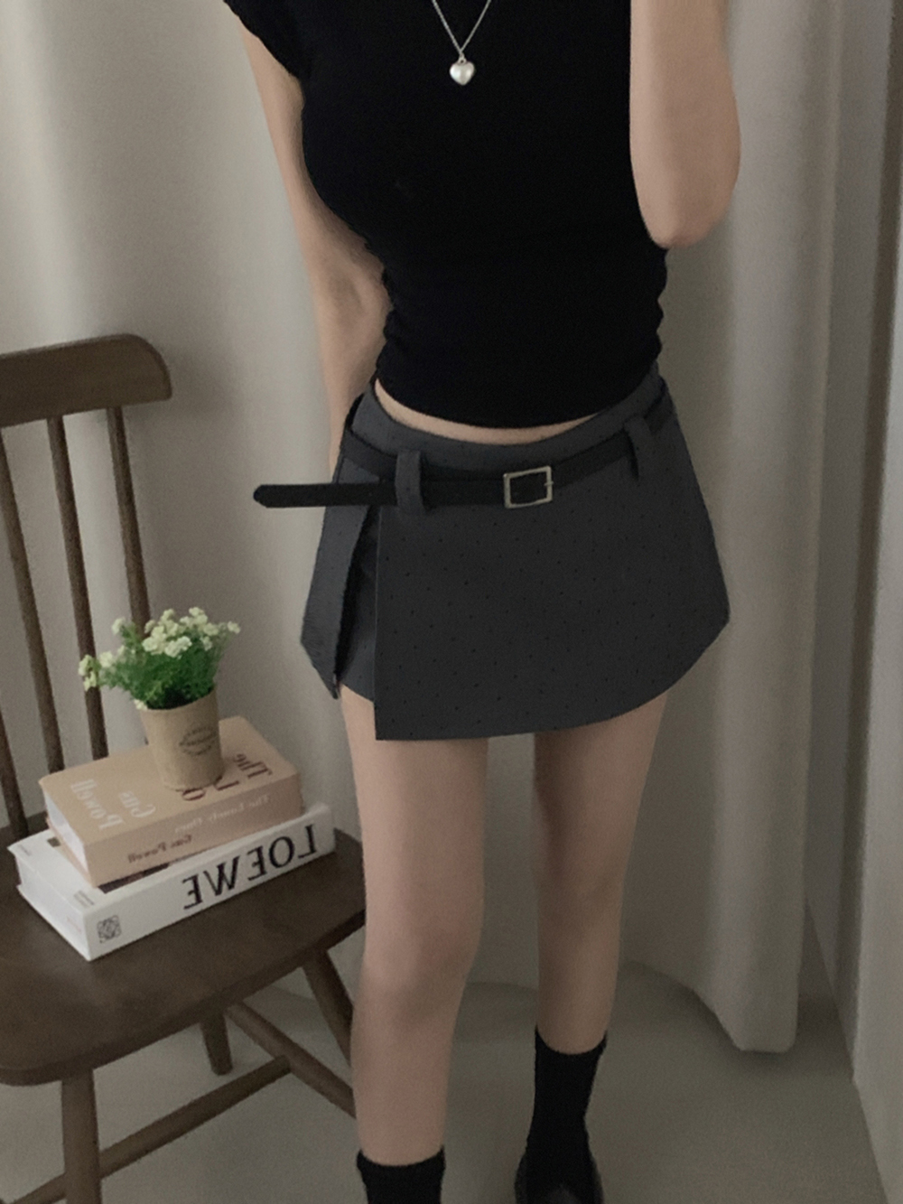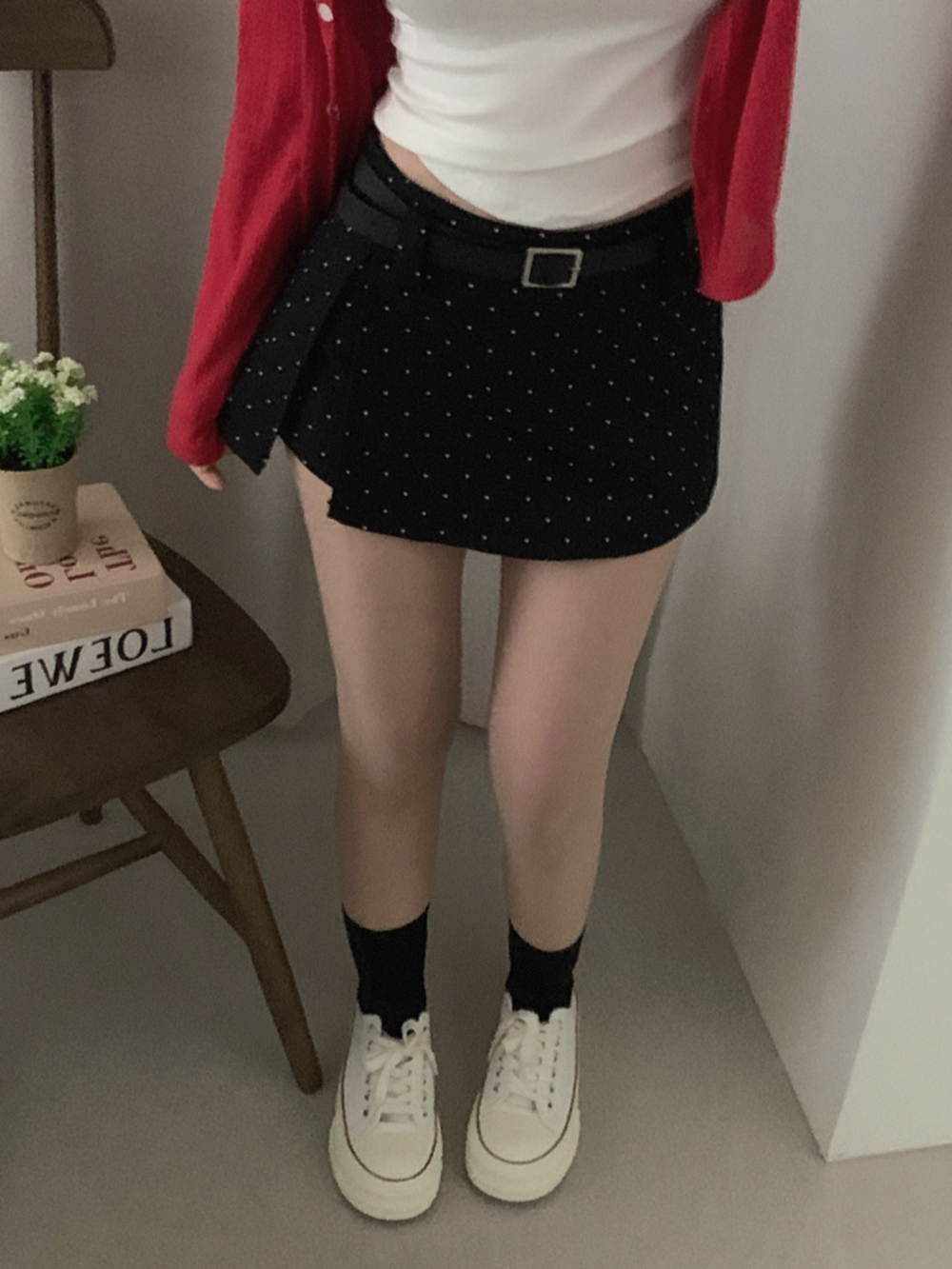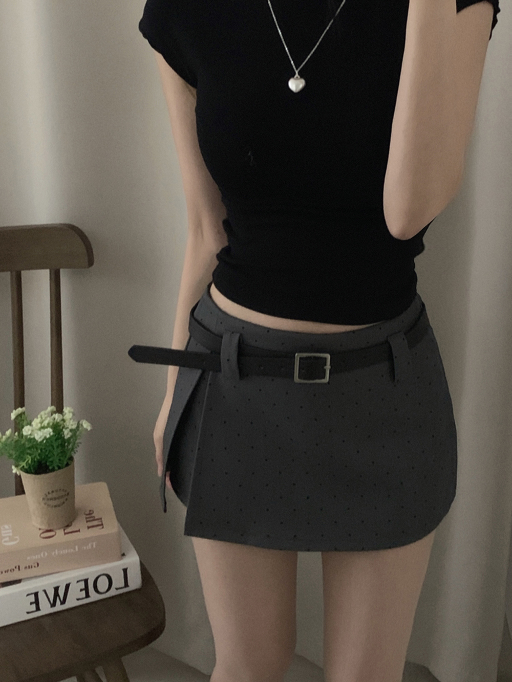 (set)[ベルト]ドットポイントミニスカート