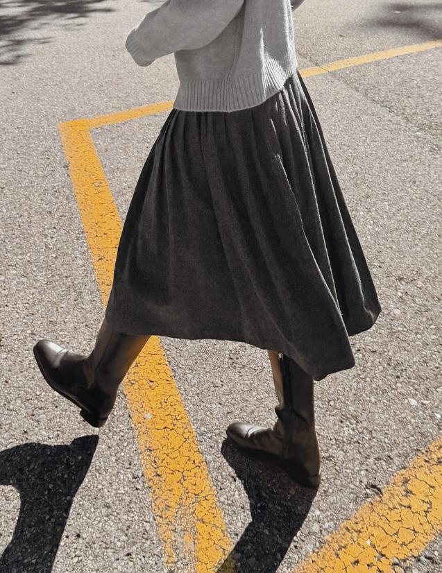 タック入りウールミドル丈スカート
