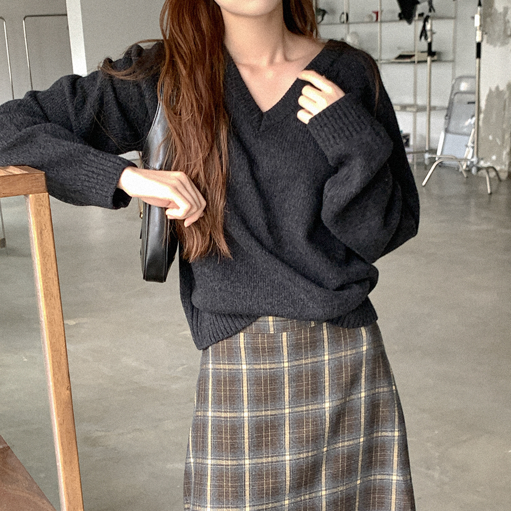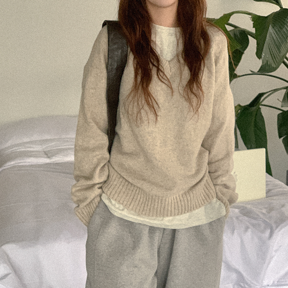 ウールVネックニット