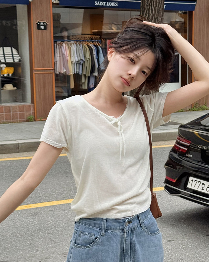 リボンレースサマーニット