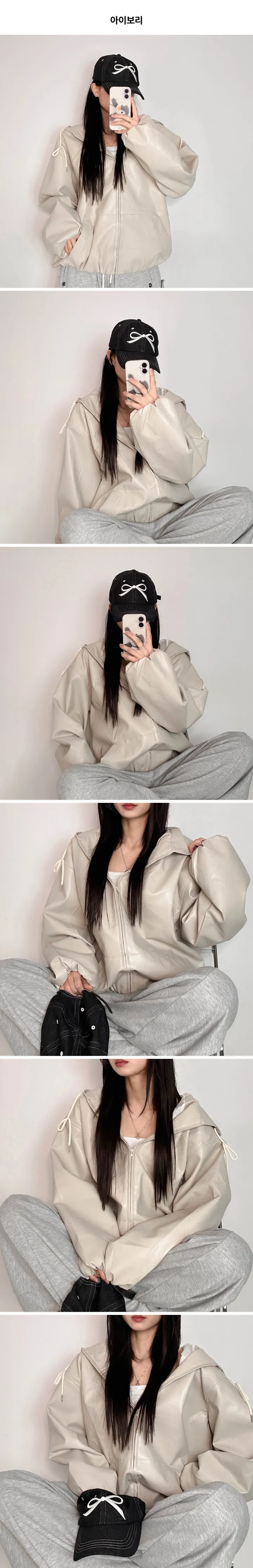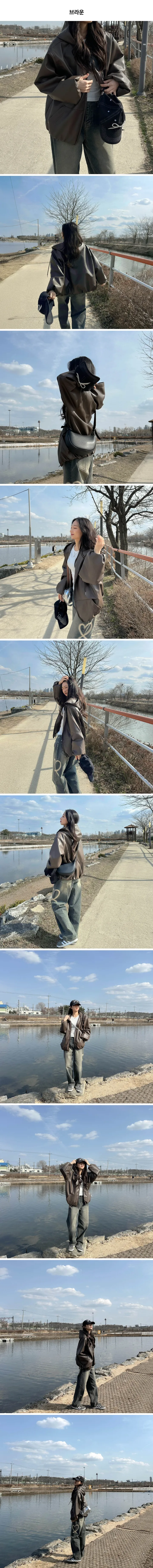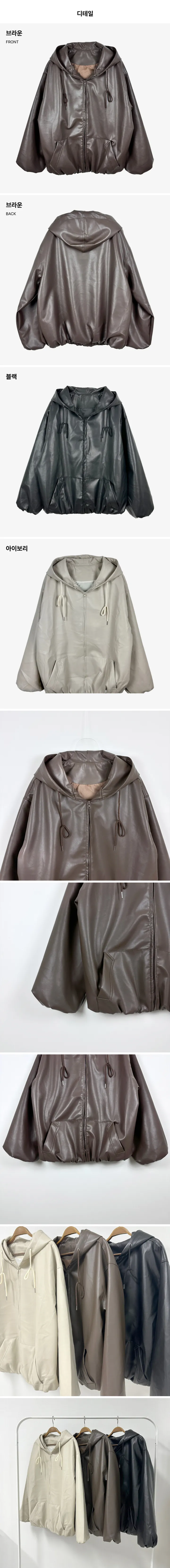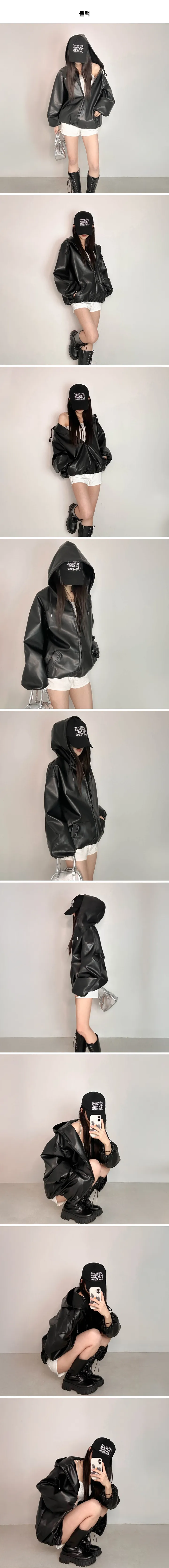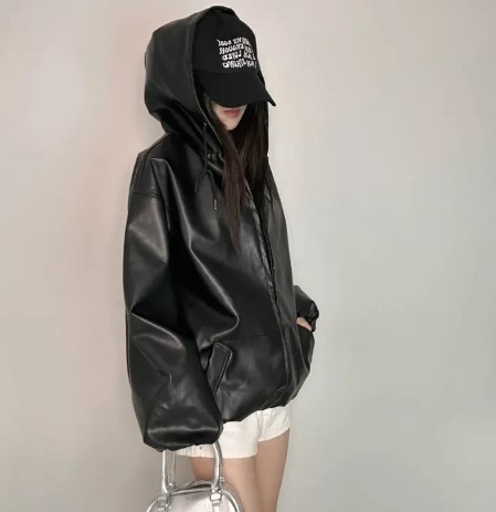 オーバーサイズフード付きレザージャケット