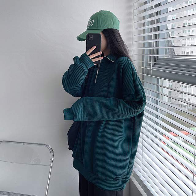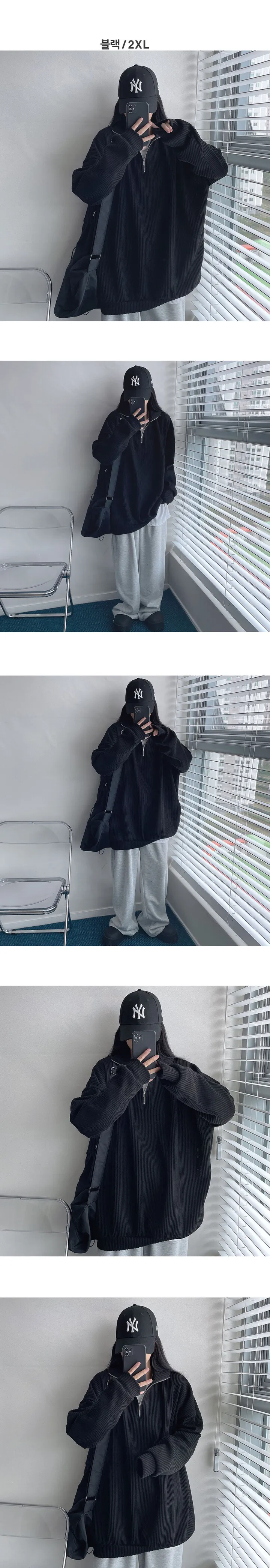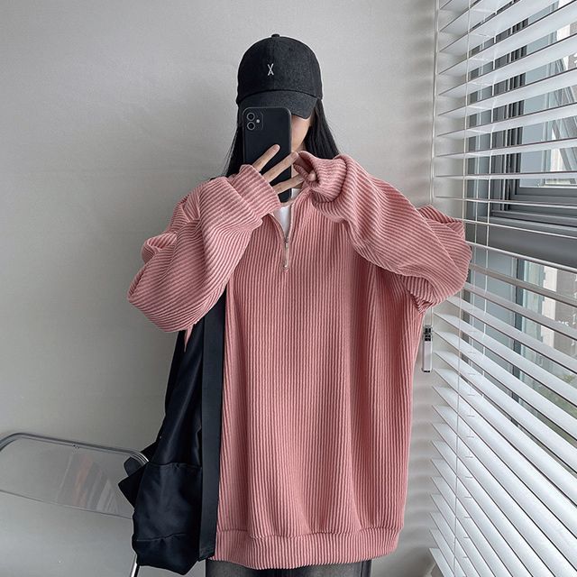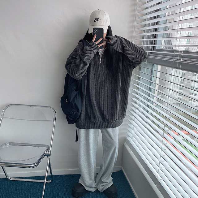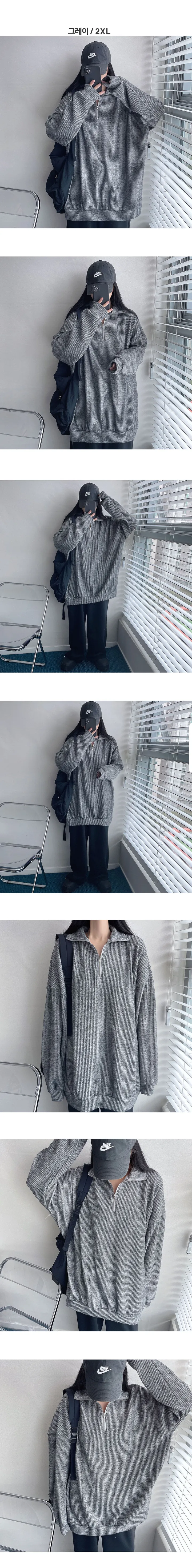 ハーフジップタートルネックオーバーサイズニットスウェットシャツ