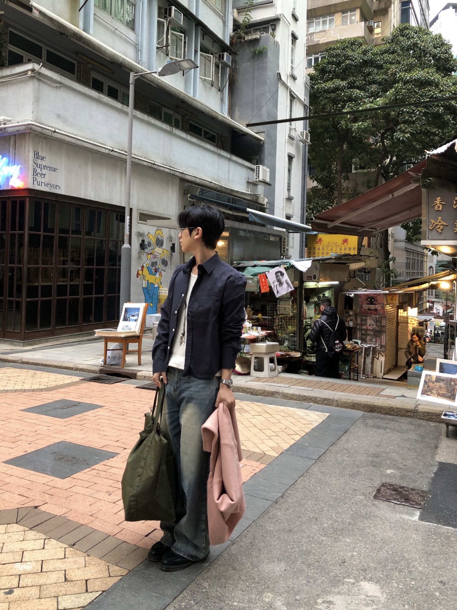 khaki, black