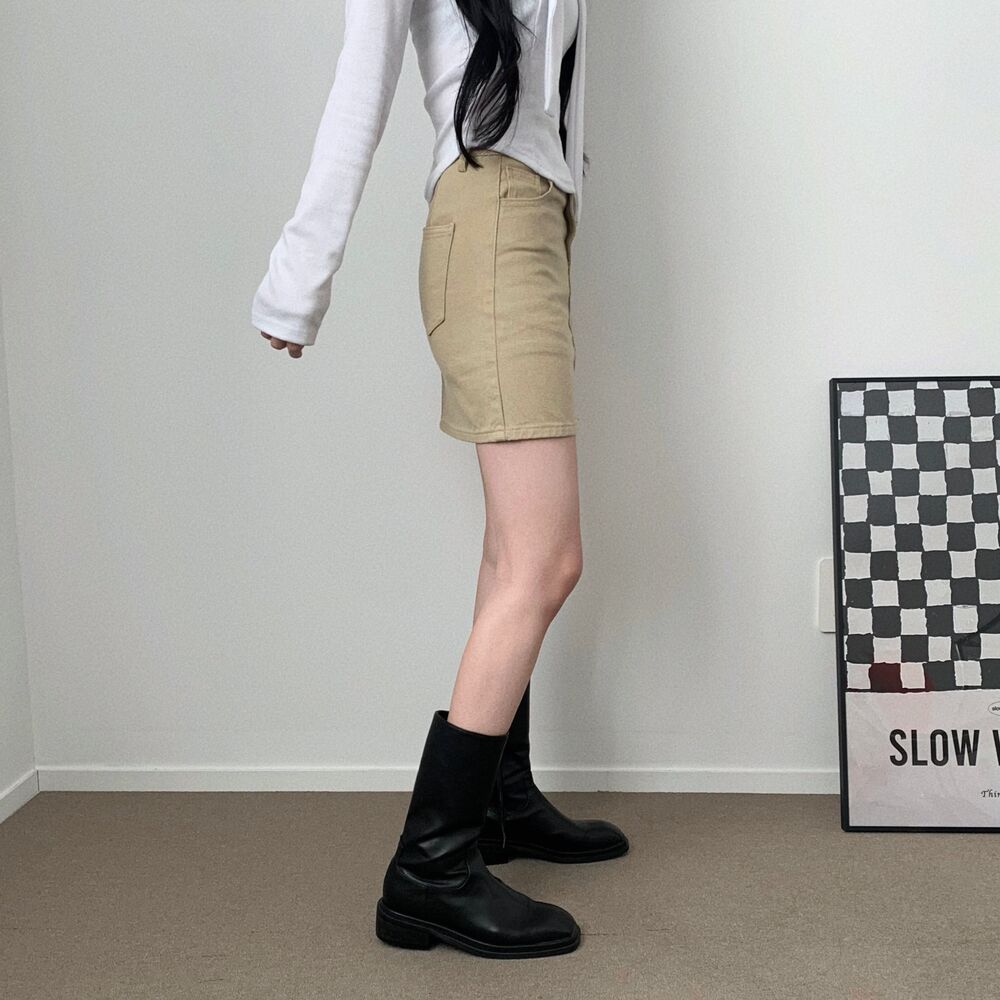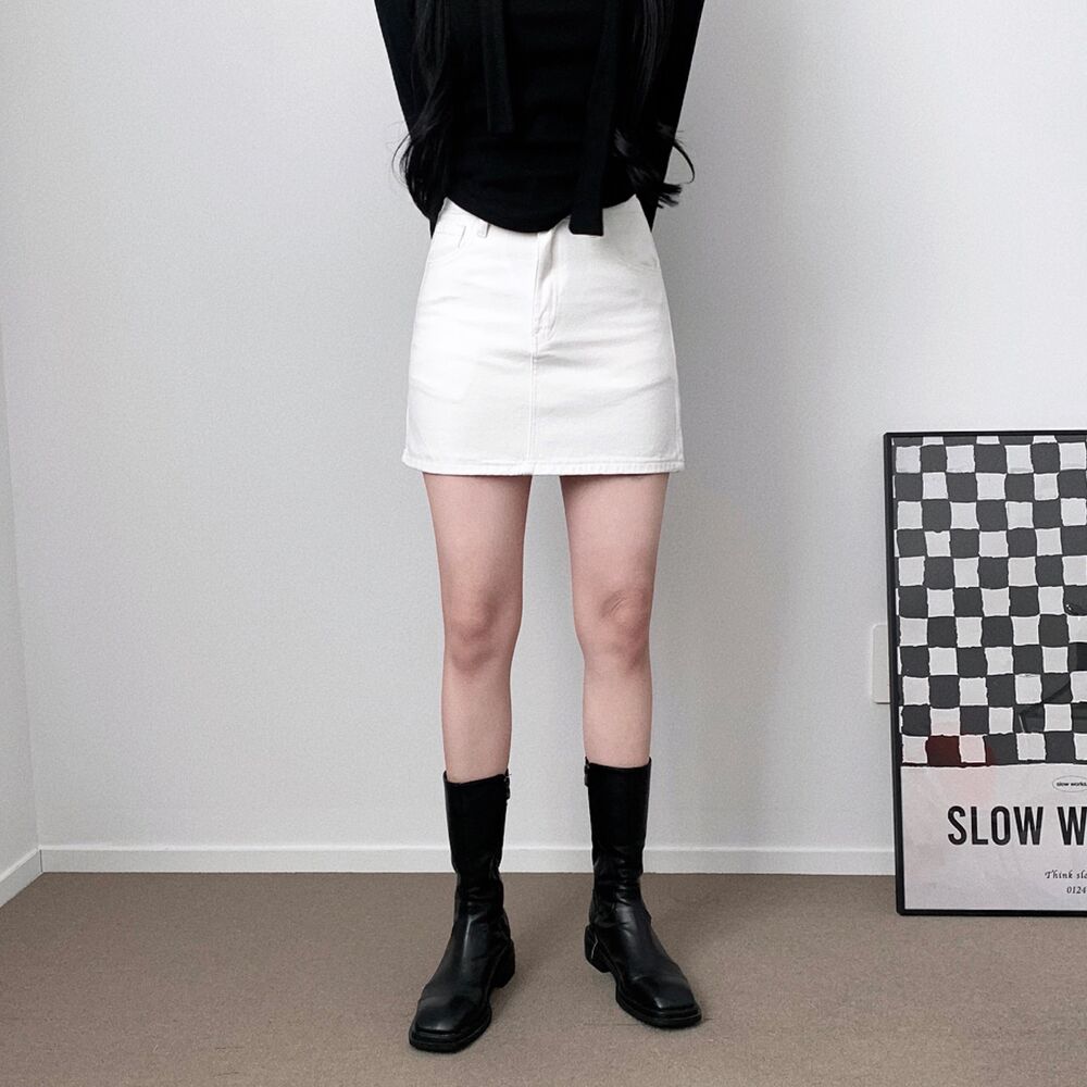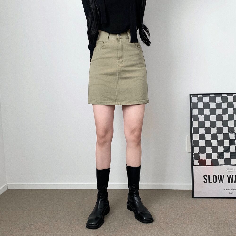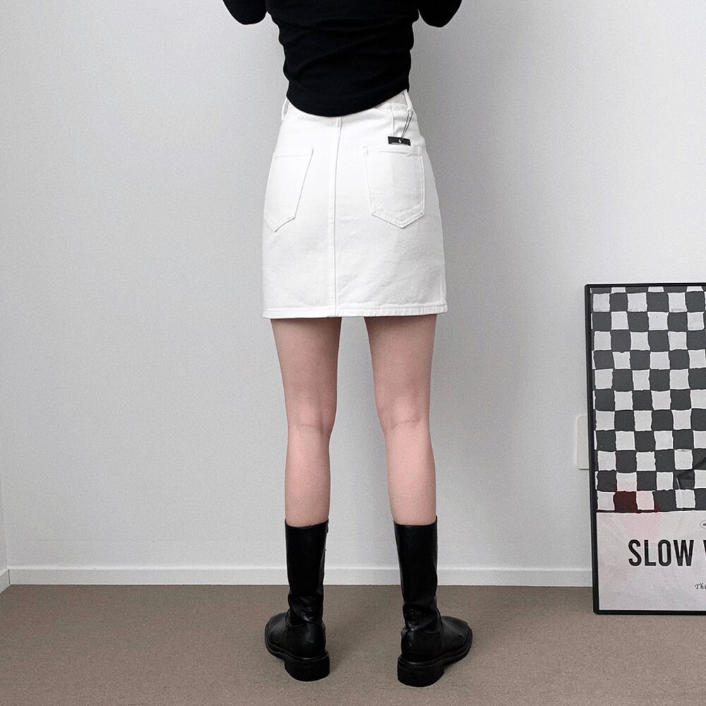 [short/basic][選べる着丈] ベーシックコットンハイウエストスリットミニスカート