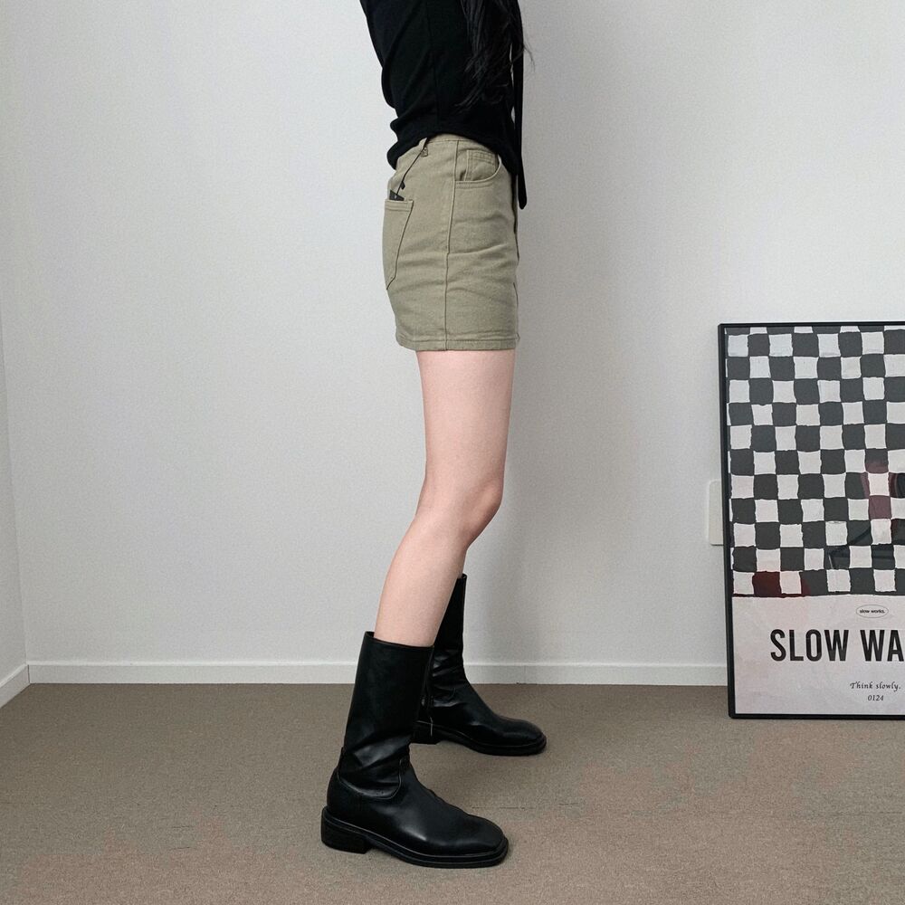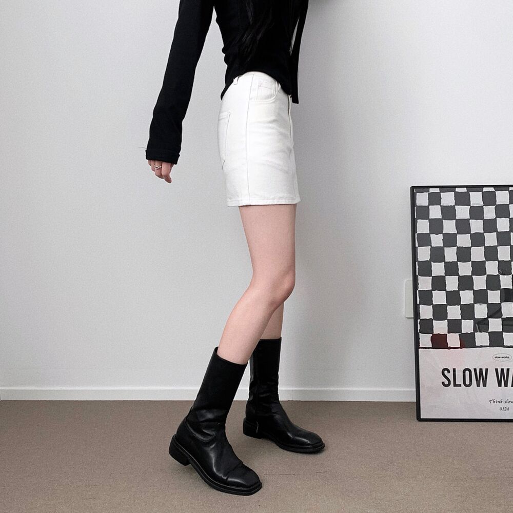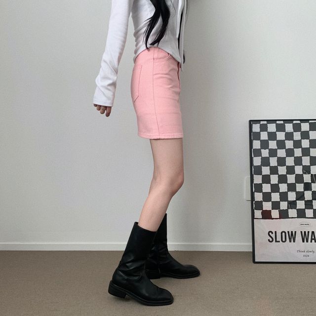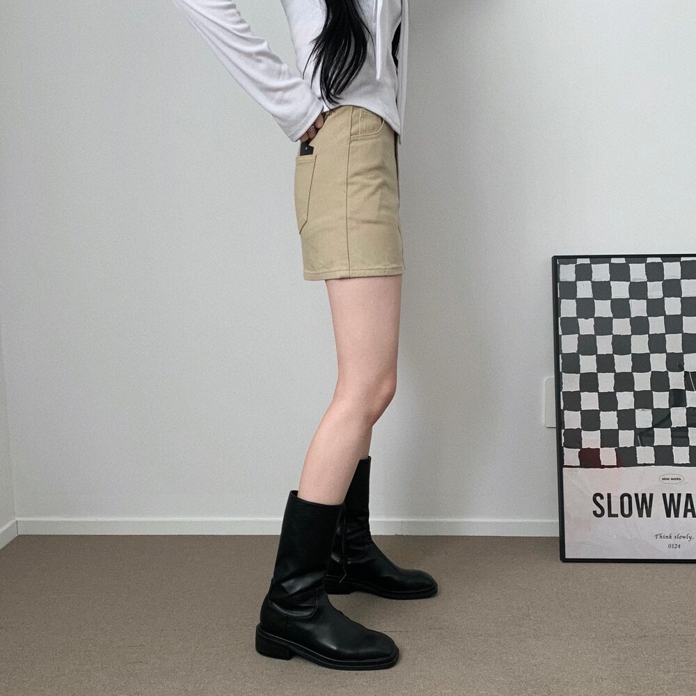 [short/basic][選べる着丈] ベーシックコットンハイウエストスリットミニスカート