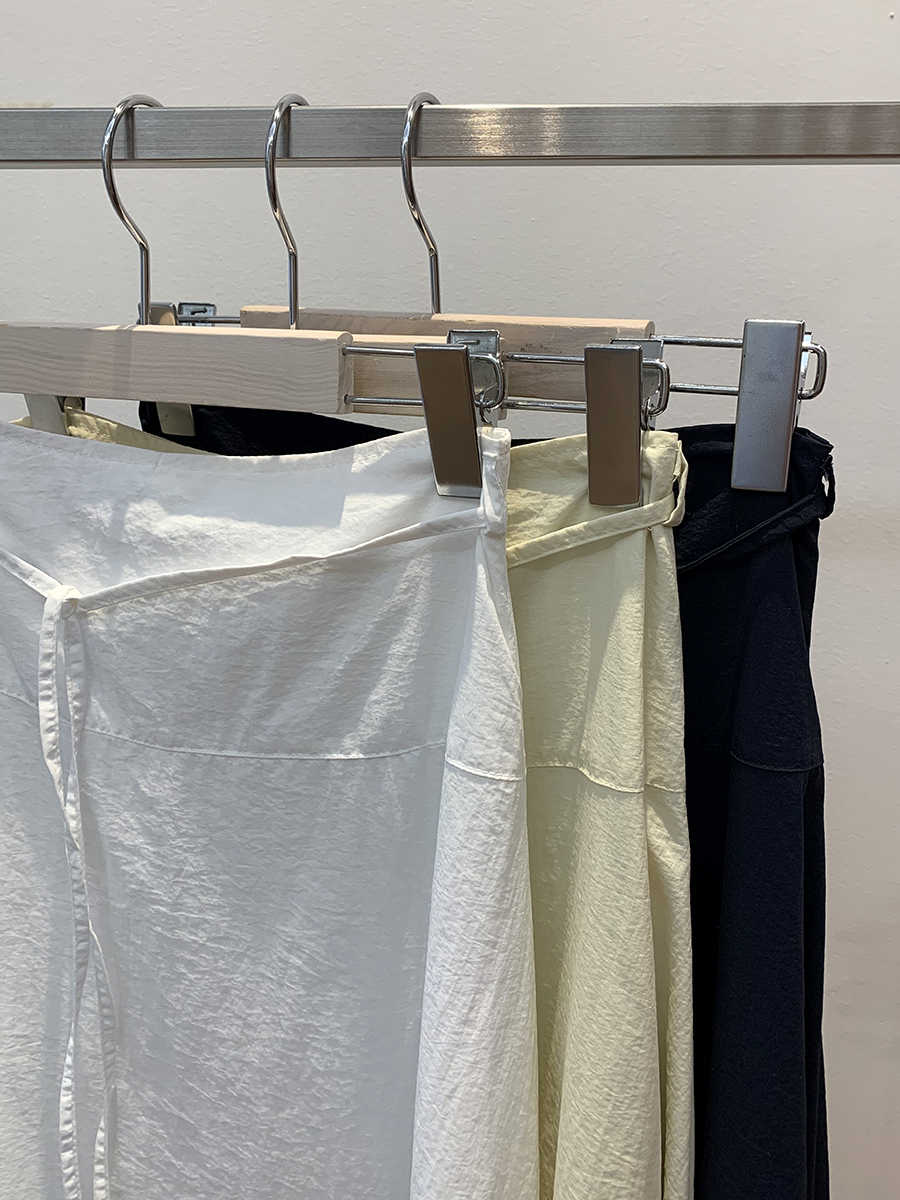 [裏地付き] ナイロンストラップAラインフレアロングスカート3color