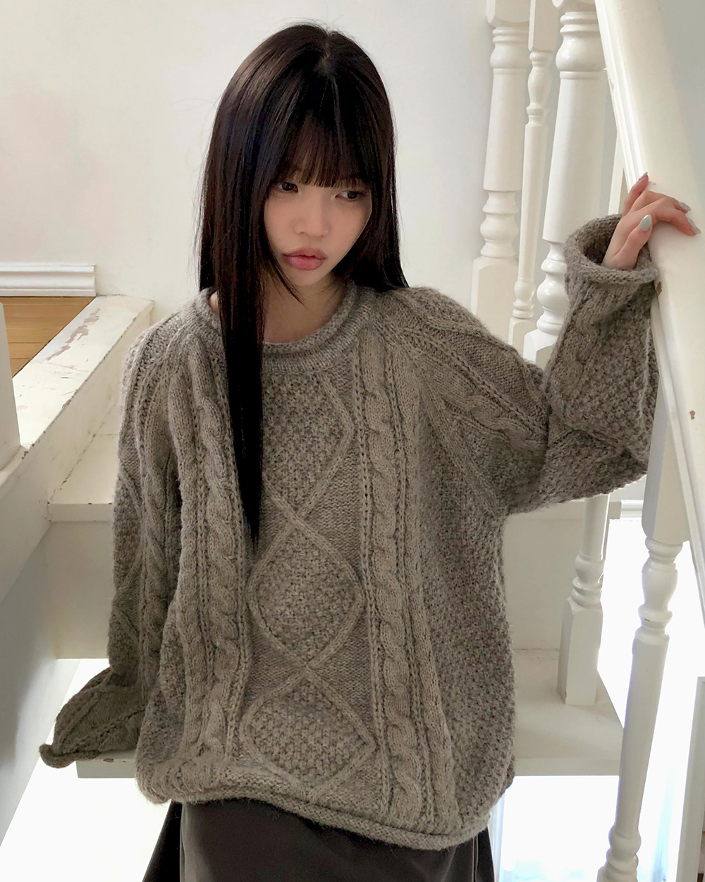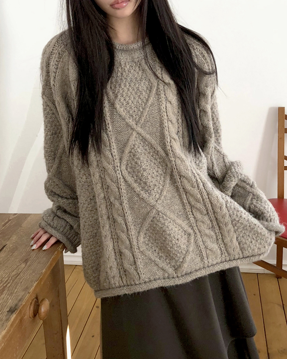 #라운드넥 #꽈배기패턴 #말림 포인트